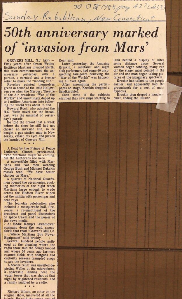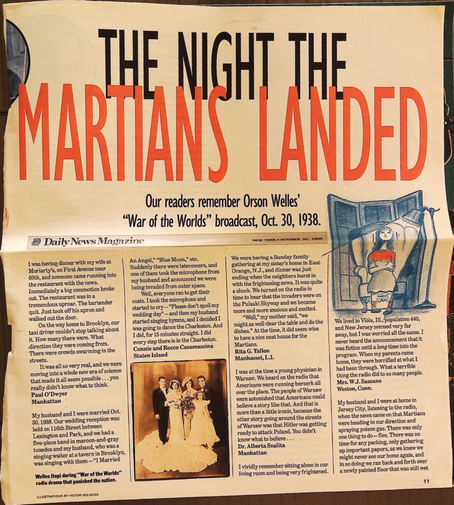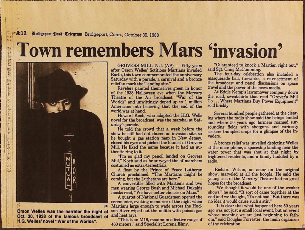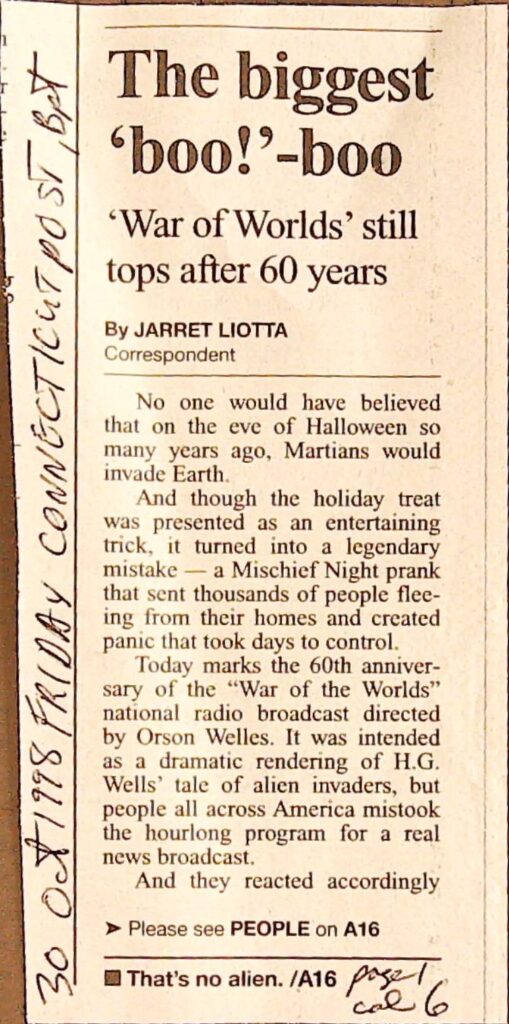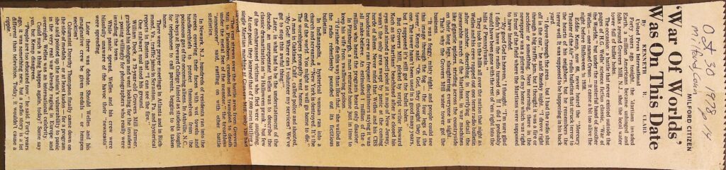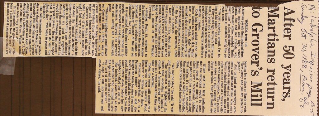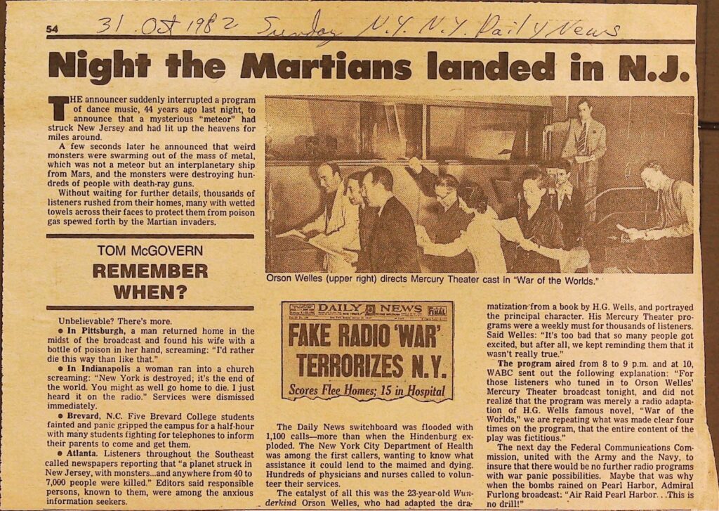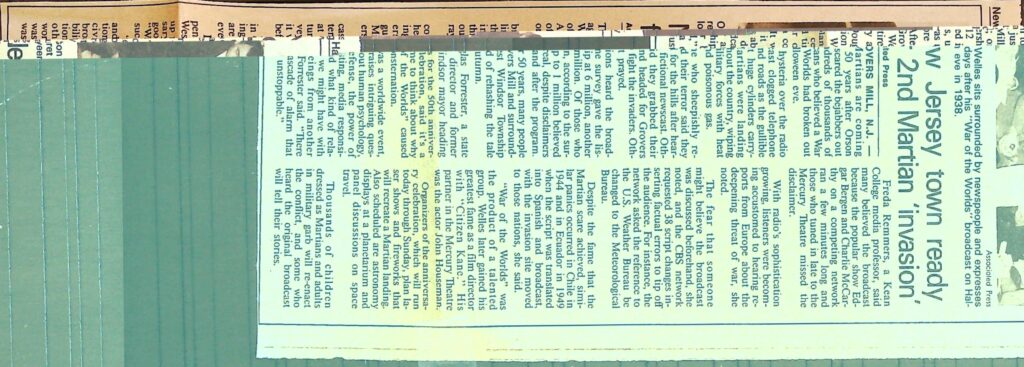 UFOs - Uncategorized B10F8I1 Box 10 Folder 8. Orson Wells – War of the Worlds Item 1. Newspaper Articles