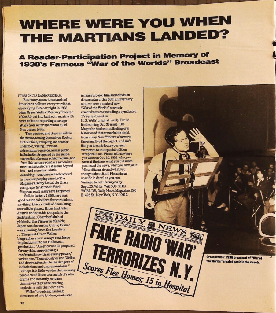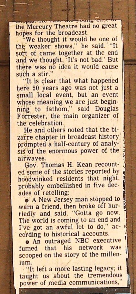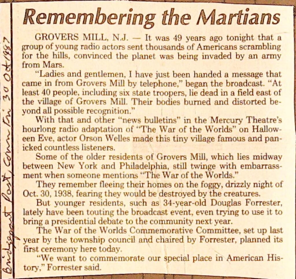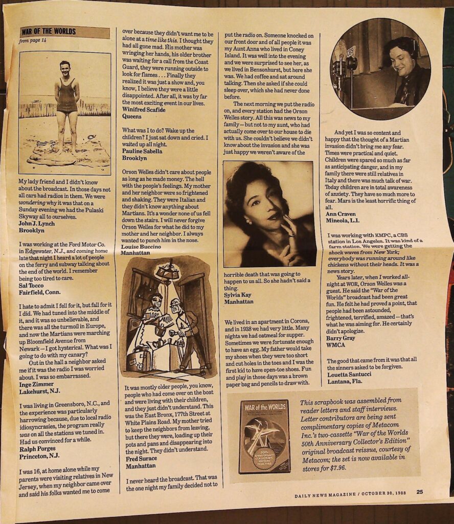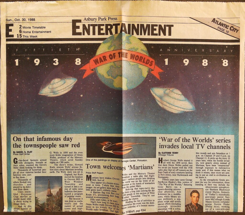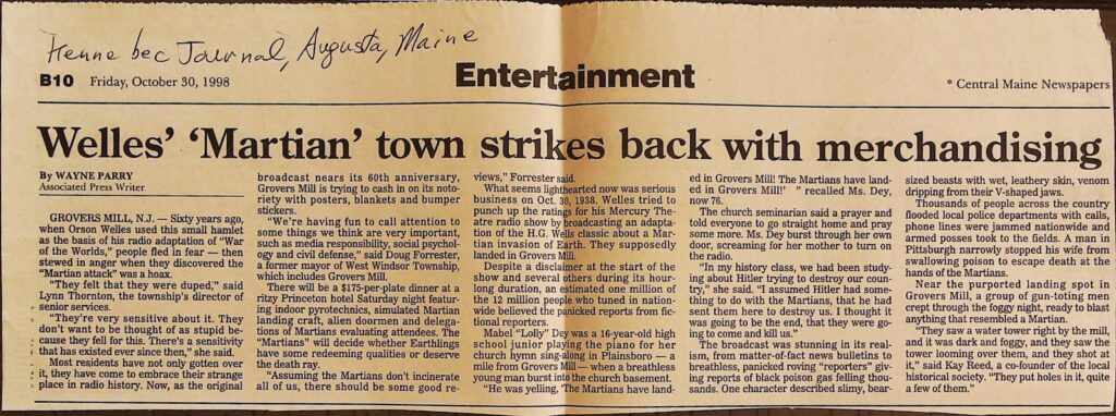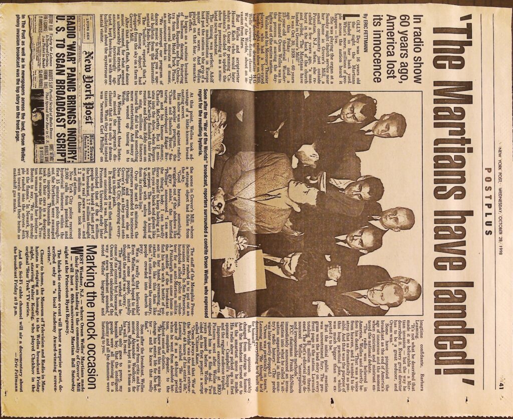 UFOs - Uncategorized B10F8I1 Box 10 Folder 8. Orson Wells – War of the Worlds Item 1. Newspaper Articles