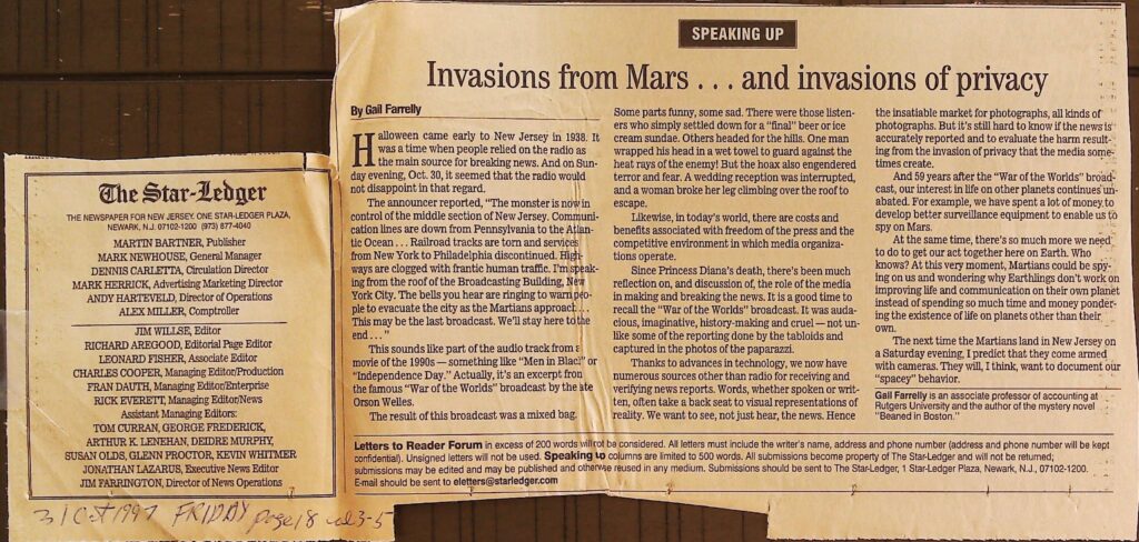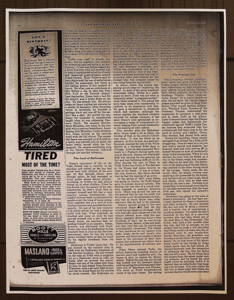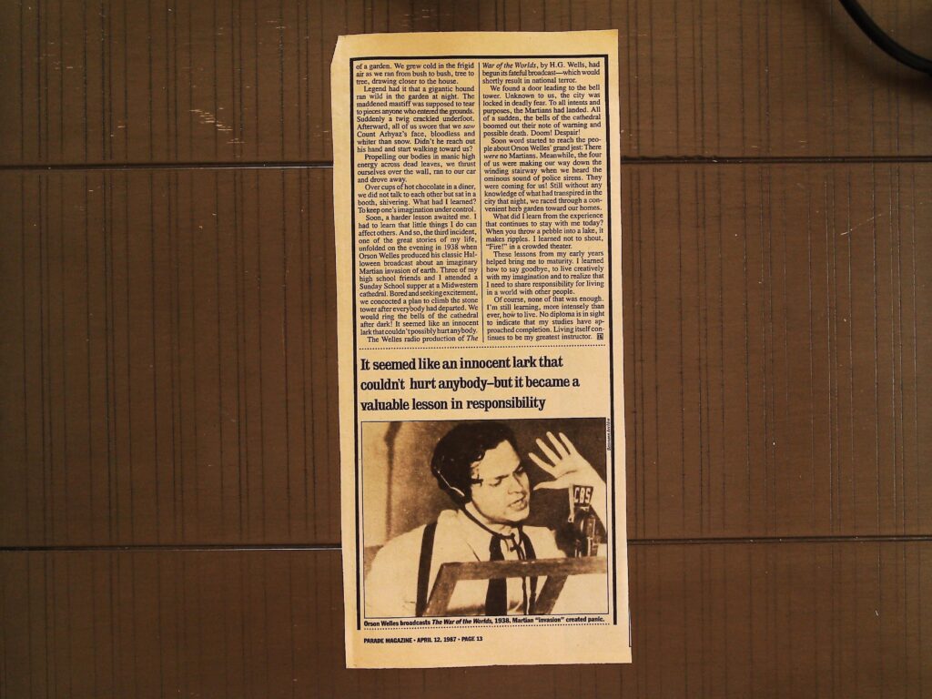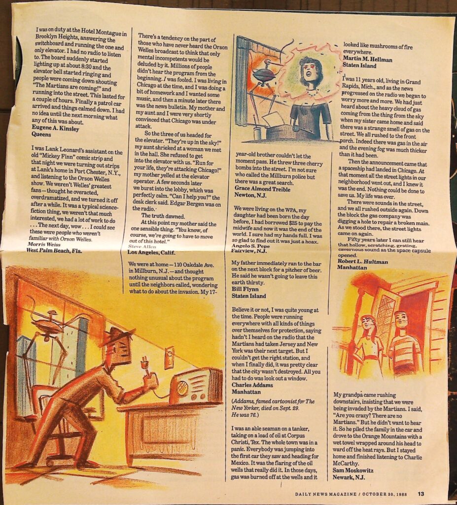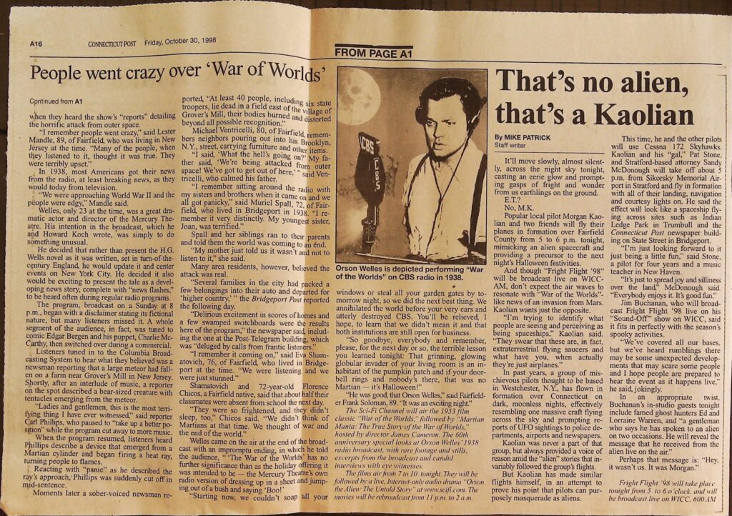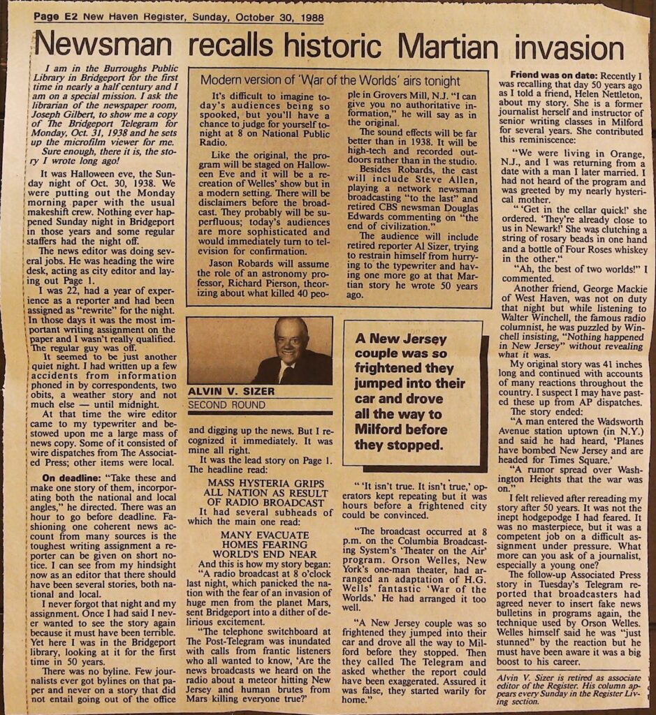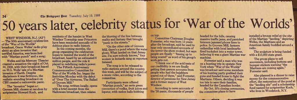 UFOs - Uncategorized B10F8I1 Box 10 Folder 8. Orson Wells – War of the Worlds Item 1. Newspaper Articles