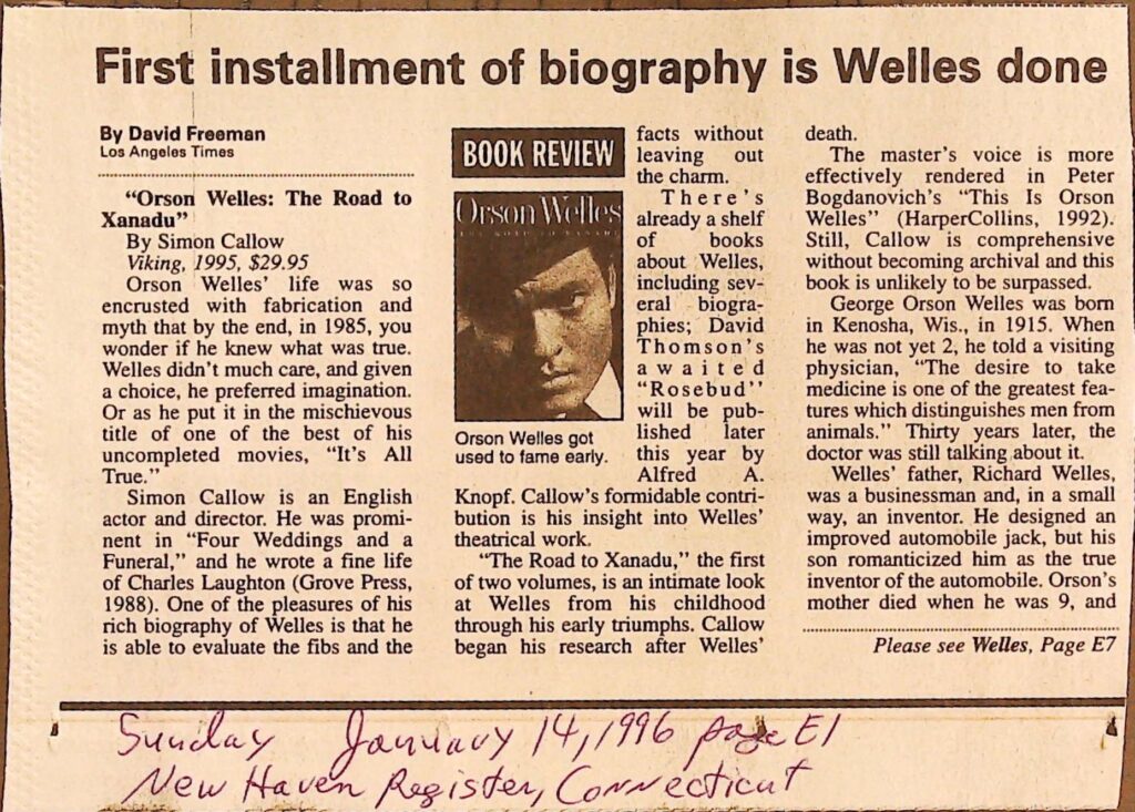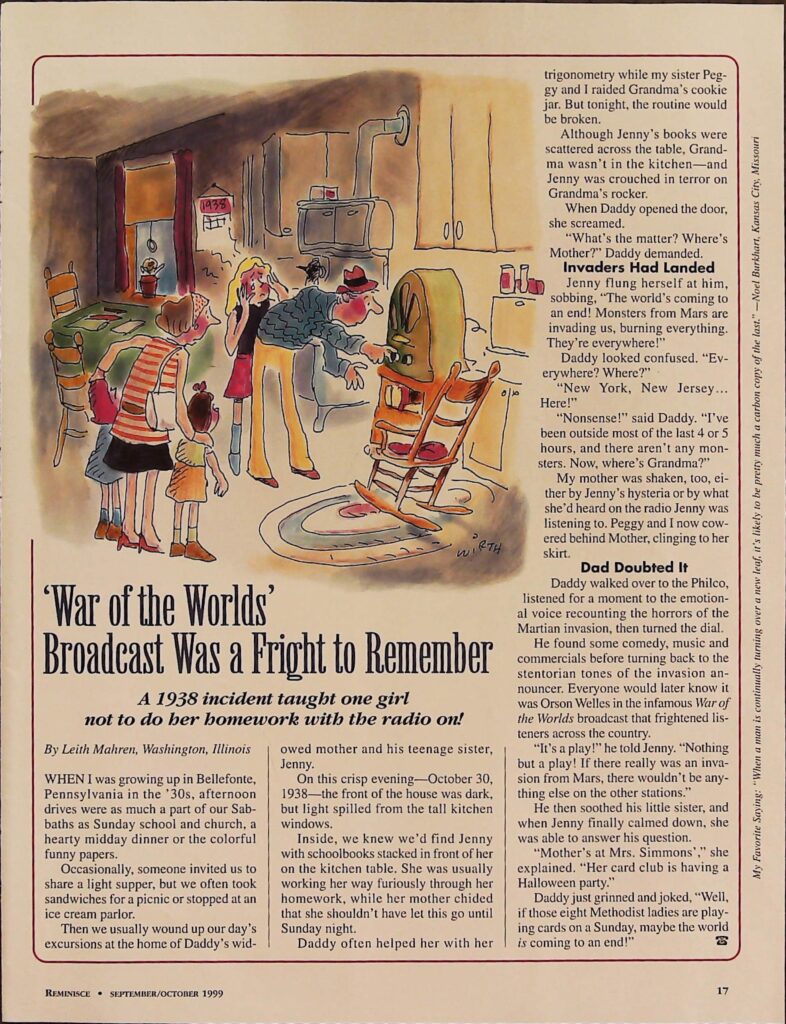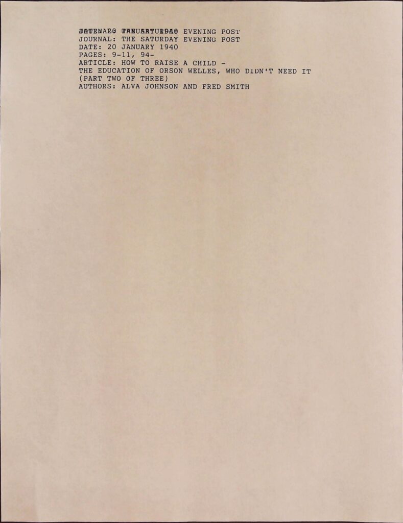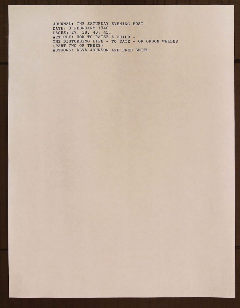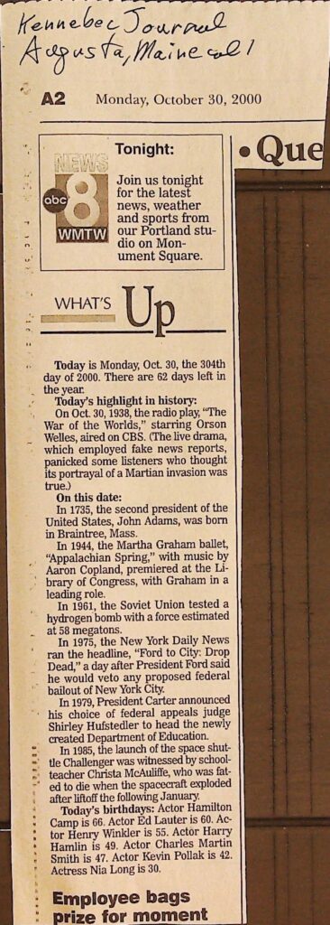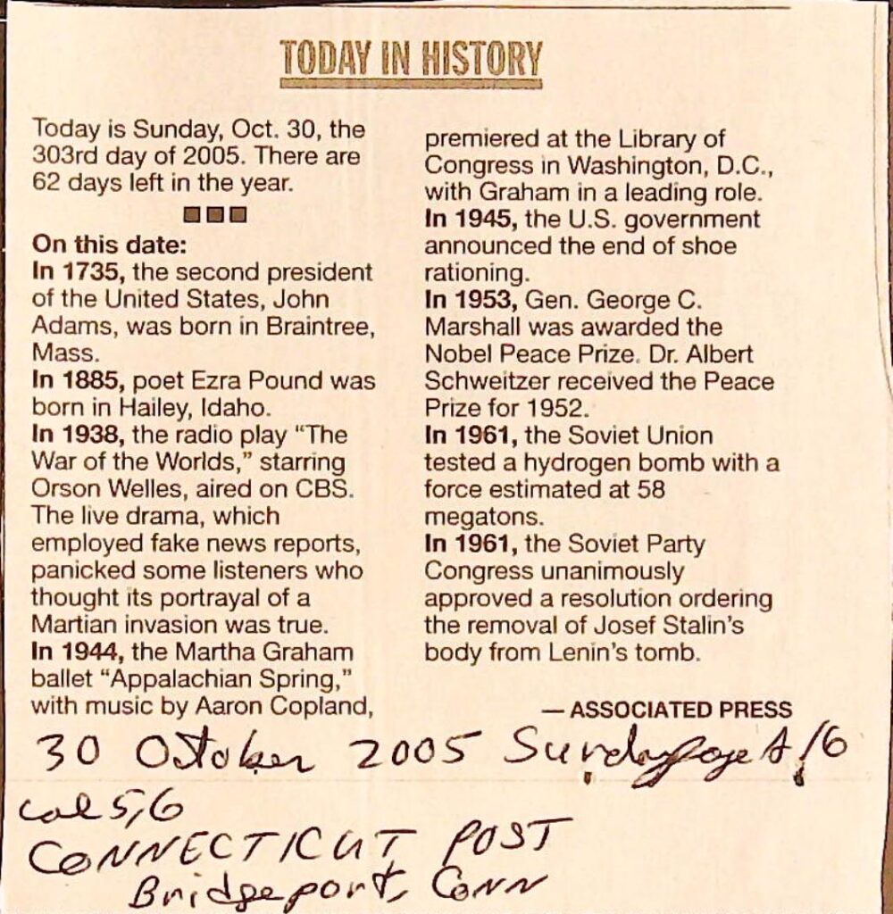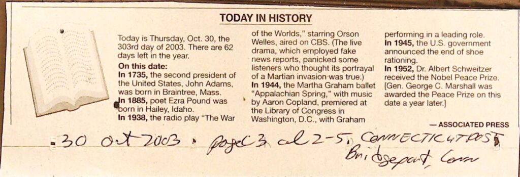 UFOs - Uncategorized B10F8I1 Box 10 Folder 8. Orson Wells – War of the Worlds Item 1. Newspaper Articles