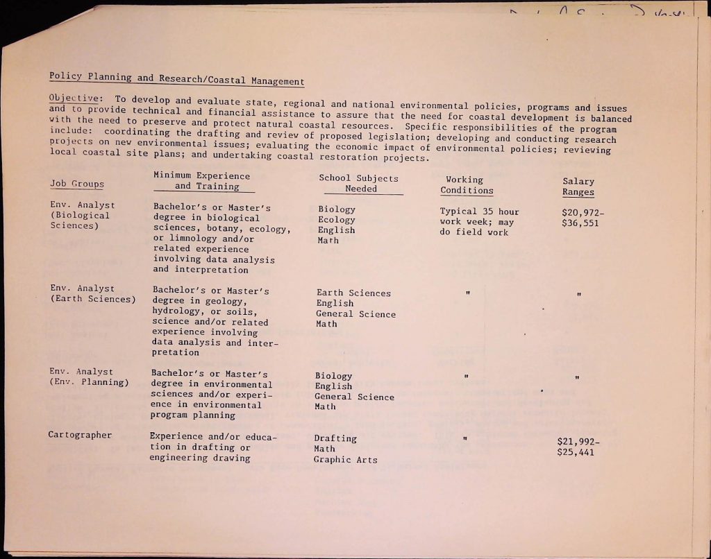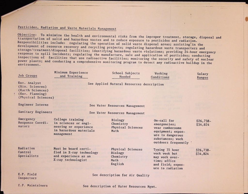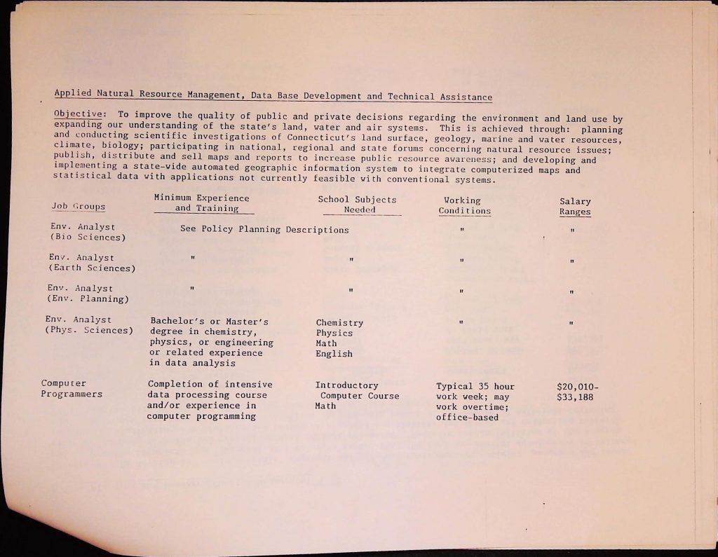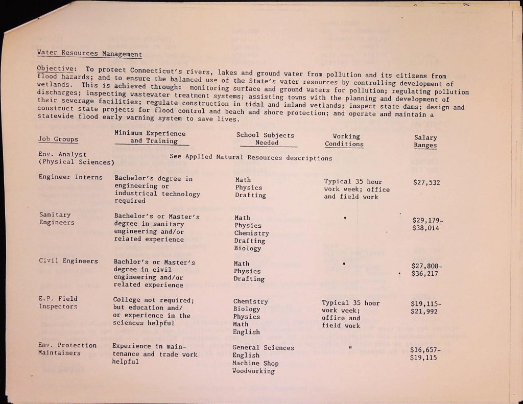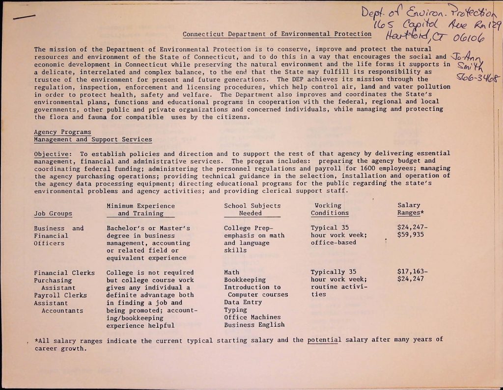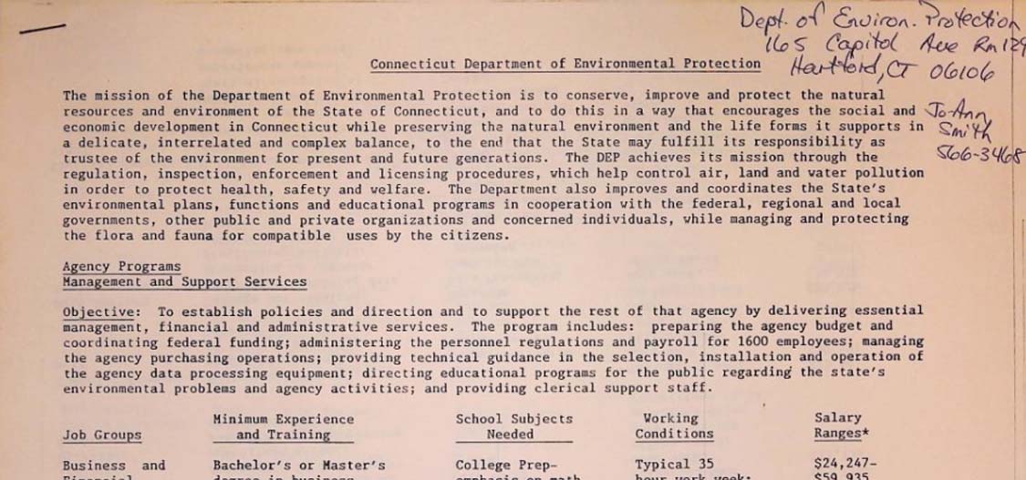 Uncategorized B1F10I4 Box 1 Folder 10: Resume and Jobs Item 4: Connecticut Department of Environmental Protection