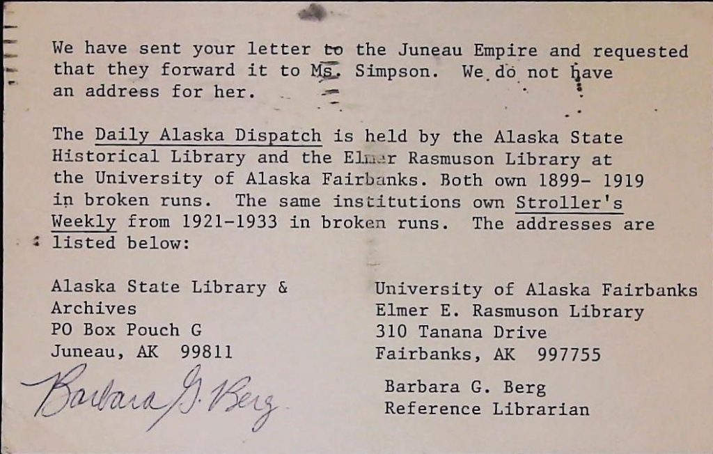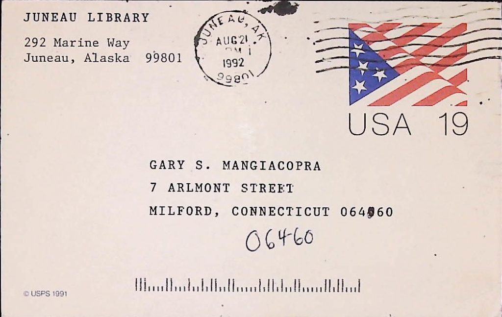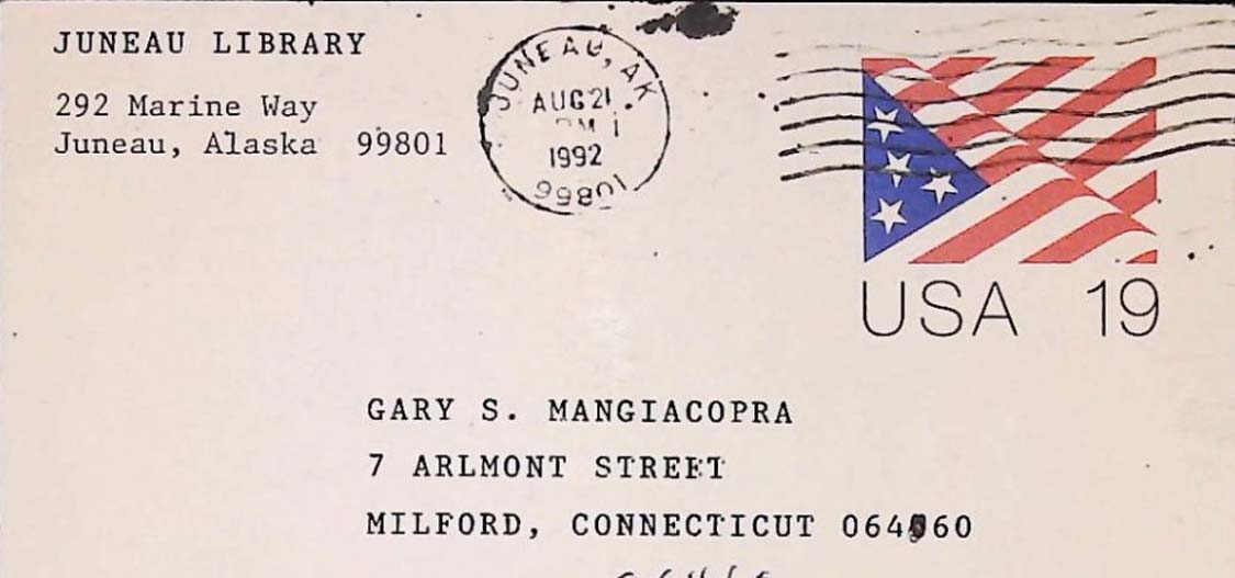 Uncategorized B1F12I7 Box 1 Folder 12: Libraries Item 7: Gary Manciacopra Letter to the Juneau Library