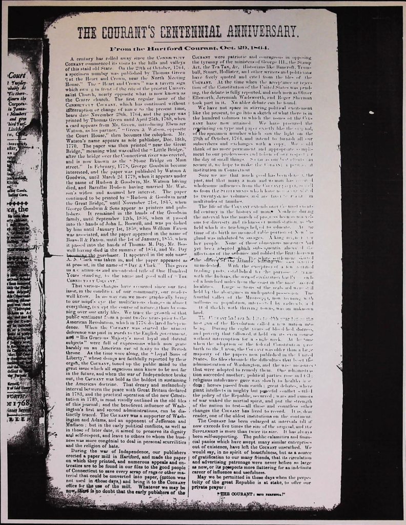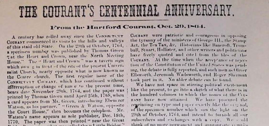 Uncategorized B1F3I2 Box 1 Folder 3: Newspaper Archives Connecticut Courant, 1964-1910s Item 2: The Courrant’s Centennial Anniversary
