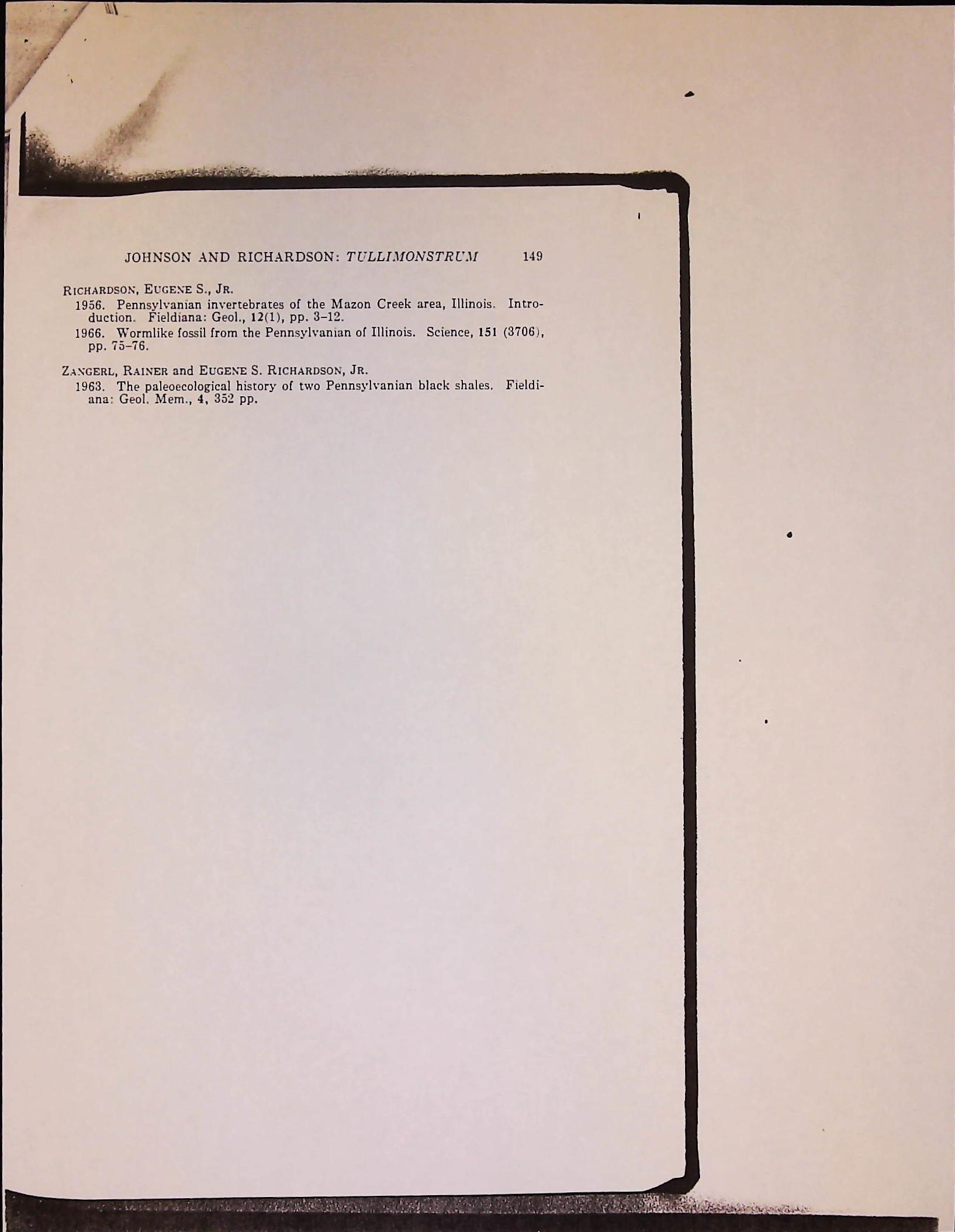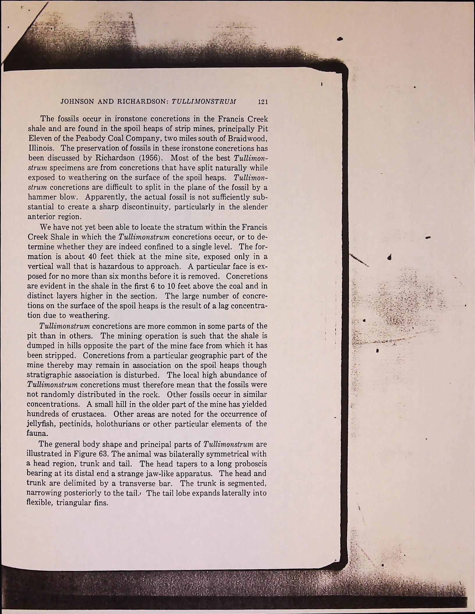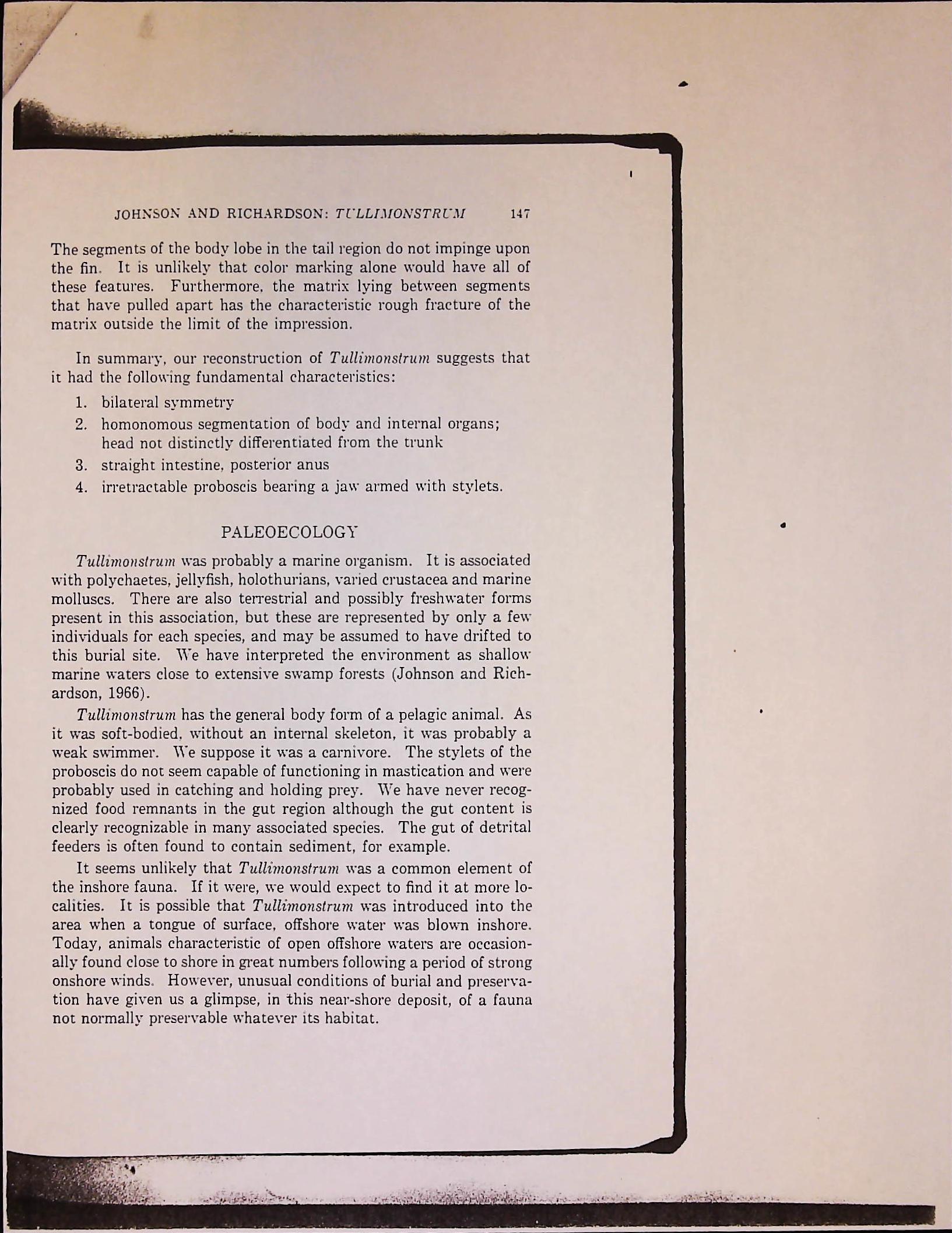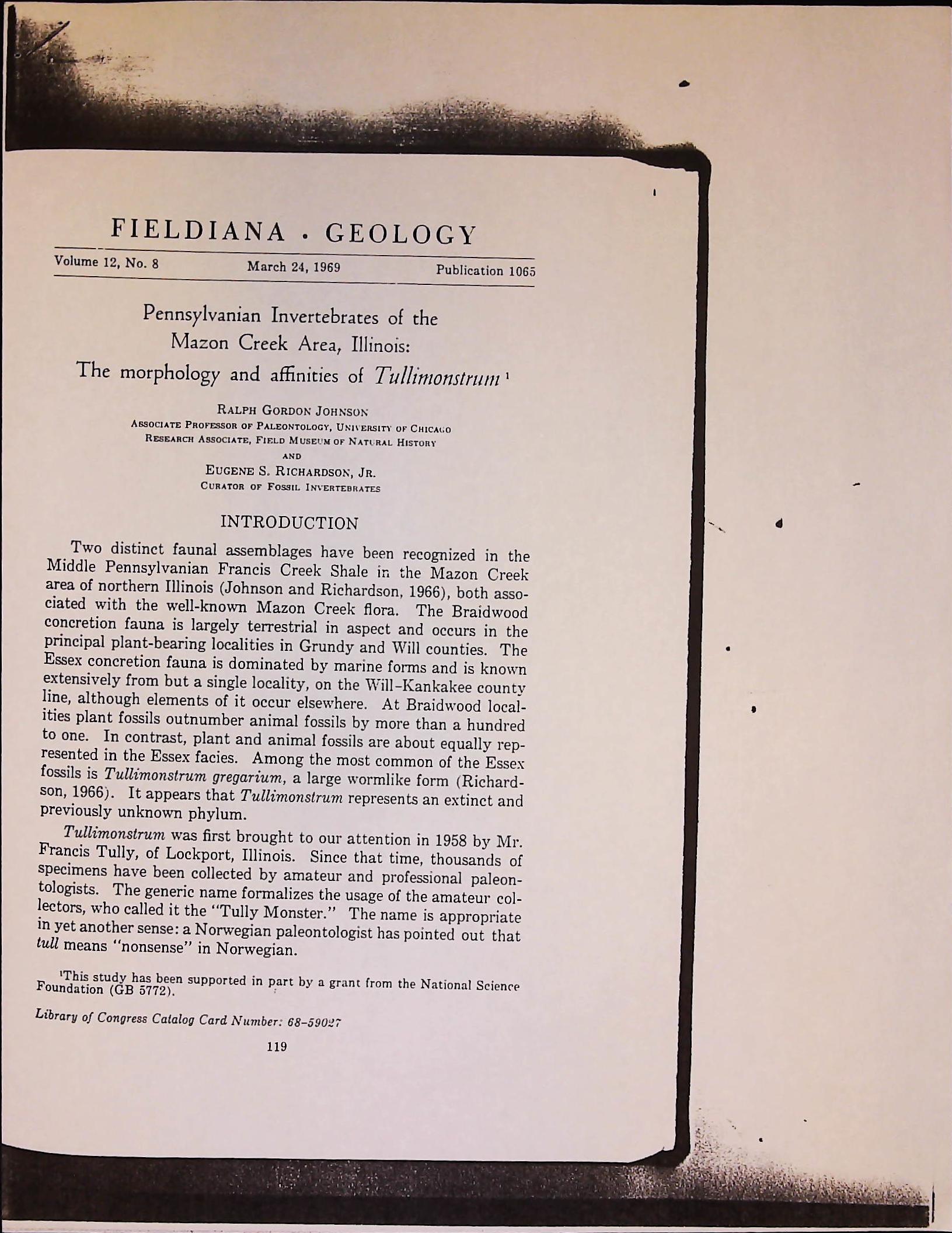Cryptozoology B2F62I2 Box 2 Folder 62. Tullimonstrum Gregarium – Freshwater Cryptid Item 2. March 24, 1969 Fieldiana
