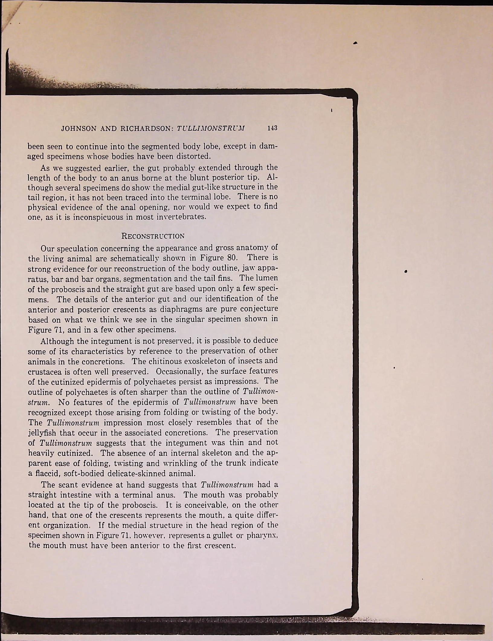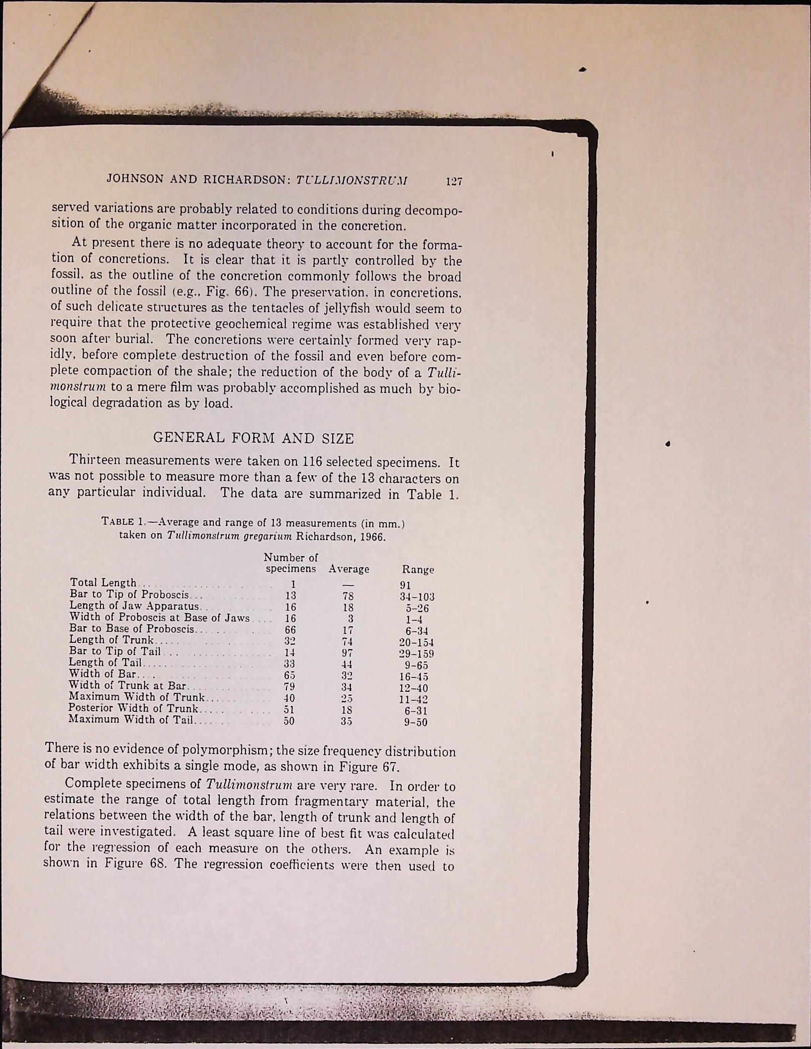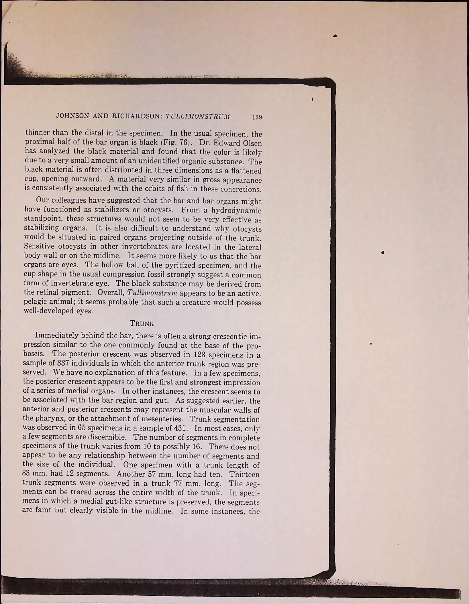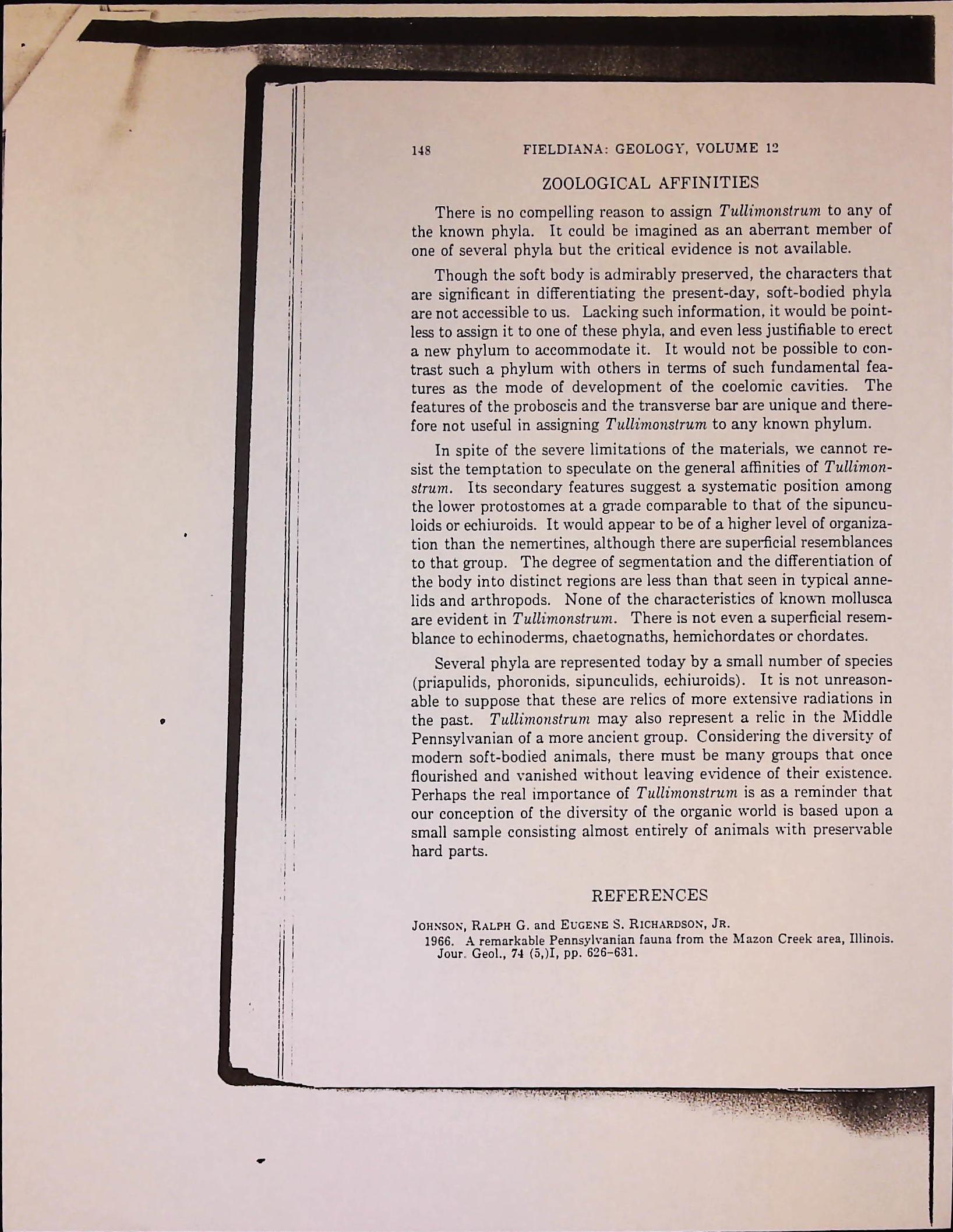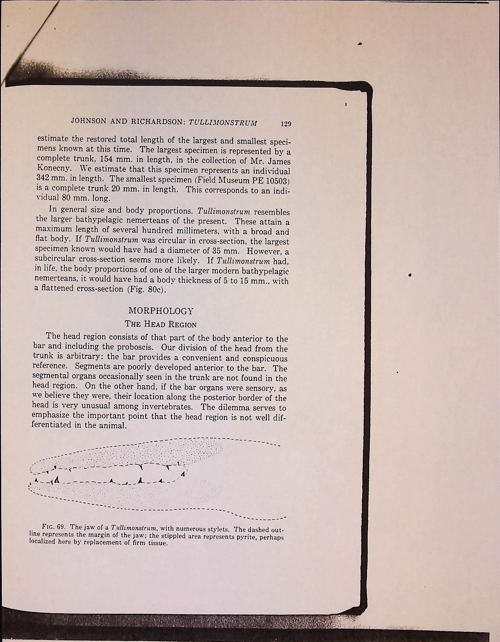 Cryptozoology B2F62I2 Box 2 Folder 62. Tullimonstrum Gregarium – Freshwater Cryptid Item 2. March 24, 1969 Fieldiana