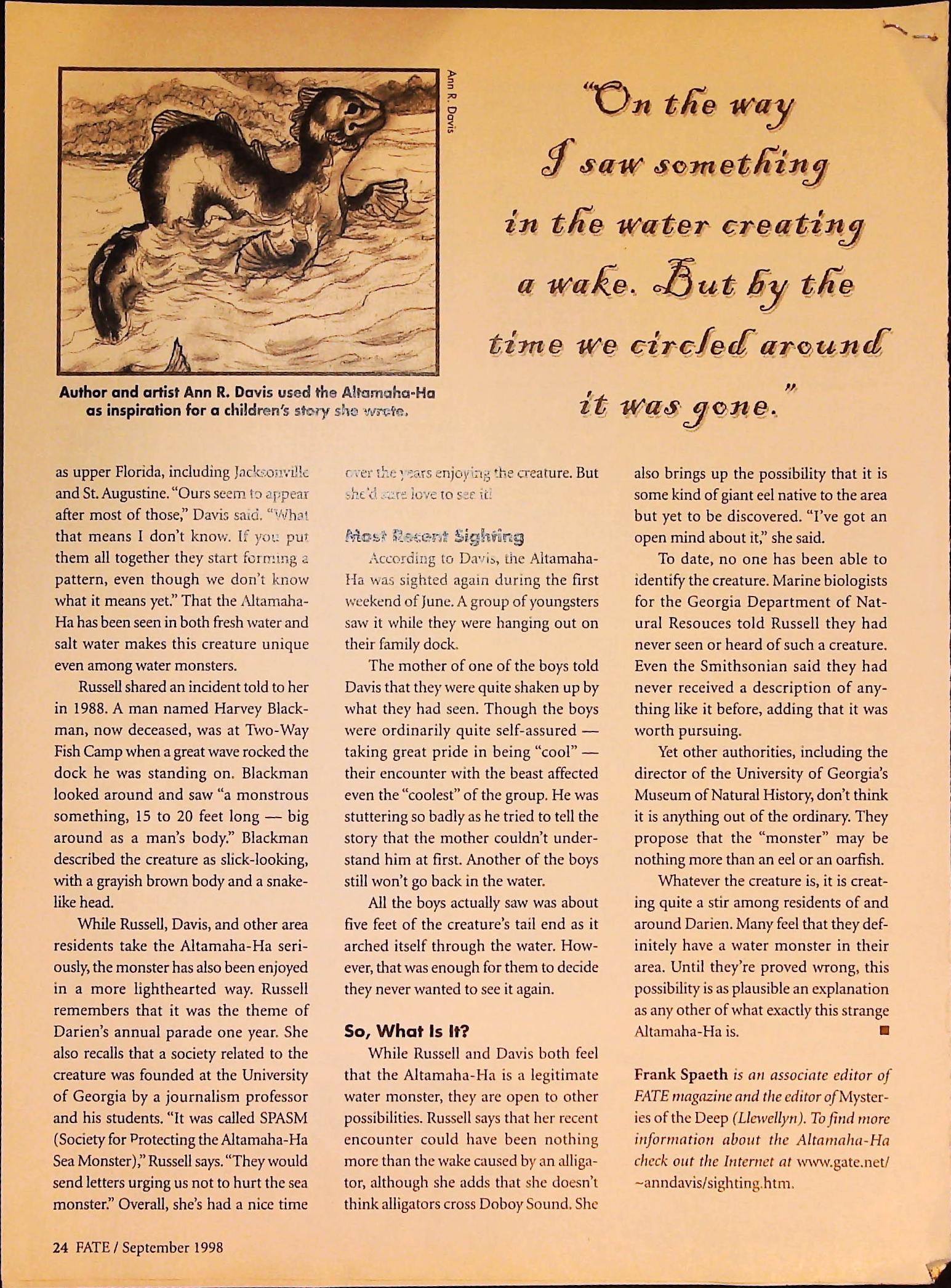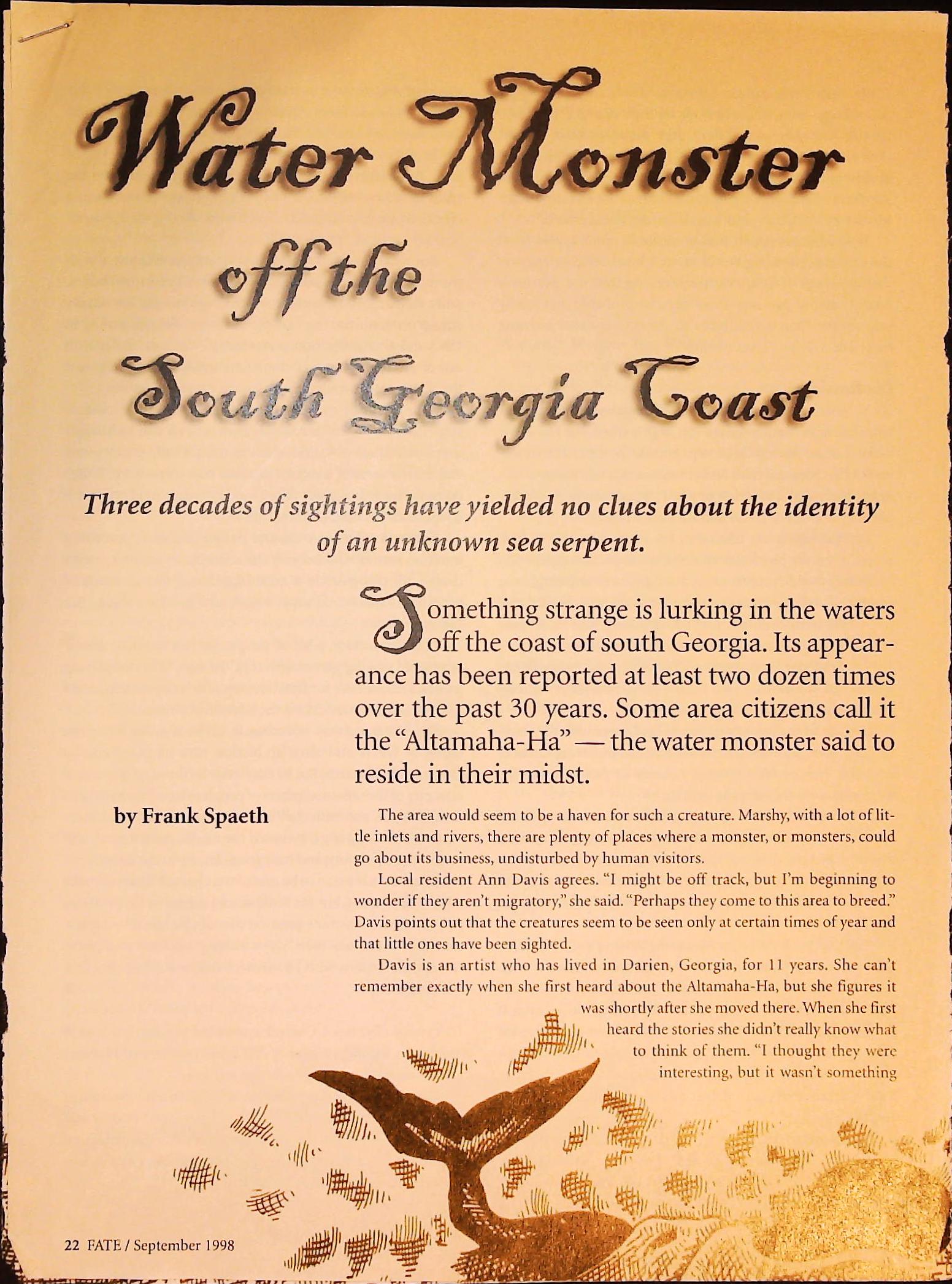 Cryptozoology B3F12I2 Box 3 Folder 12. Fate Magazine Item 3. Water Monster Off the South Georgia Coast