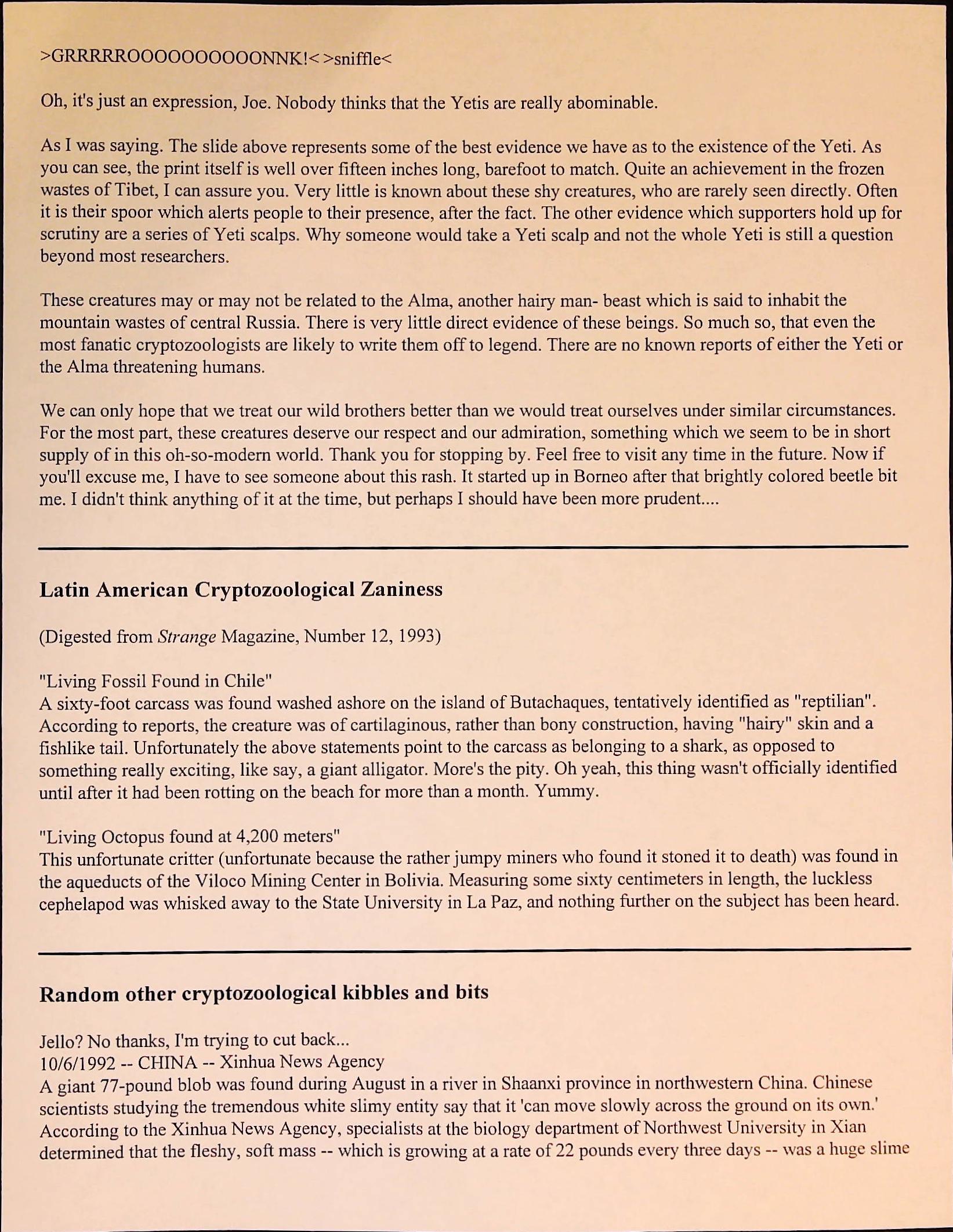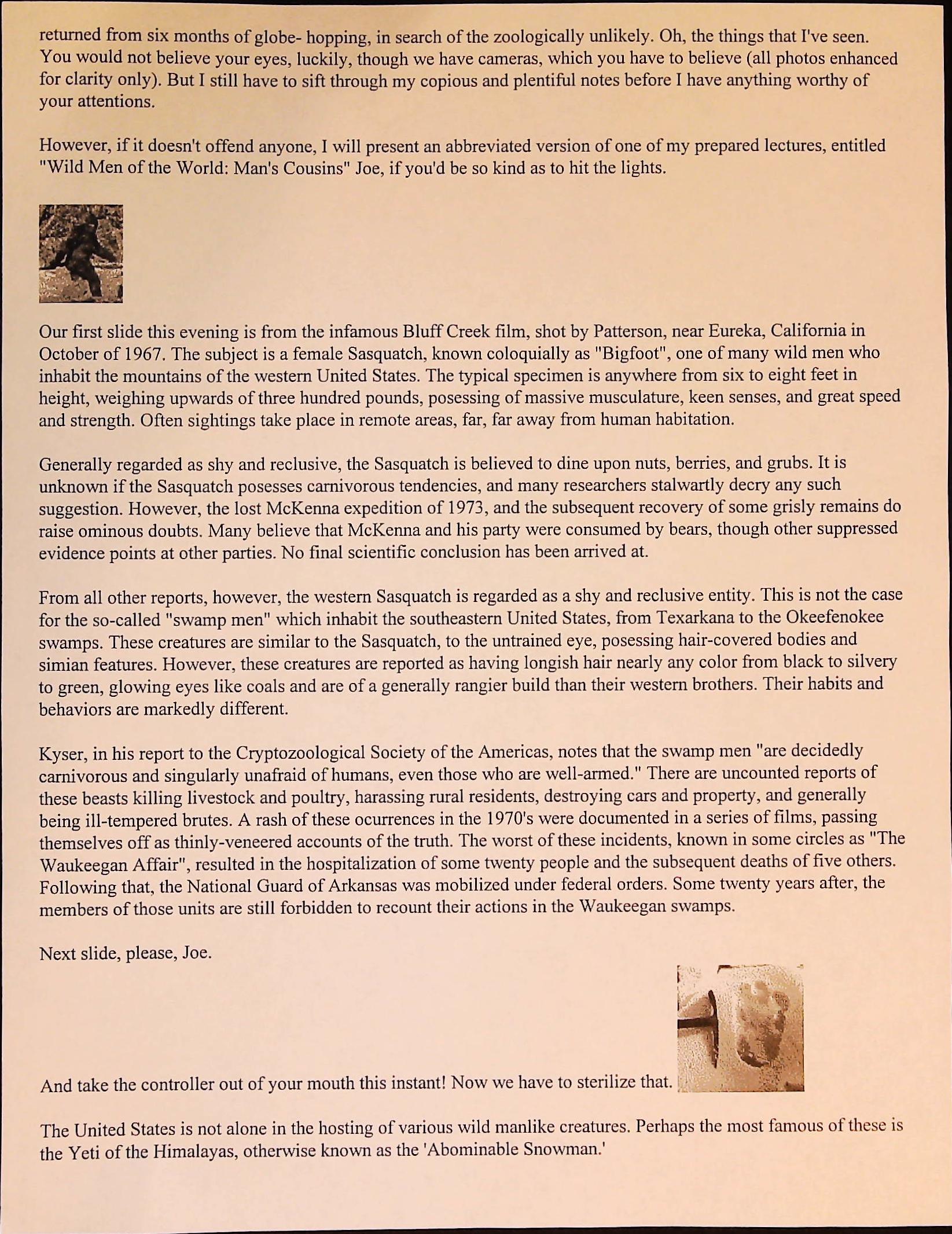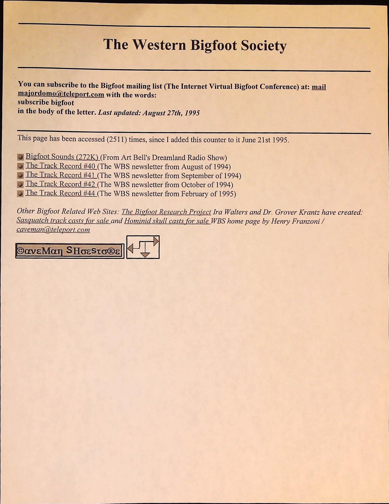Cryptozoology - Wildmen B3F1I18 Box 3 Folder 1. Internet Cryptozoology Reports Item 18. Bigfoot Research Project