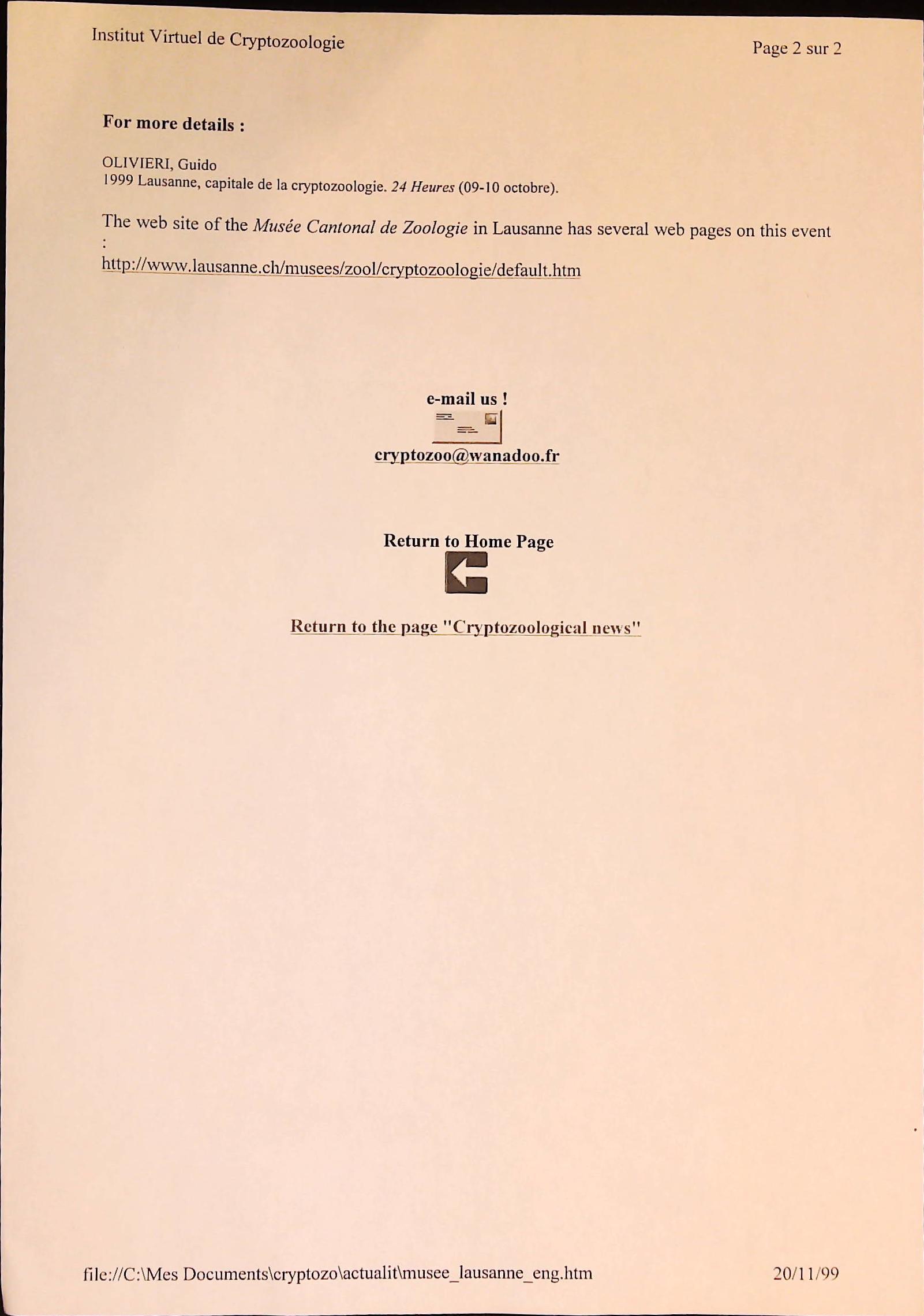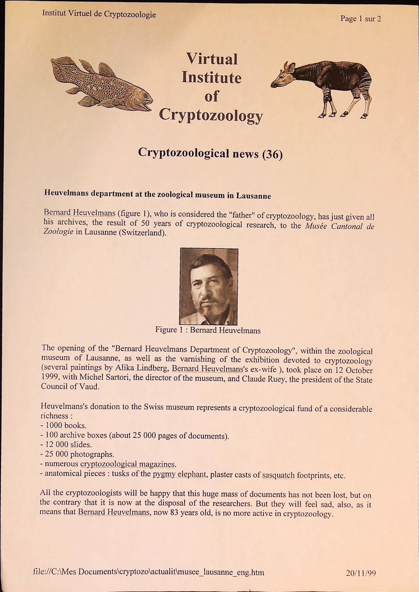 Cryptozoology - Wildmen B3F1I21 Box 3 Folder 1. Internet Cryptozoology Reports Item 21. Bernard Heuvelmans Archive