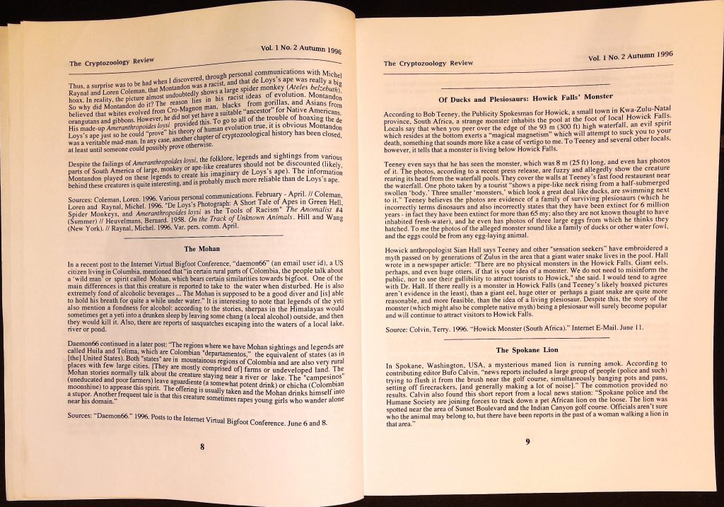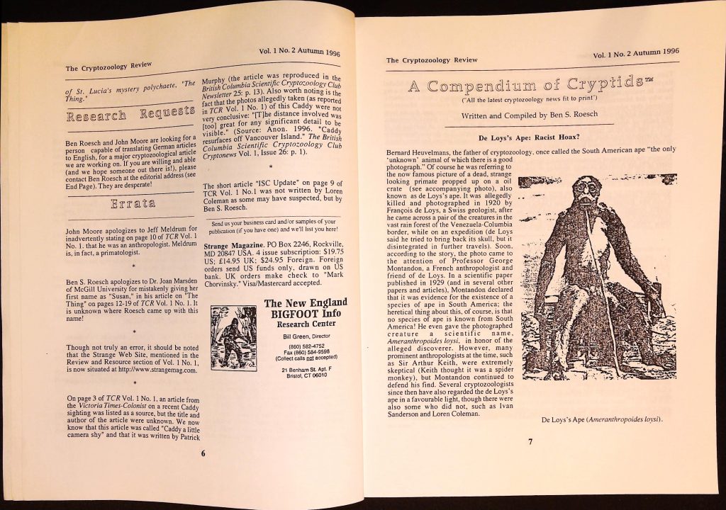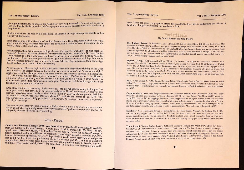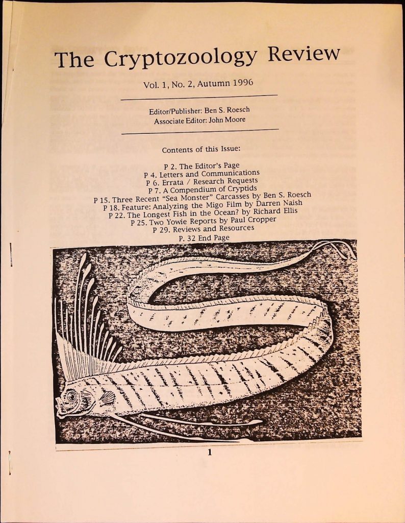 Cryptozoology - Misplaced Animals - Wildmen B3F27I2 Box 3 Folder 27. Cryptozoology Review Item 2. Vol. 1 No. 2