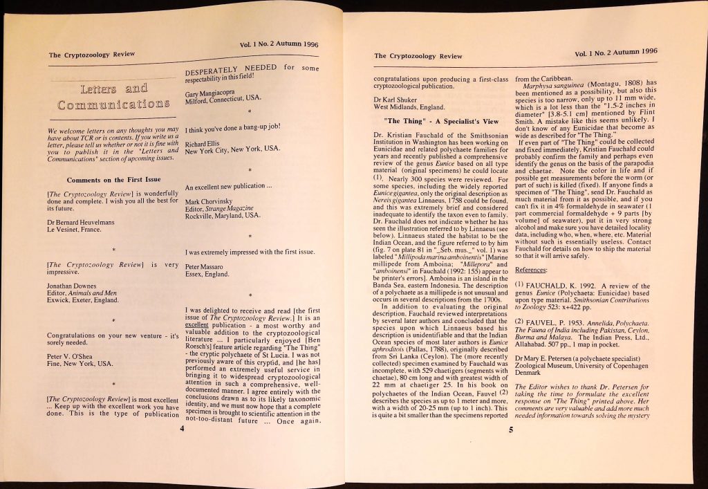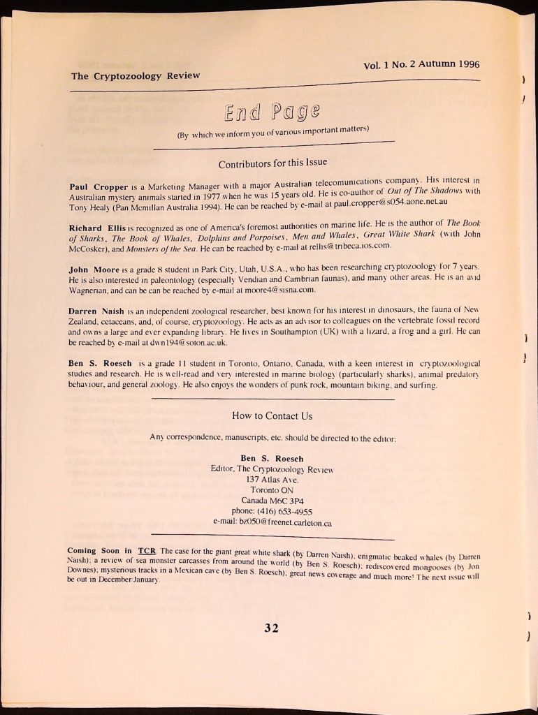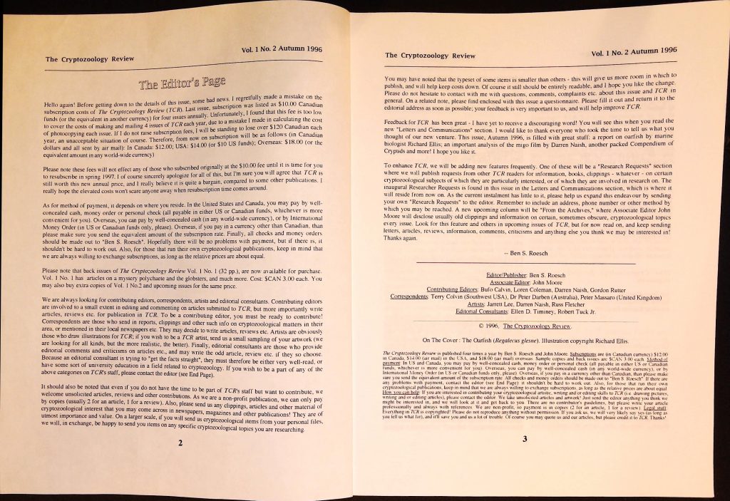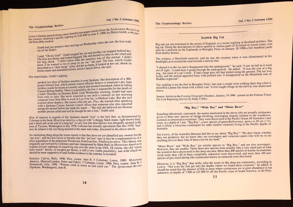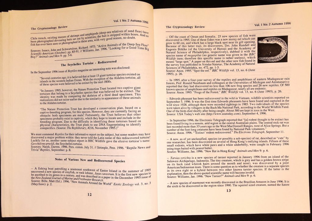 Cryptozoology - Misplaced Animals - Wildmen B3F27I2 Box 3 Folder 27. Cryptozoology Review Item 2. Vol. 1 No. 2