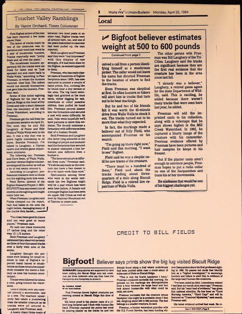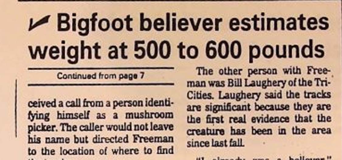 Cryptozoology - Wildmen B3F38I14 Box 3 Folder 38. Bigfoot Record Newsletter Item 14. Newspaper Articles