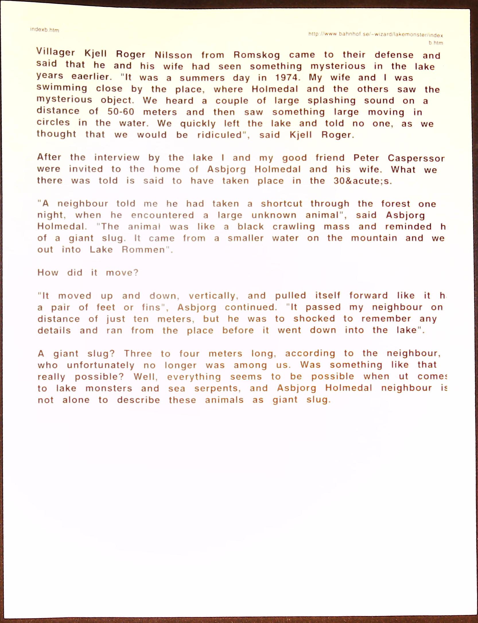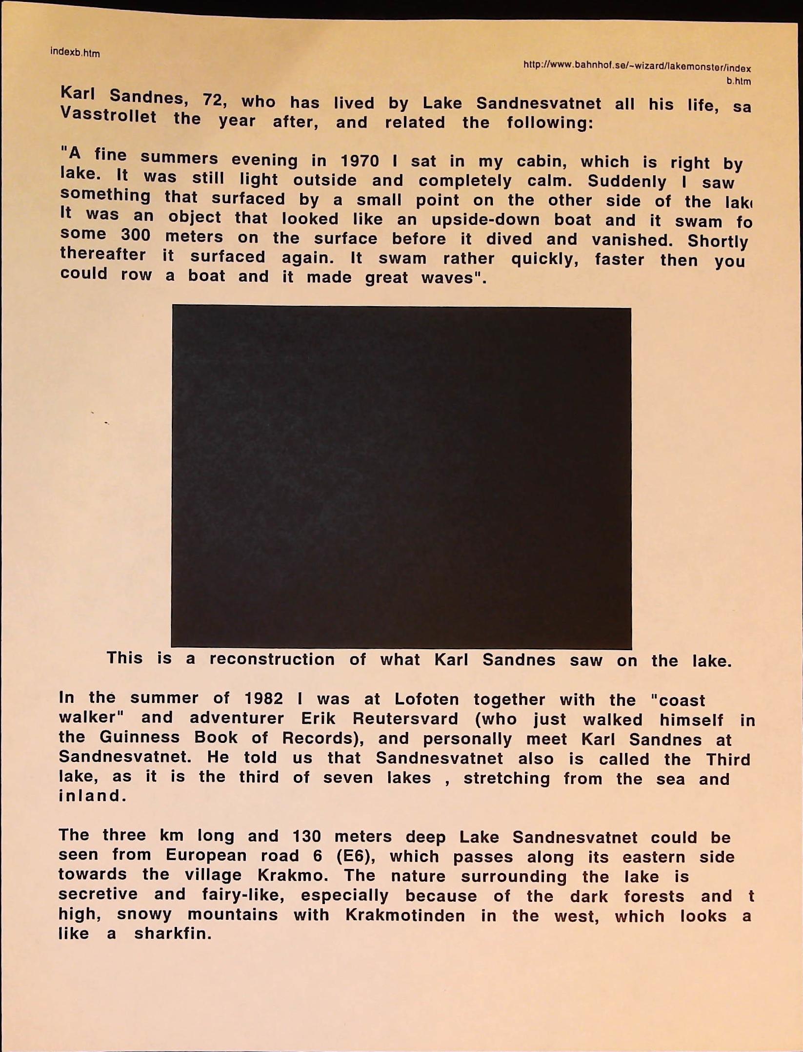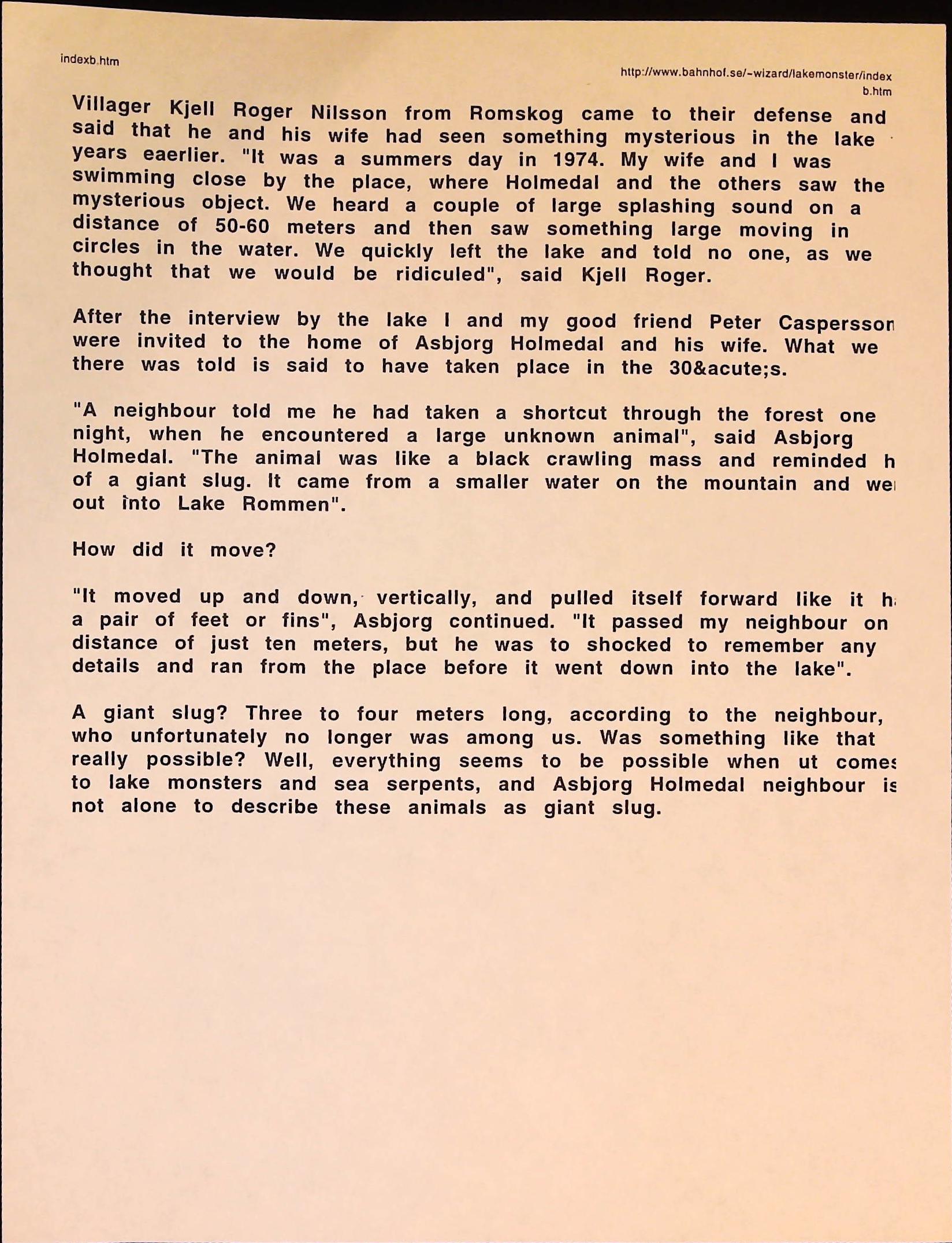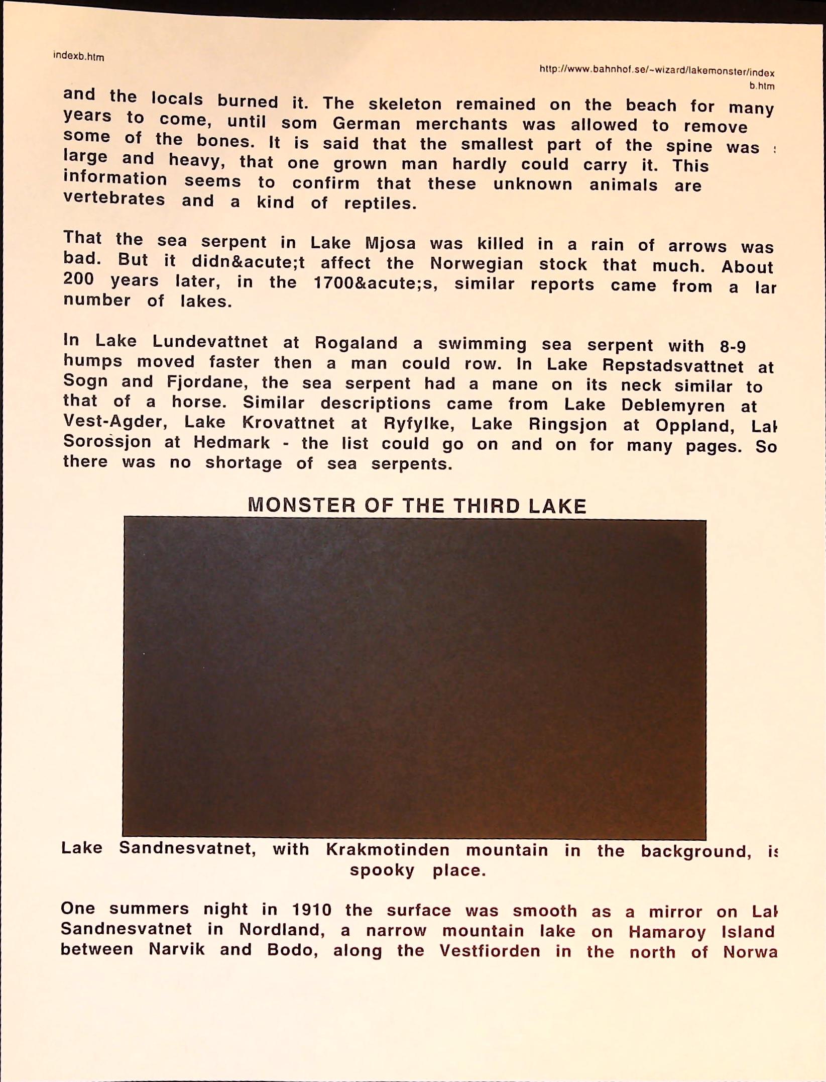 Cryptozoology B3F3I14 Box 3 Folder 3. Internet Crypto Newsletter Item 14. Norway – Where There is Water There Are Monsters