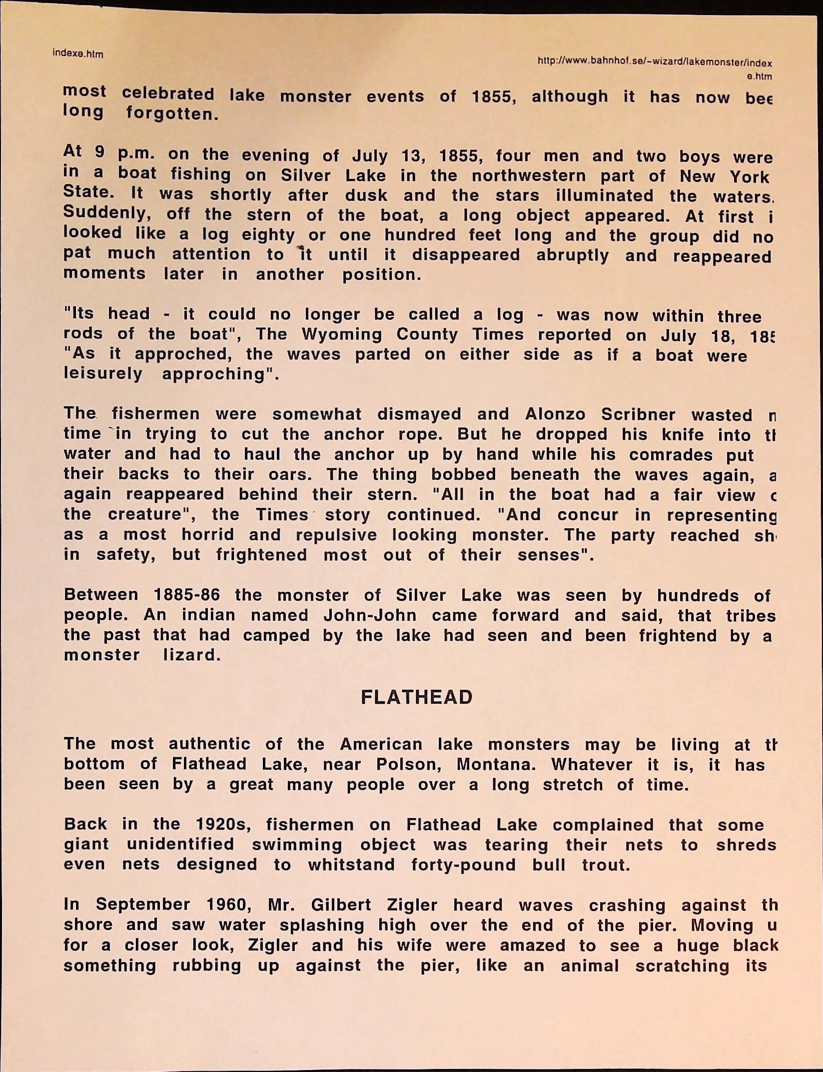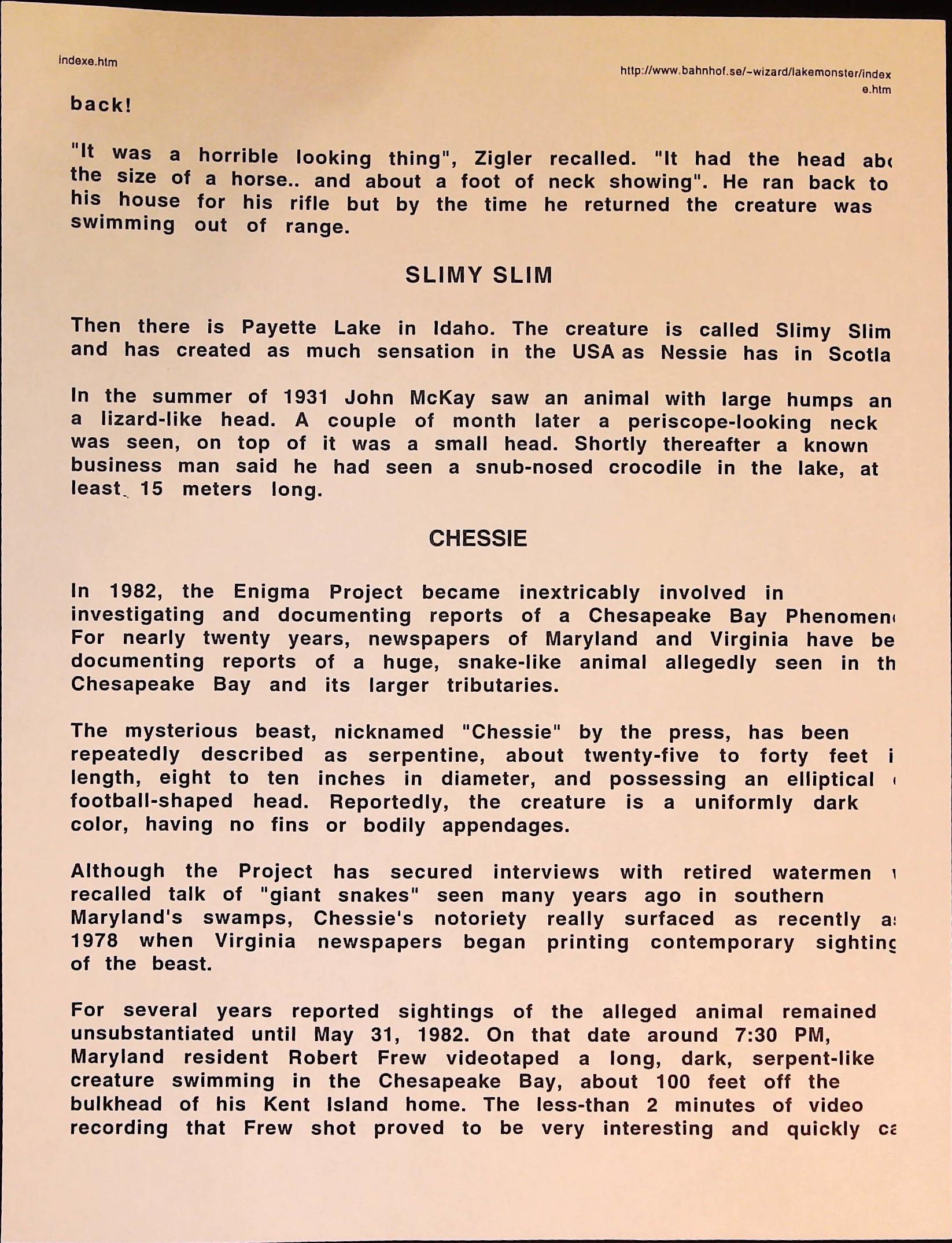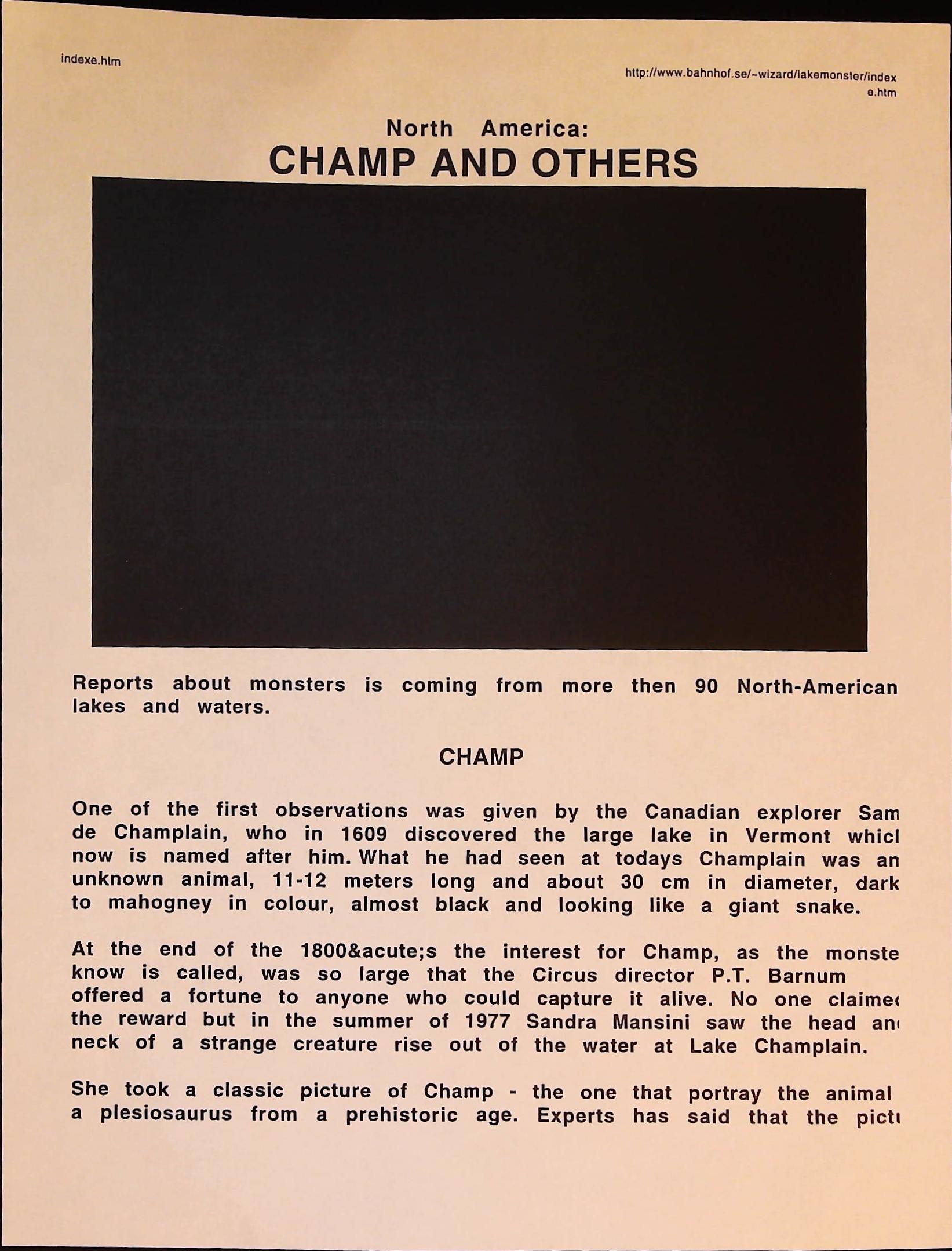 Cryptozoology B3F3I7 Box 3 Folder 3. Internet Crypto Newsletter Item 7. North America – Champ and Others