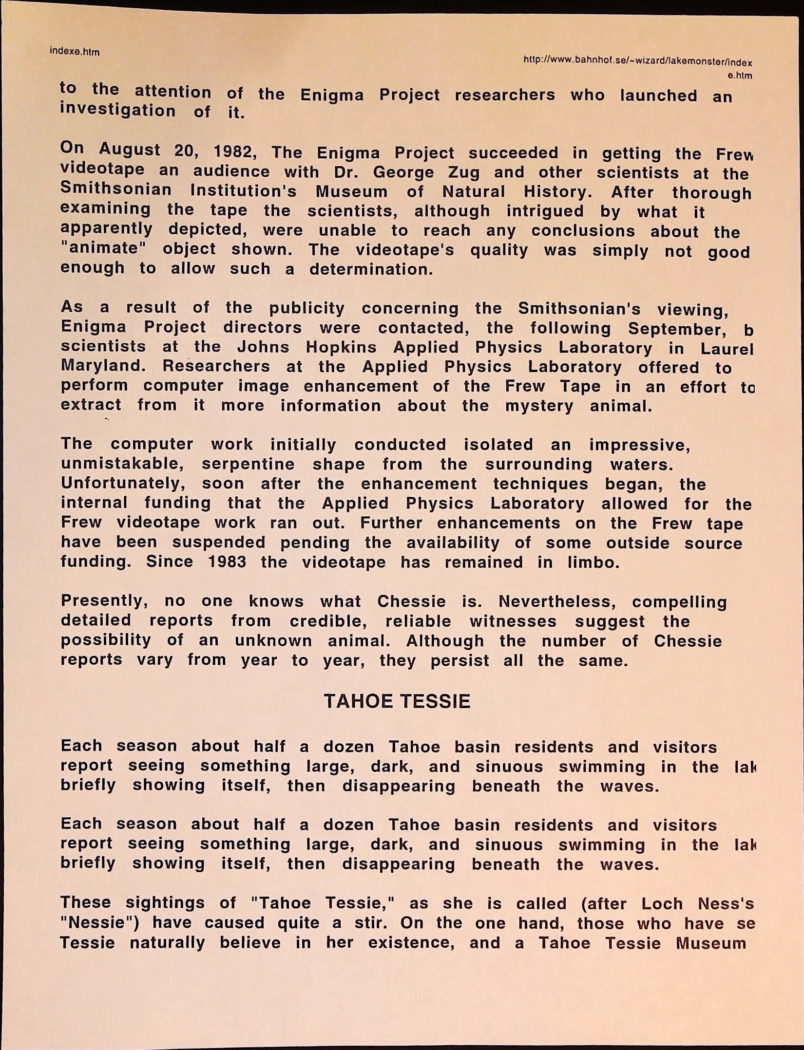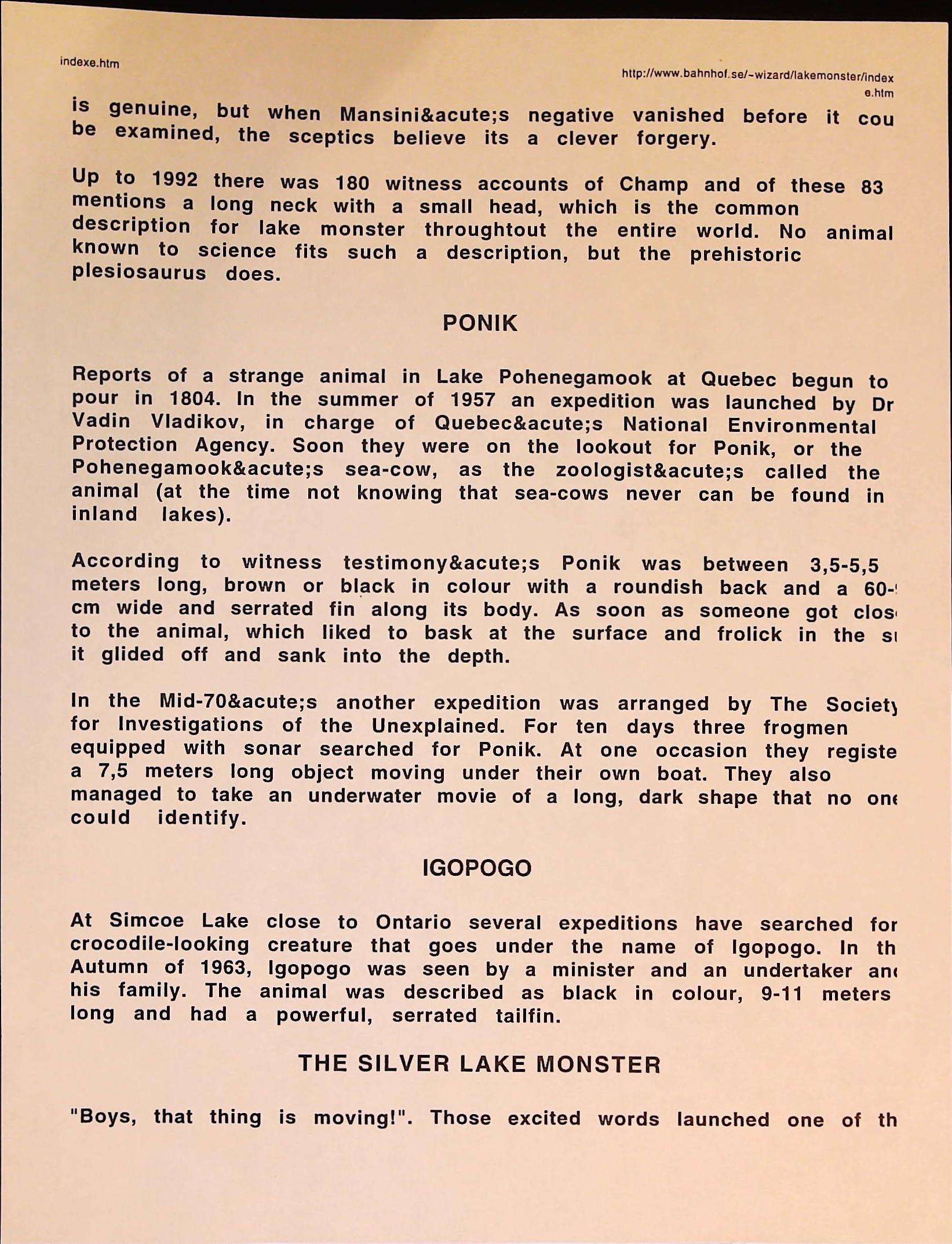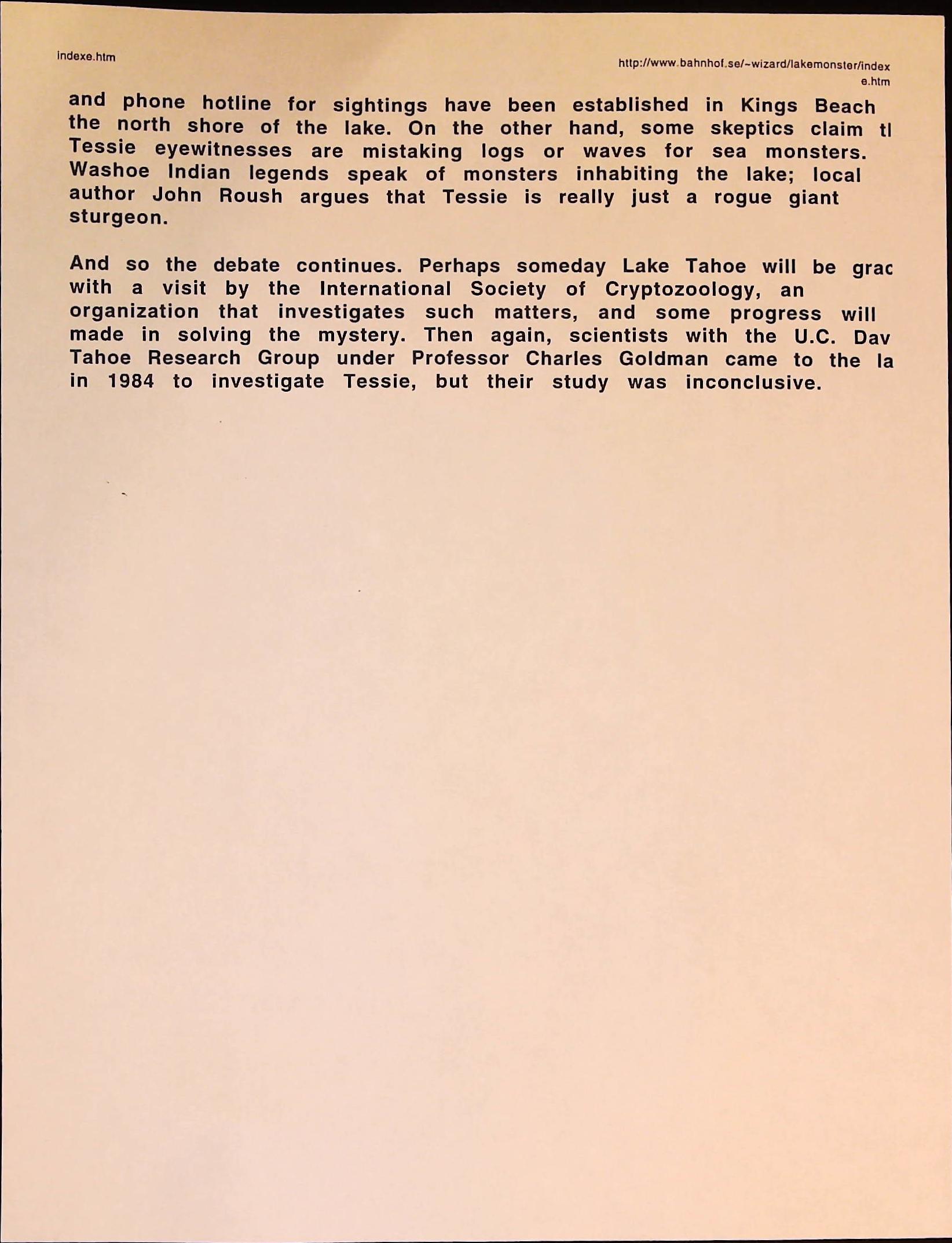 Cryptozoology B3F3I7 Box 3 Folder 3. Internet Crypto Newsletter Item 7. North America – Champ and Others