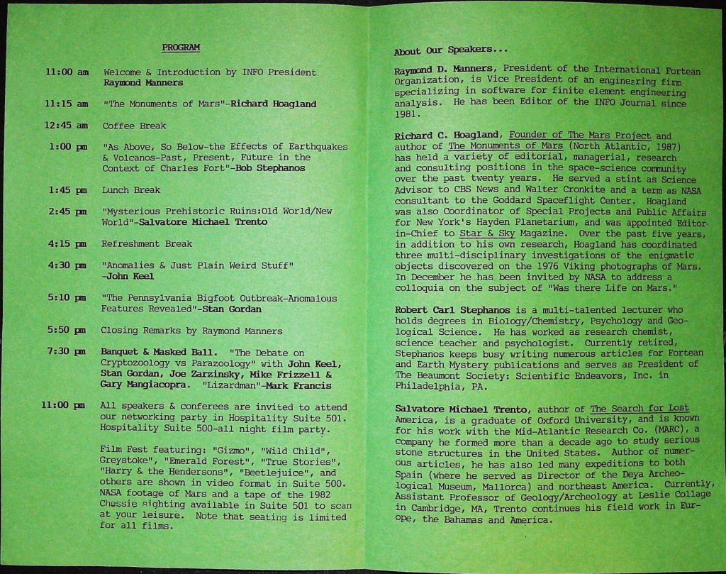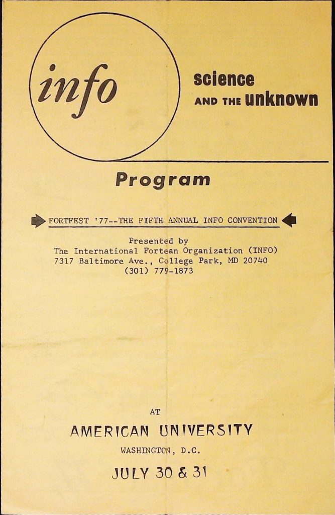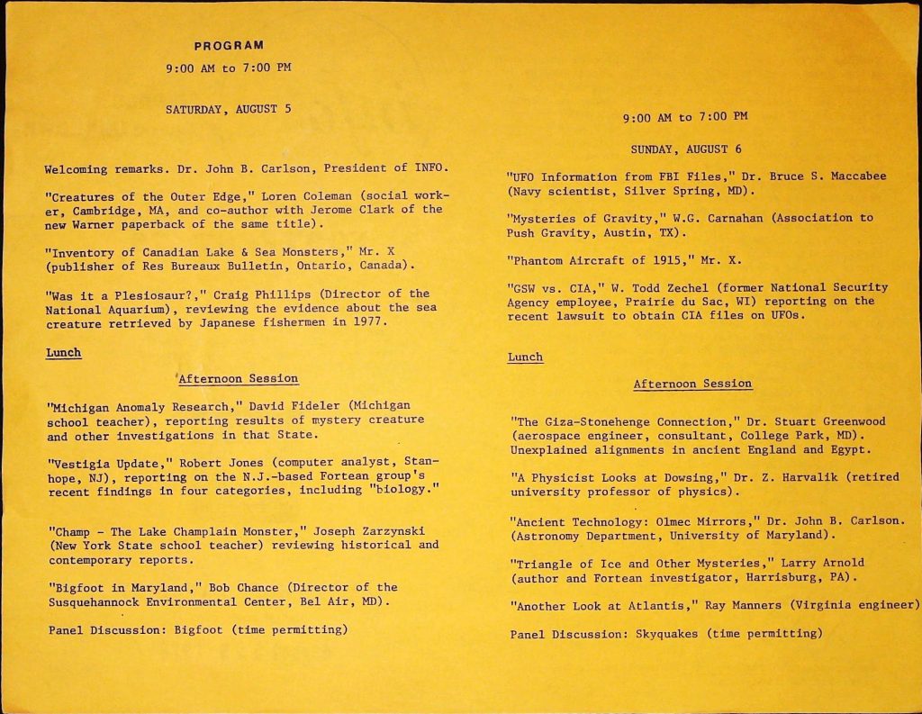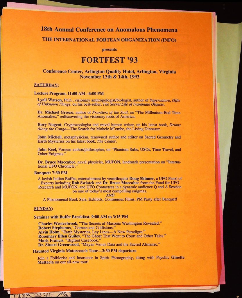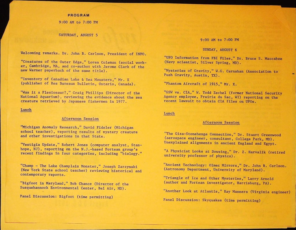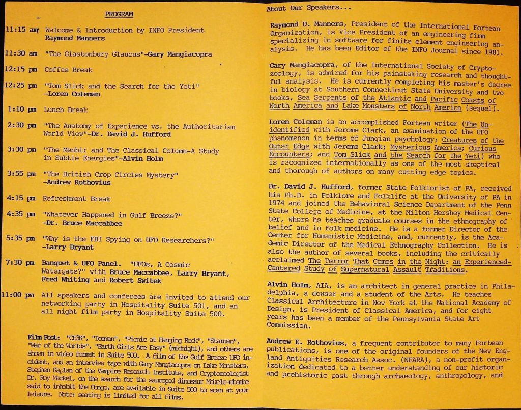Uncategorized B3F6I1 Box 3 Folder 6: The International Fortean Organization (INFO) Item 1. Conference Agendas