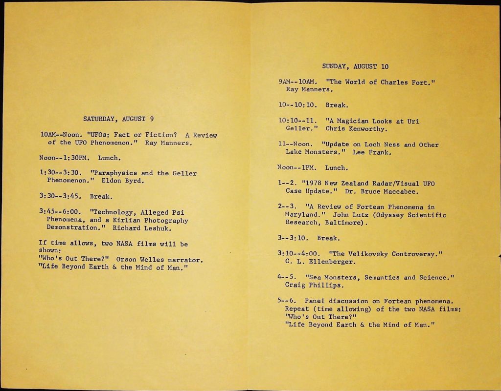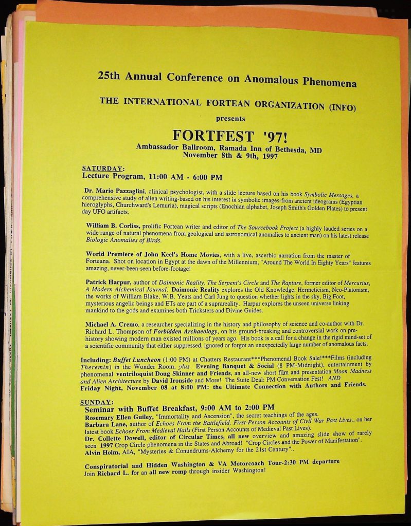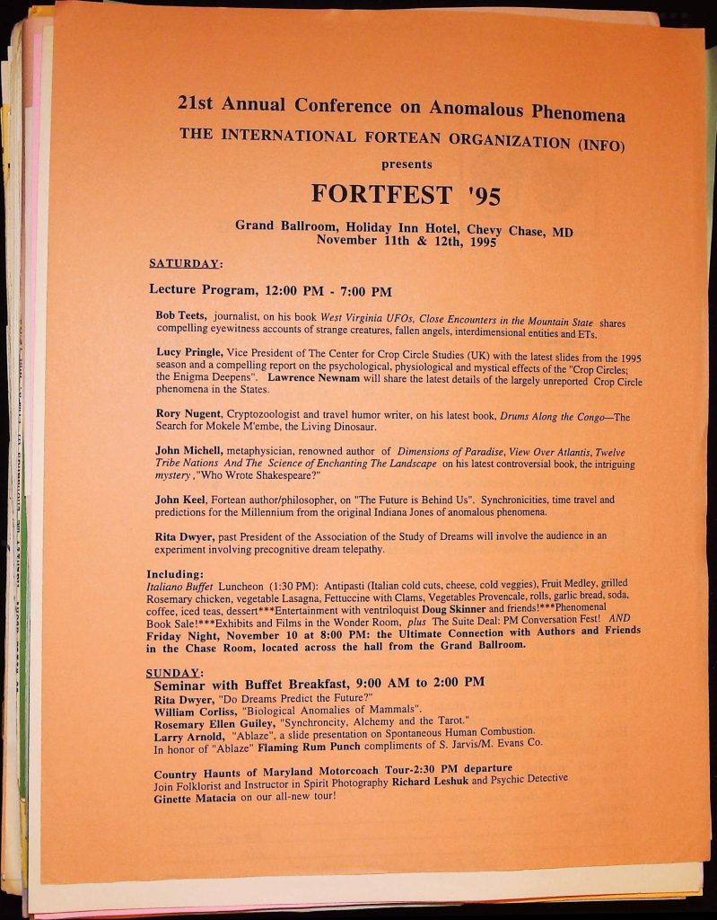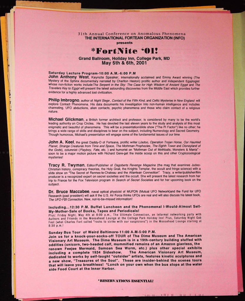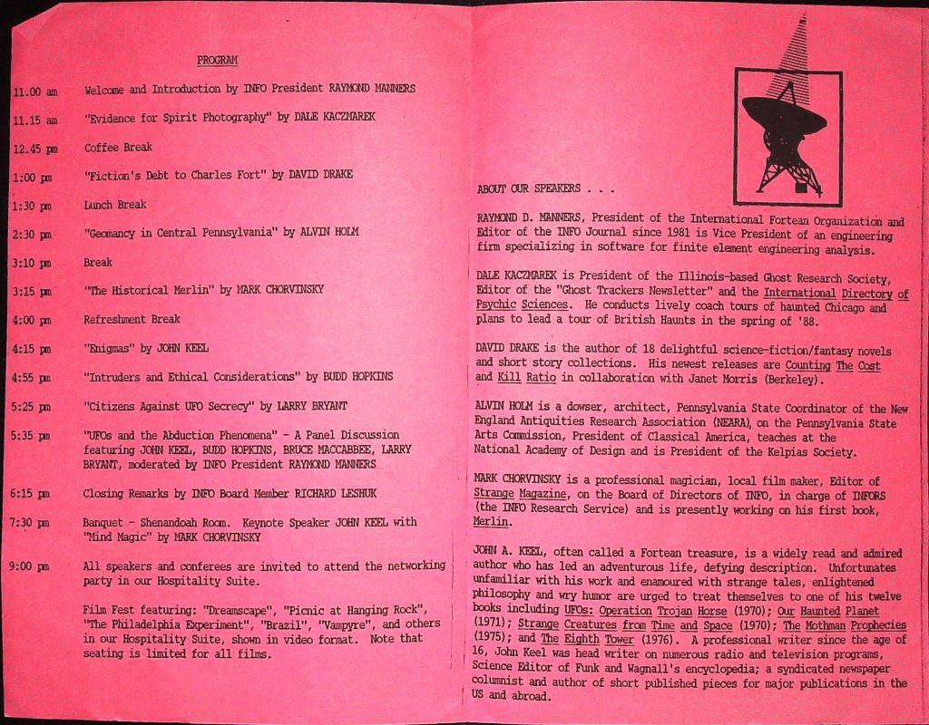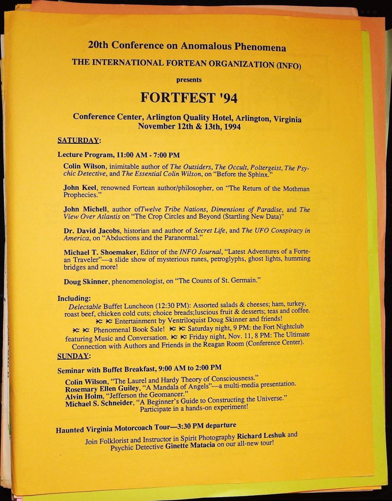 Uncategorized B3F6I1 Box 3 Folder 6: The International Fortean Organization (INFO) Item 1. Conference Agendas