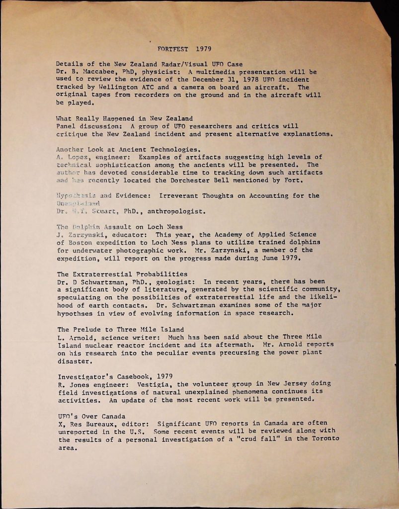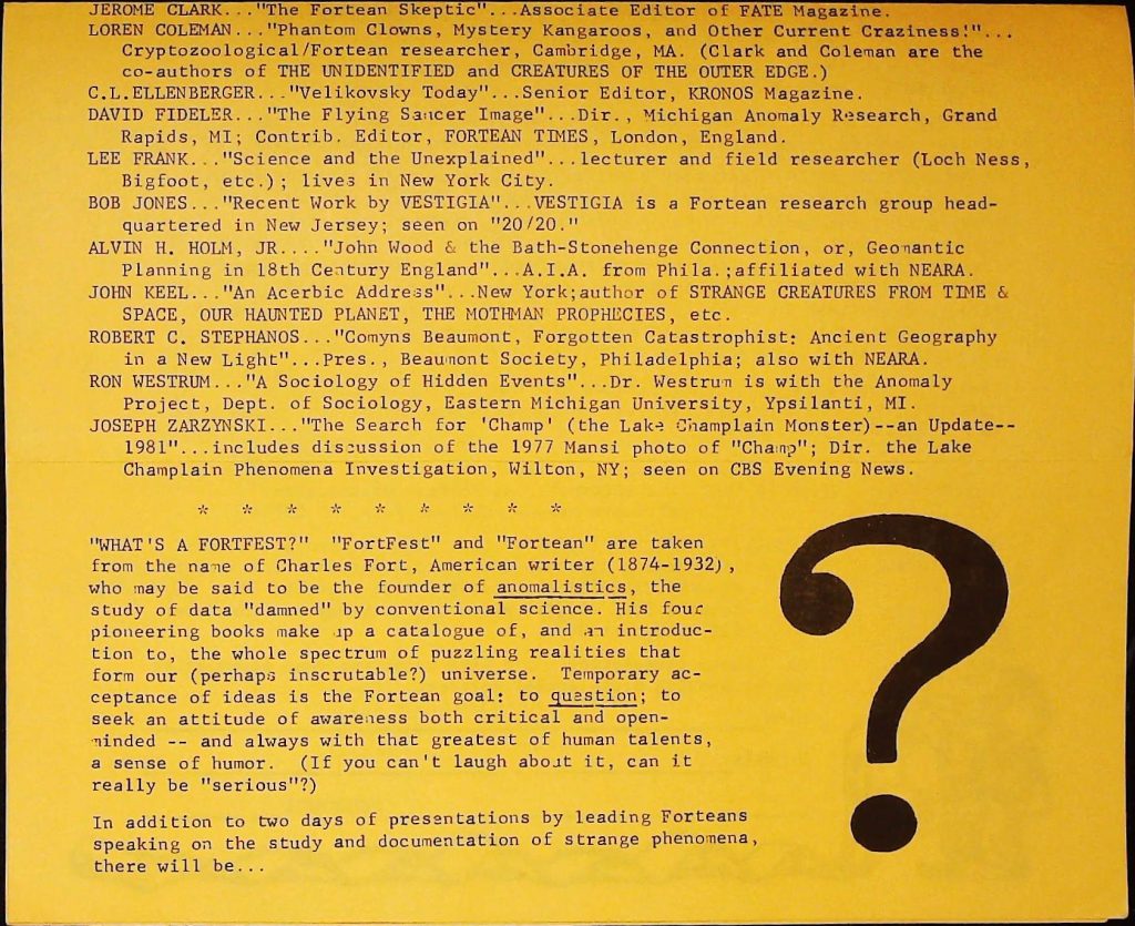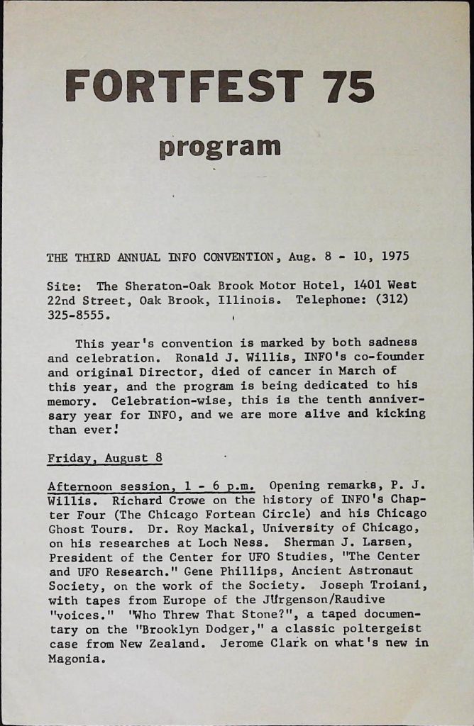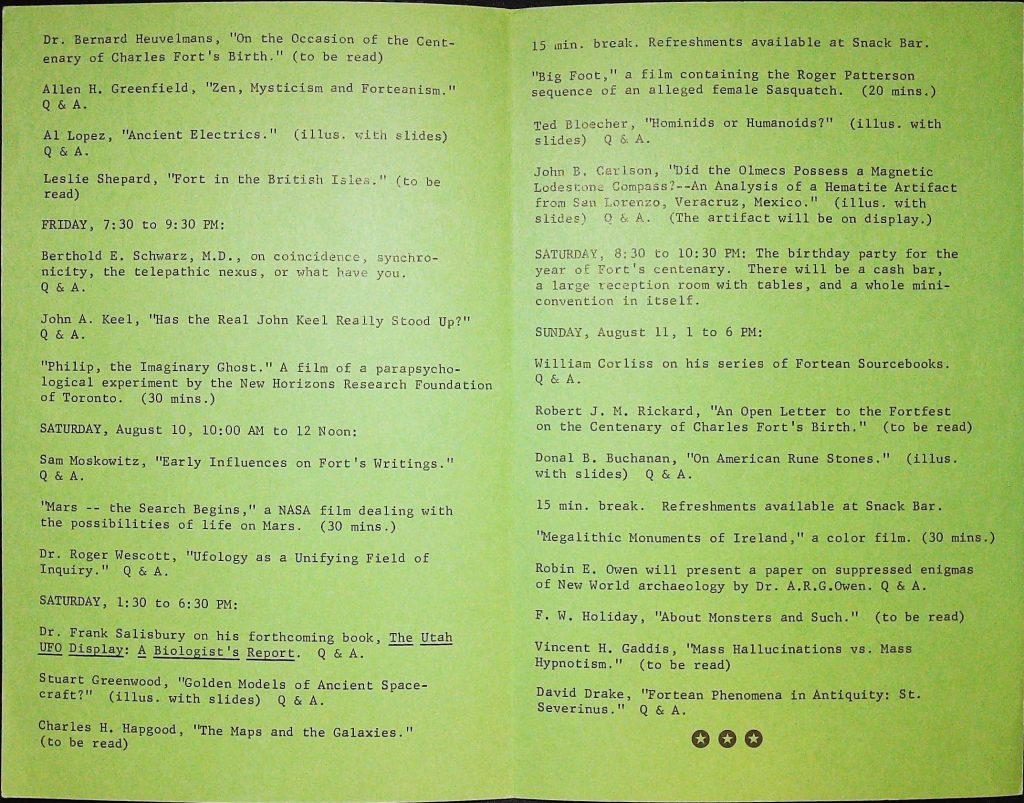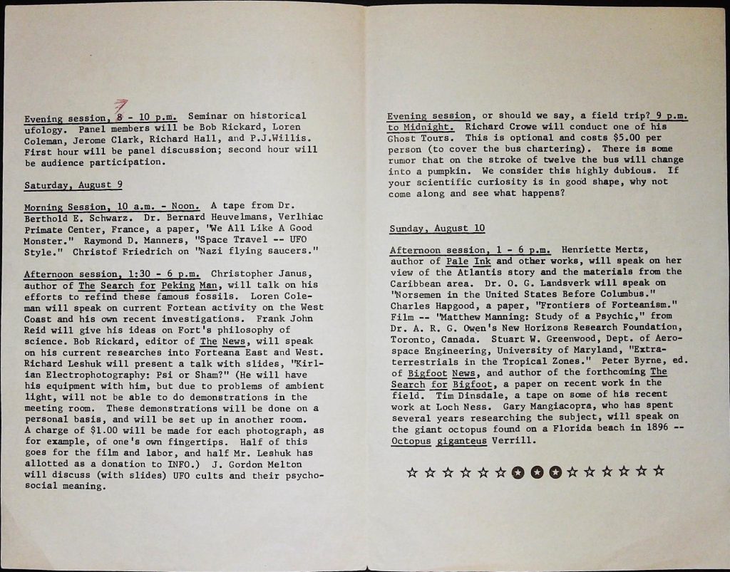 Uncategorized B3F6I1 Box 3 Folder 6: The International Fortean Organization (INFO) Item 1. Conference Agendas