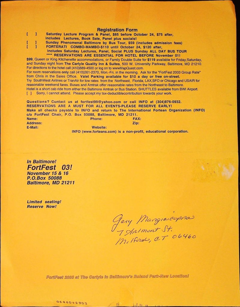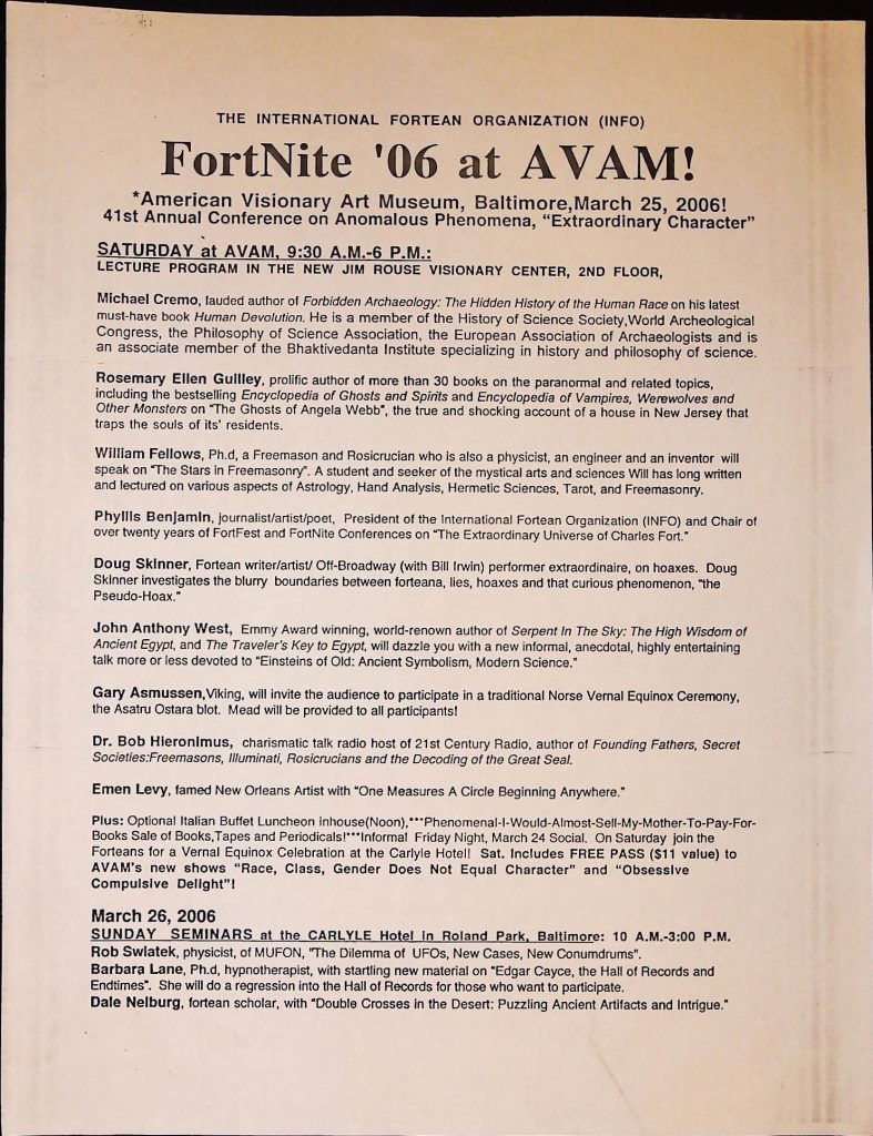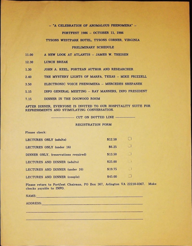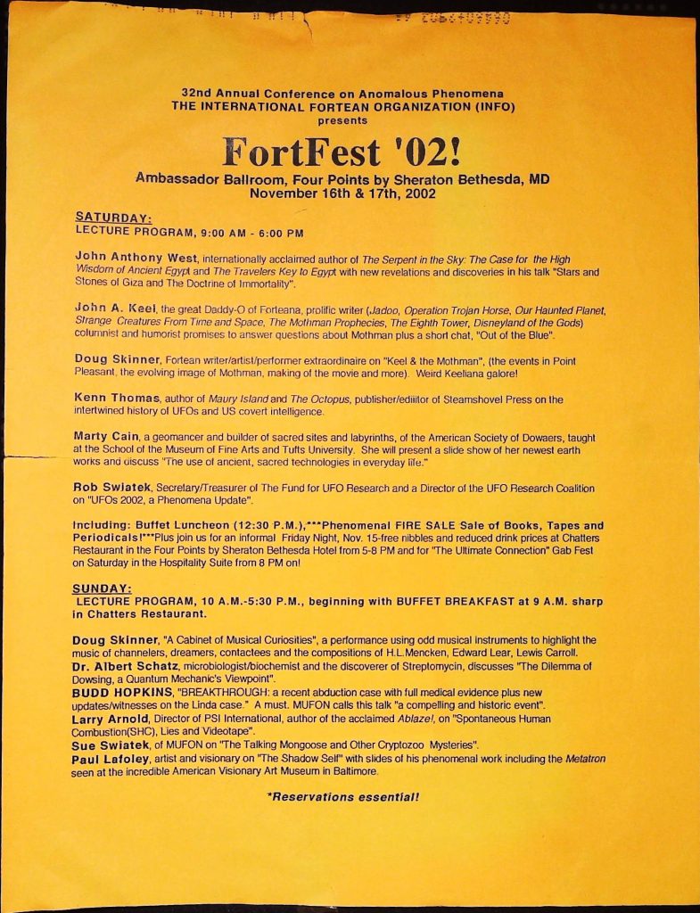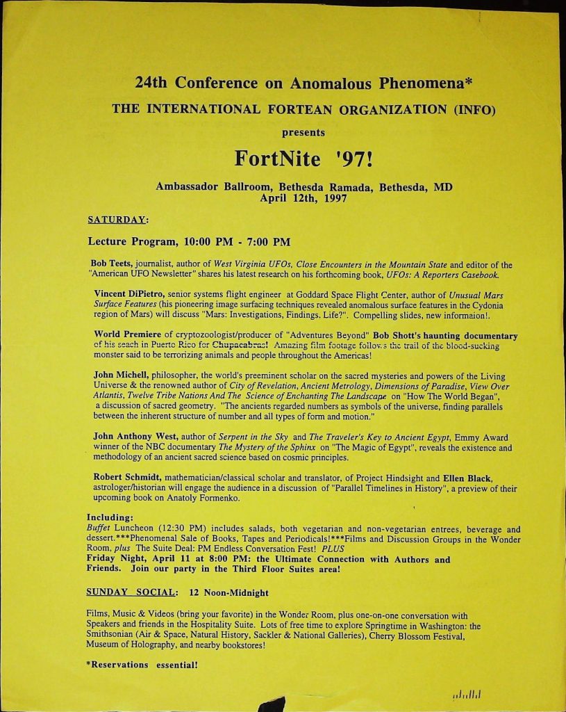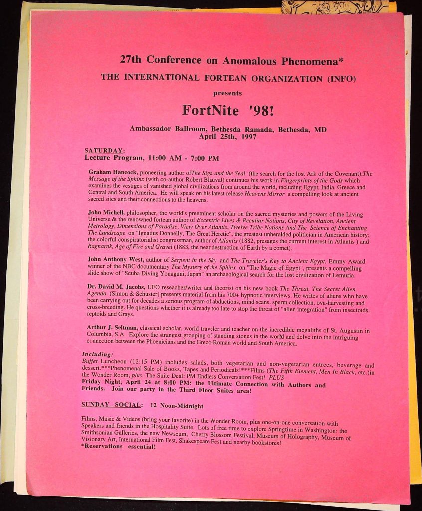 Uncategorized B3F6I1 Box 3 Folder 6: The International Fortean Organization (INFO) Item 1. Conference Agendas
