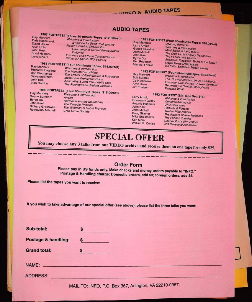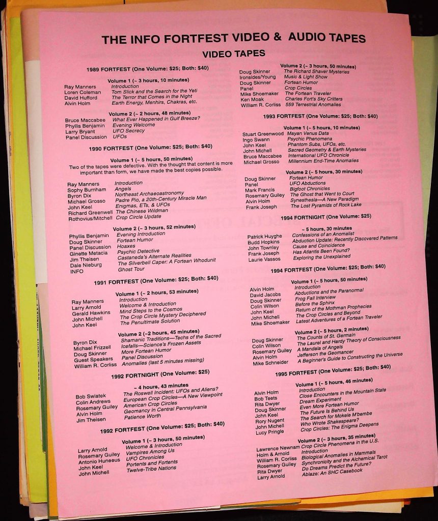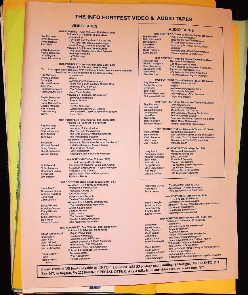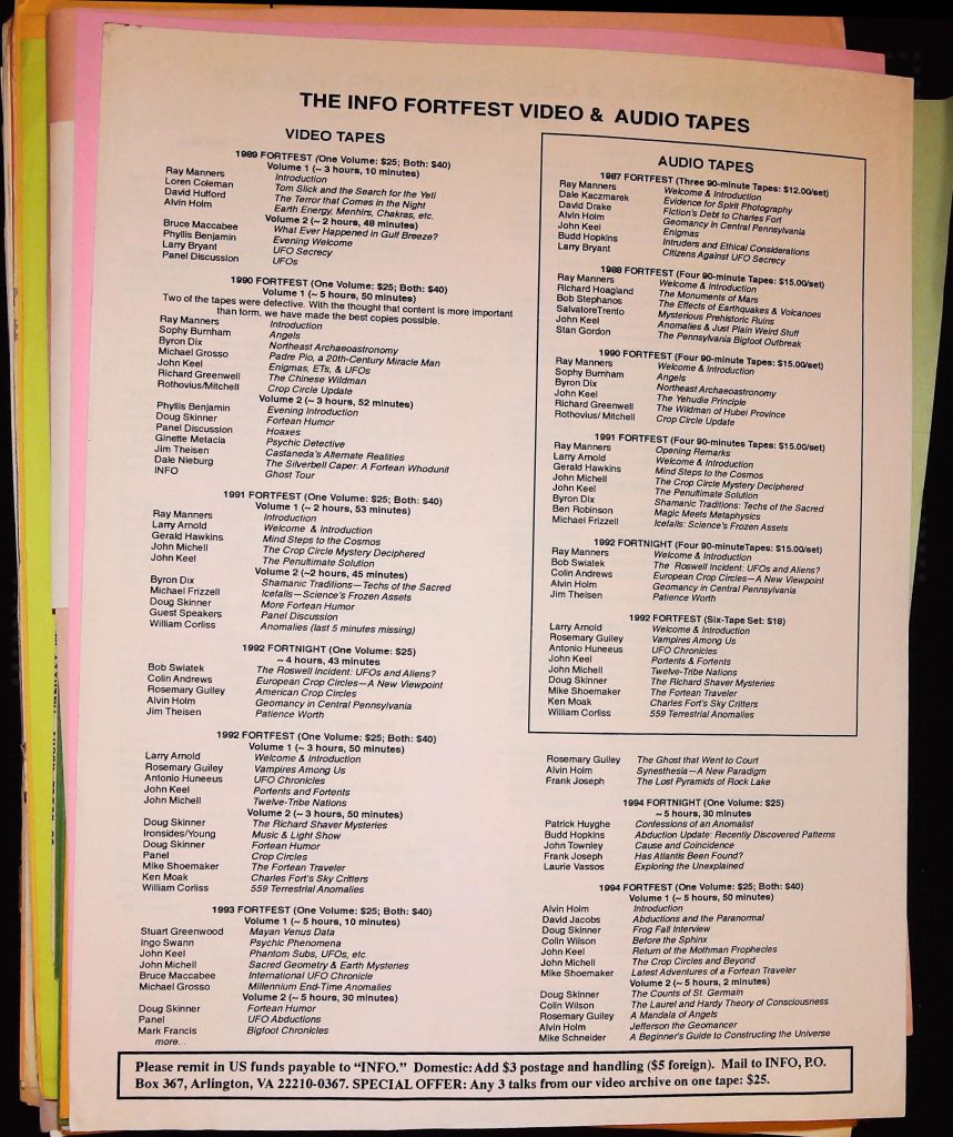 Uncategorized B3F6I2 Box 3 Folder 6: The International Fortean Organization (INFO) Item 2. Info Fortfest Video & Audio Tapes