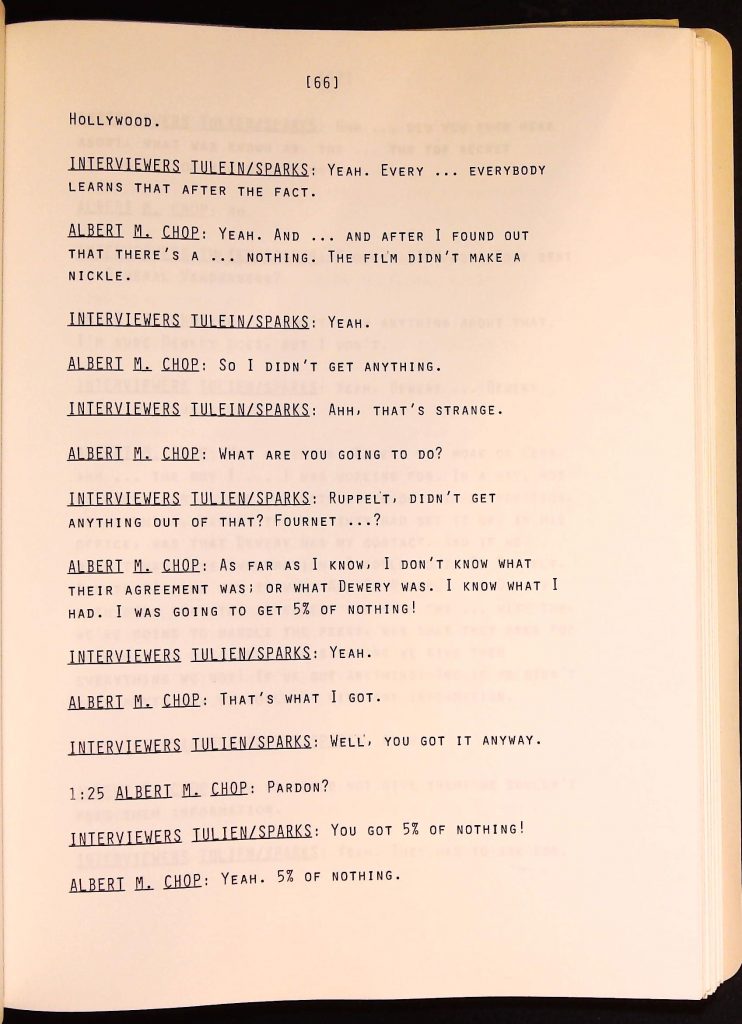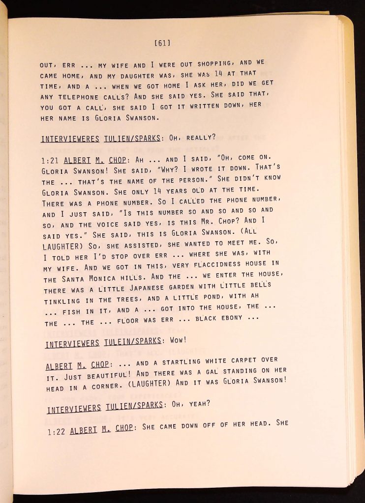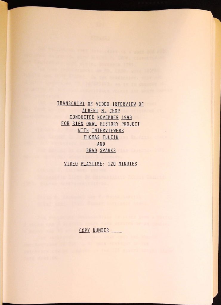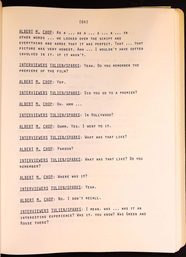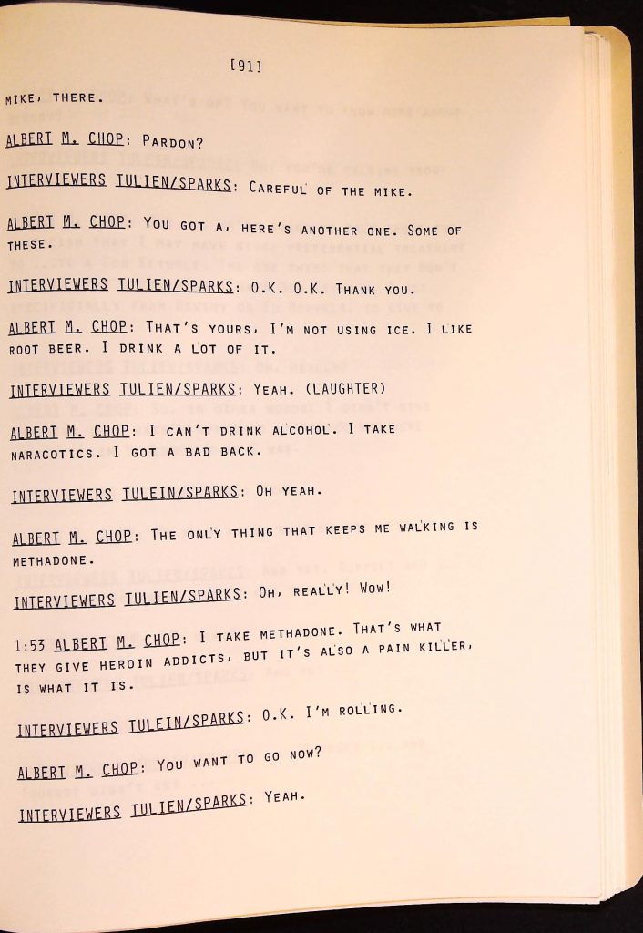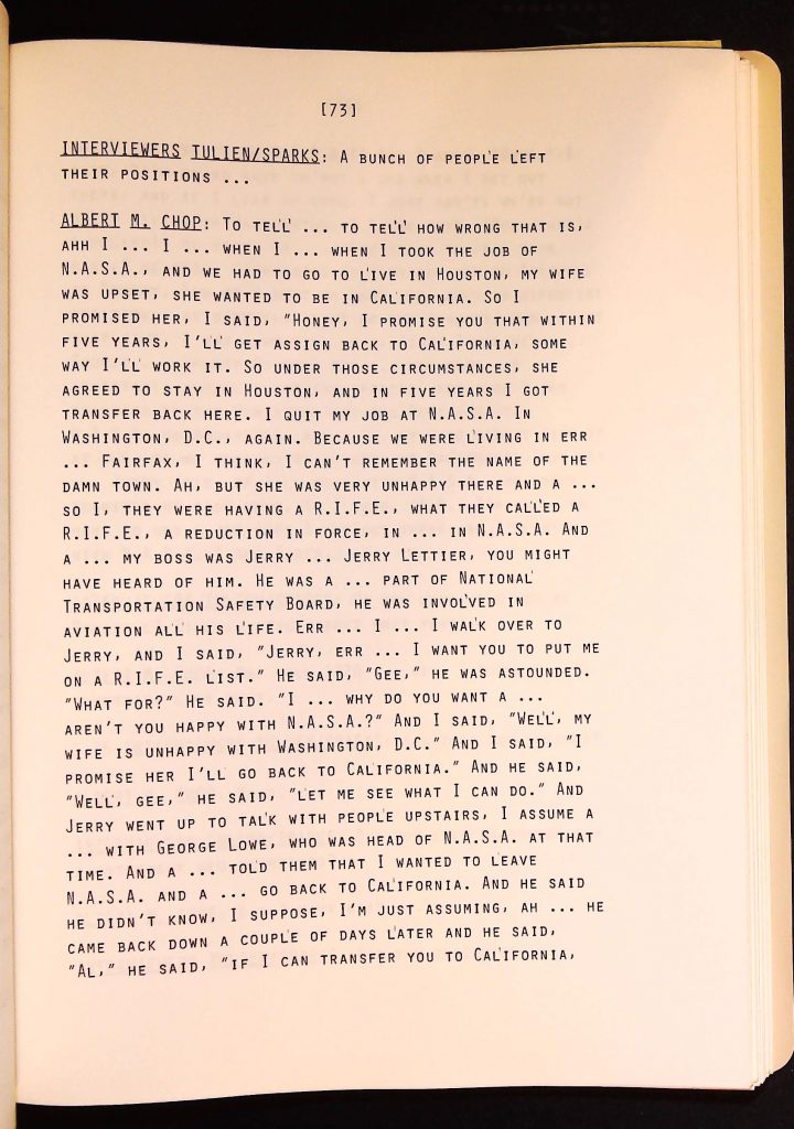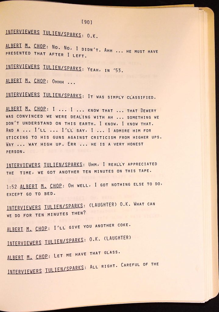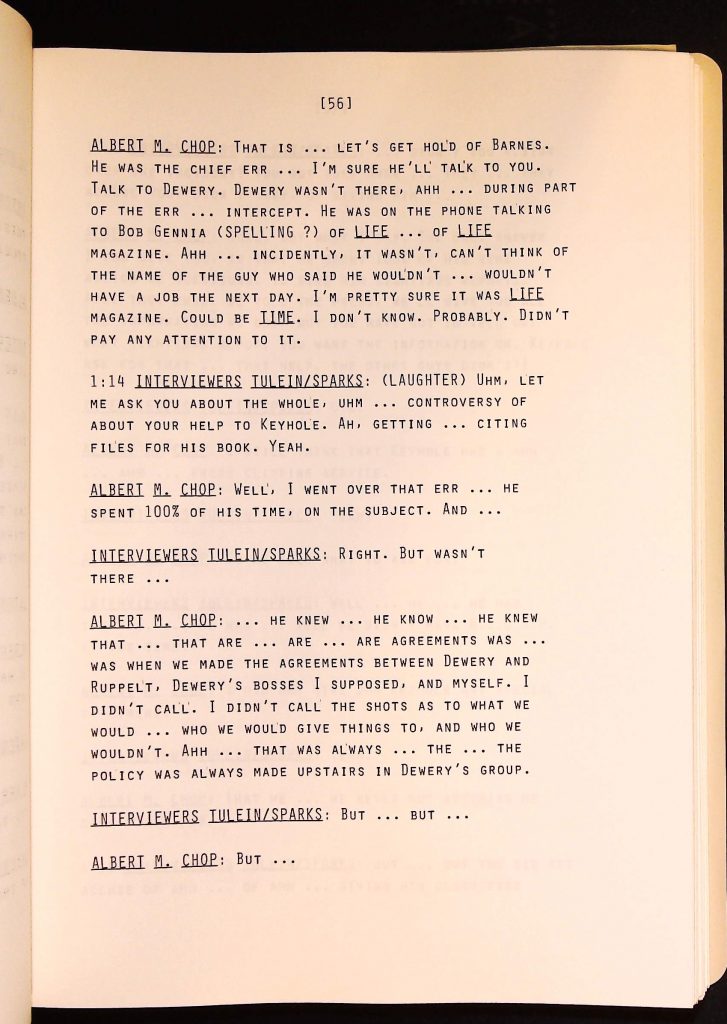 UFOs B4F1I1 Box 4 Folder 1. UFO Interview and Documentary Transcripts Item 1. Transcript of Video Interview with Albert M. Chop 1999