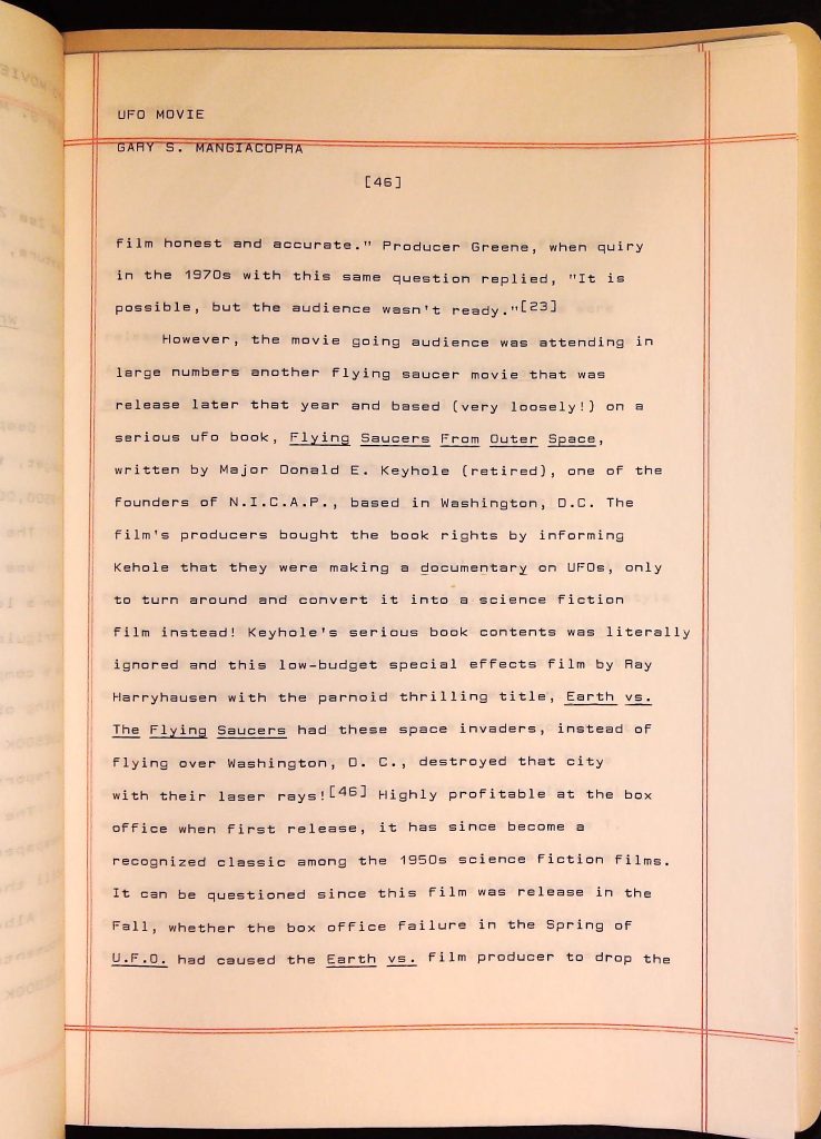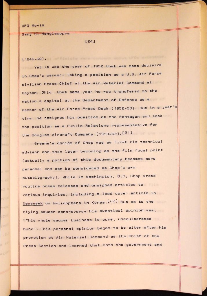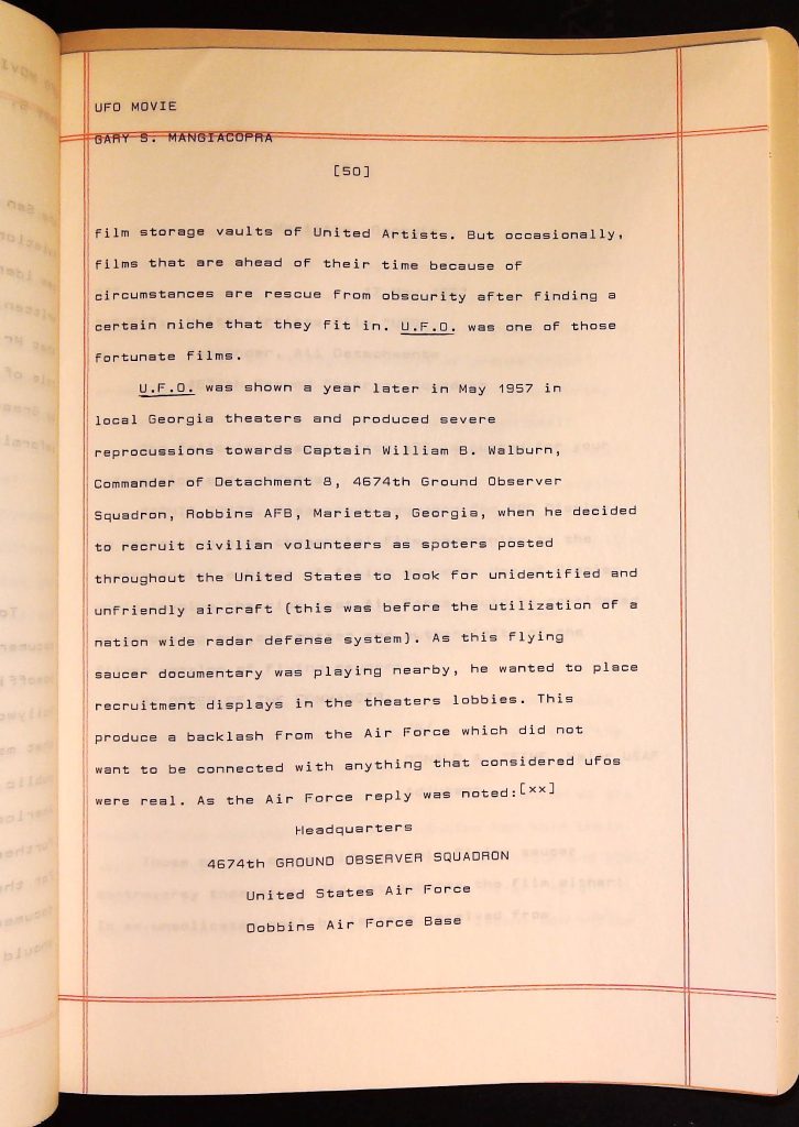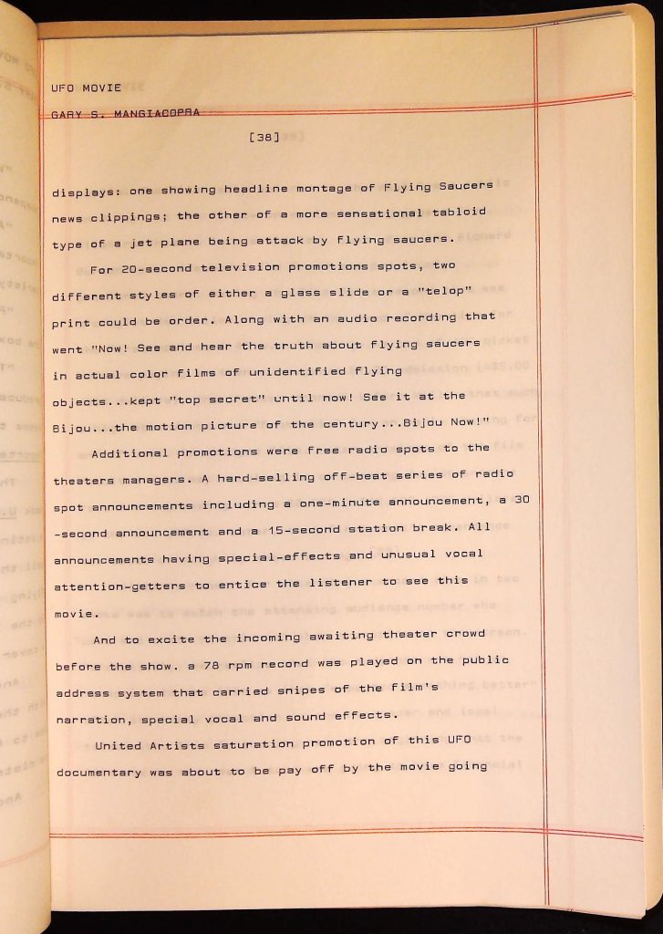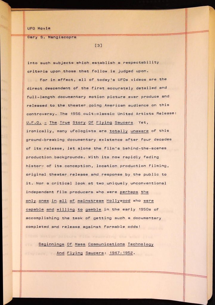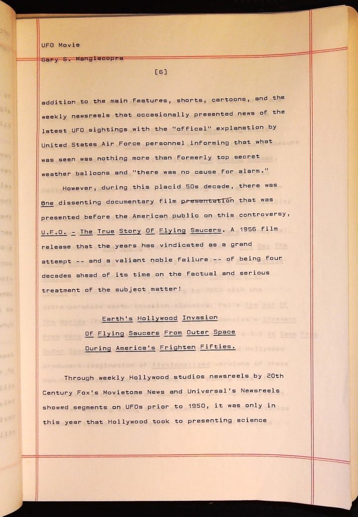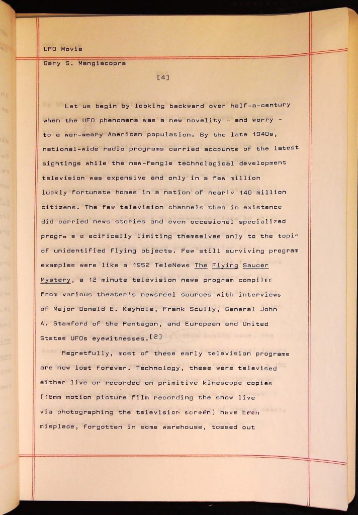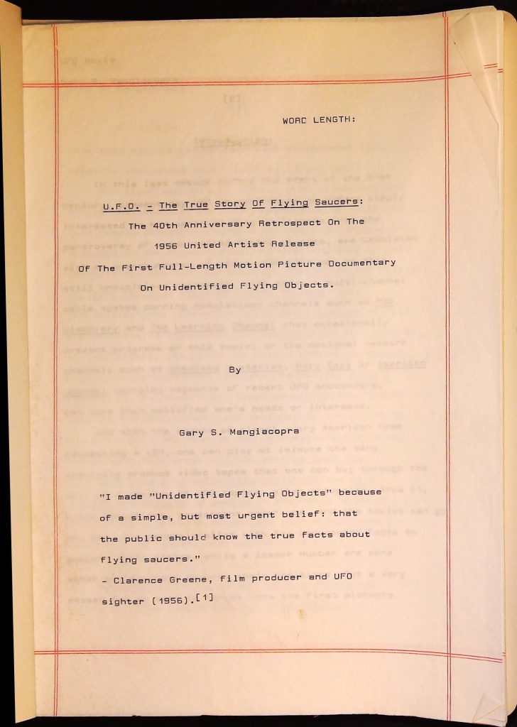 UFOs B4F1I3 Box 4 Folder 1. UFO Interview and Documentary Transcripts Item 3. UFO The True Story of Flying Saucers