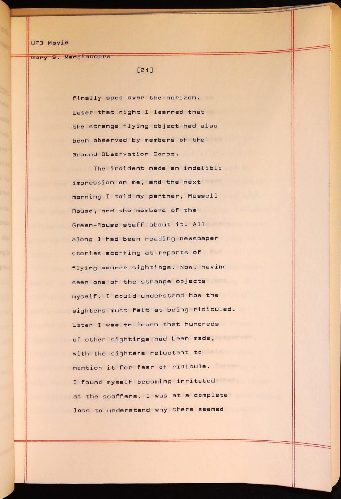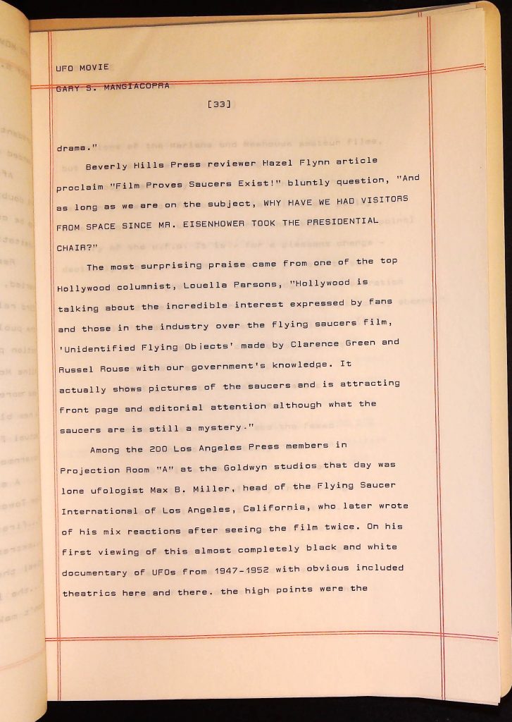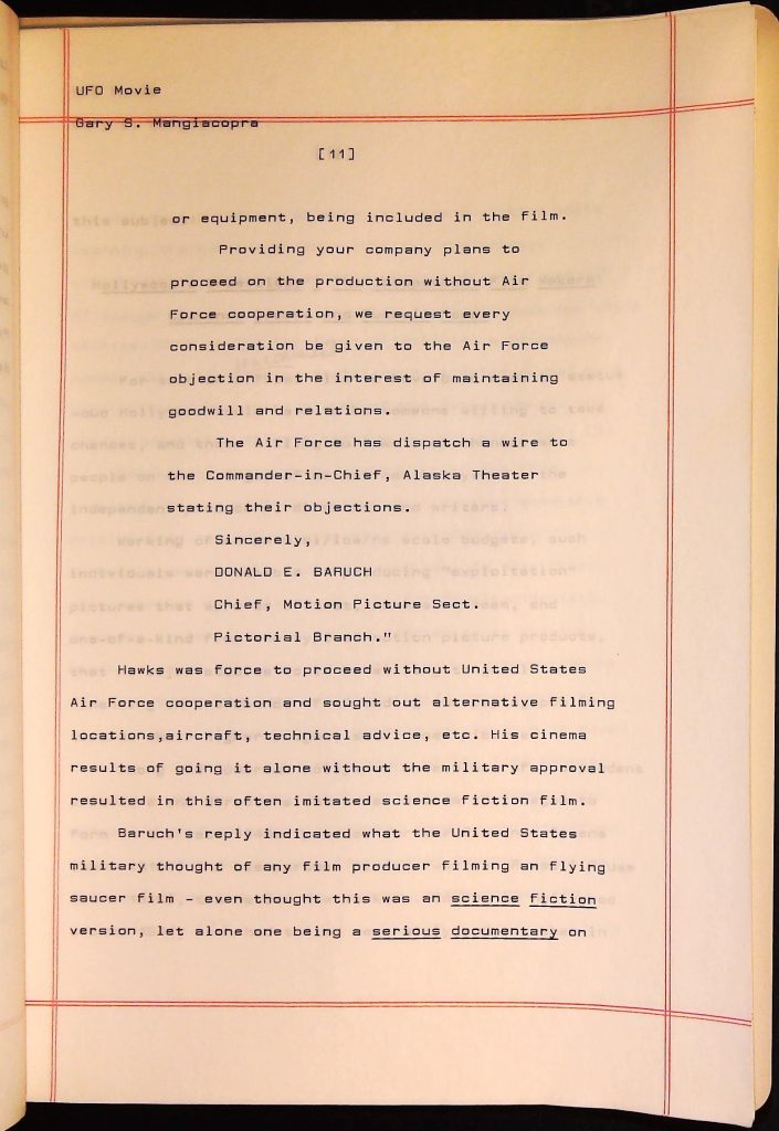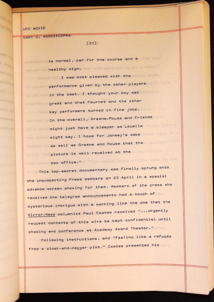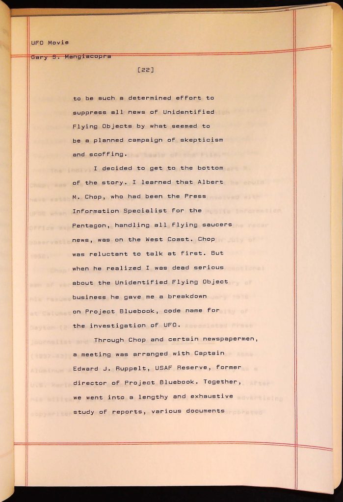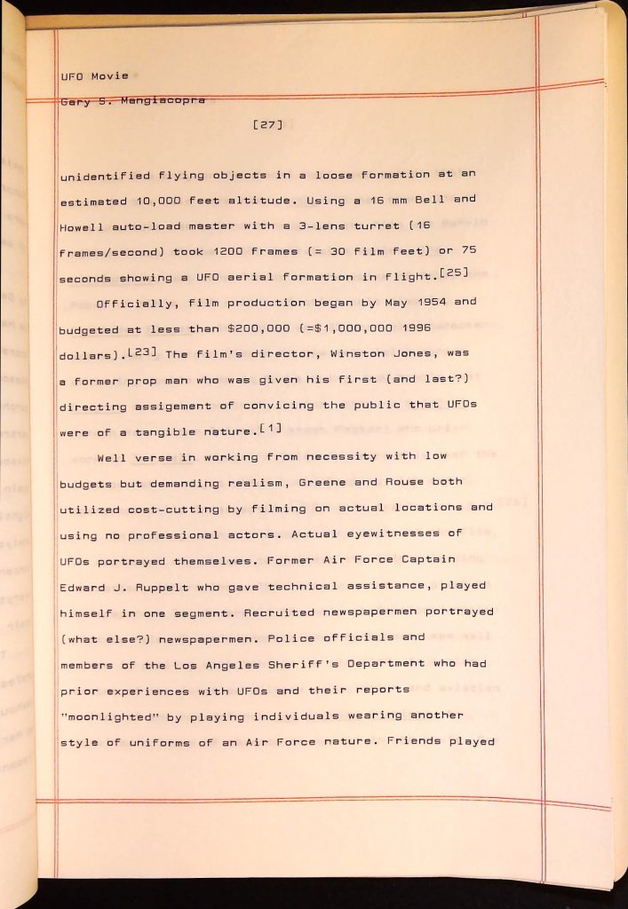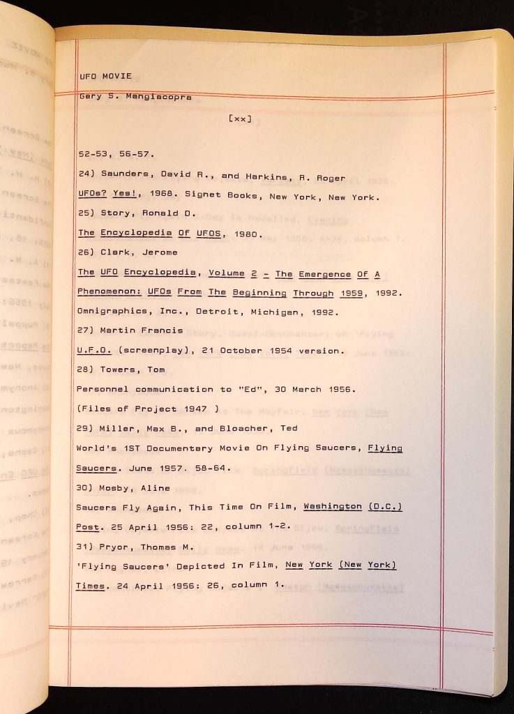 UFOs B4F1I3 Box 4 Folder 1. UFO Interview and Documentary Transcripts Item 3. UFO The True Story of Flying Saucers