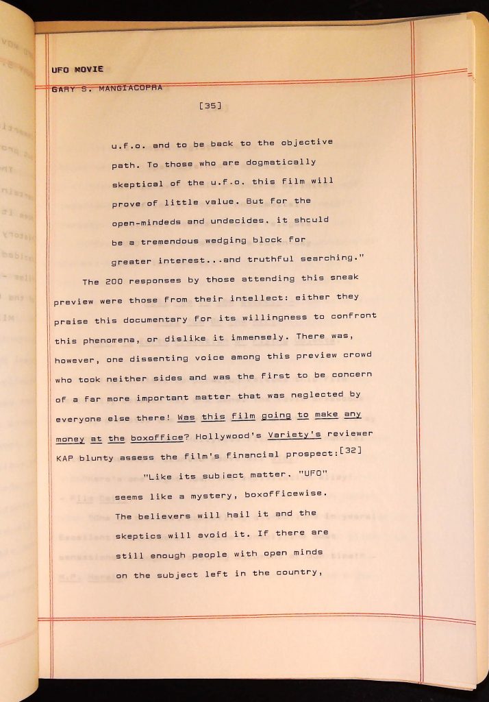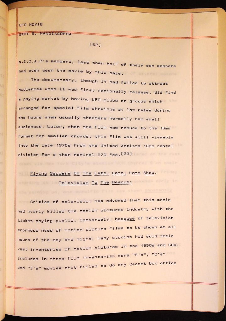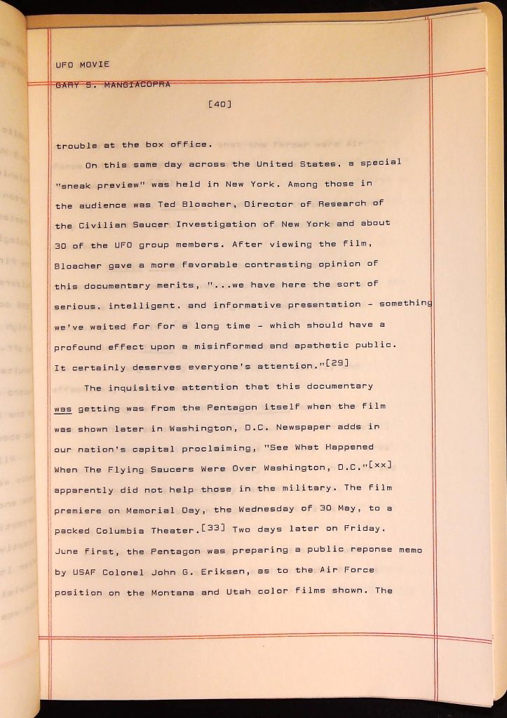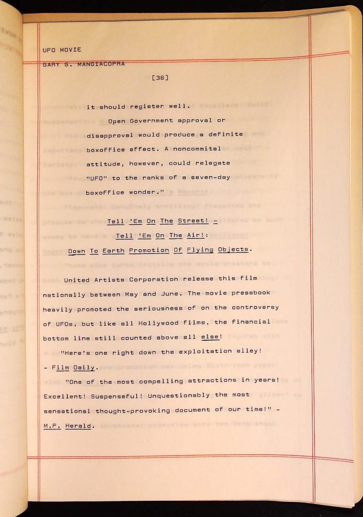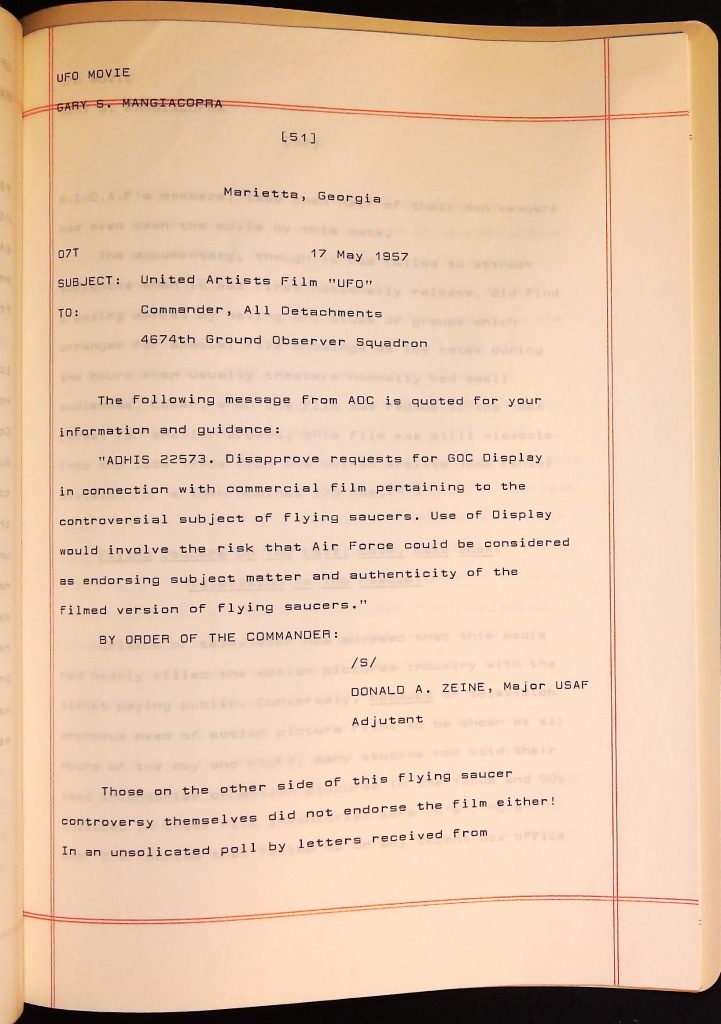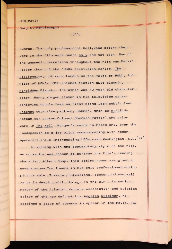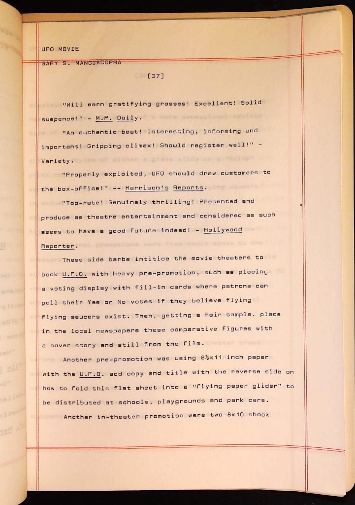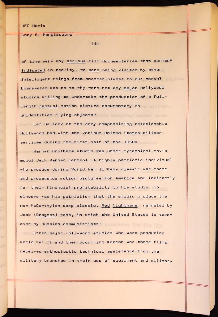 UFOs B4F1I3 Box 4 Folder 1. UFO Interview and Documentary Transcripts Item 3. UFO The True Story of Flying Saucers