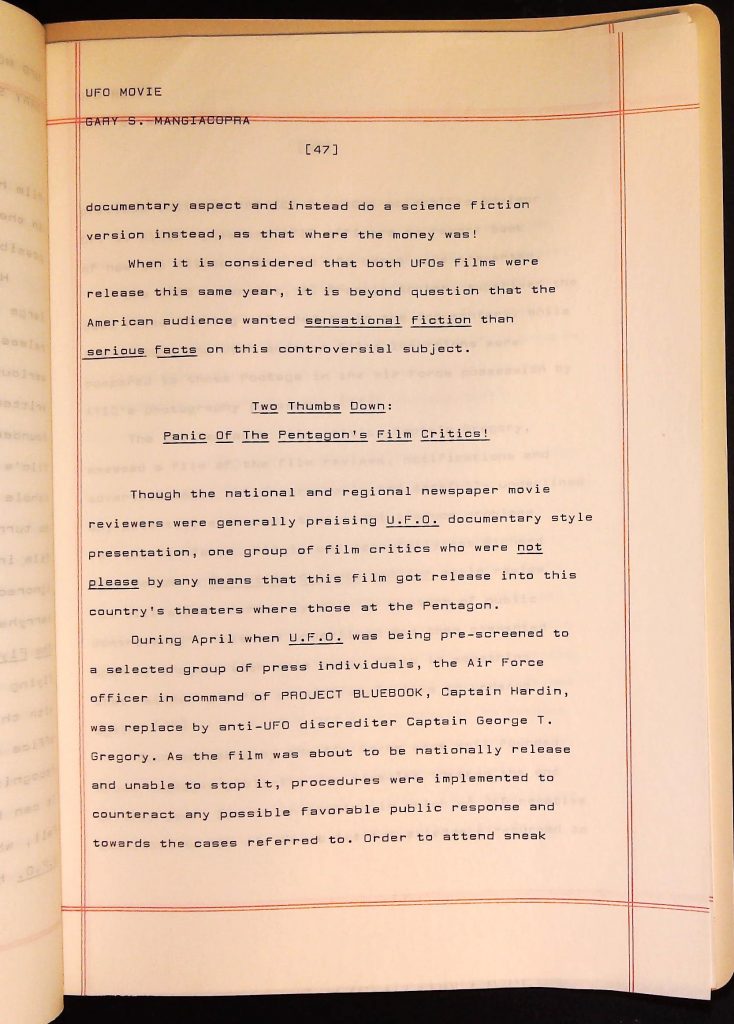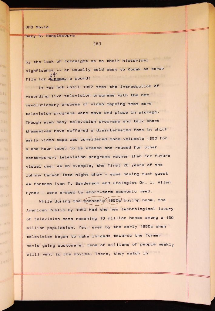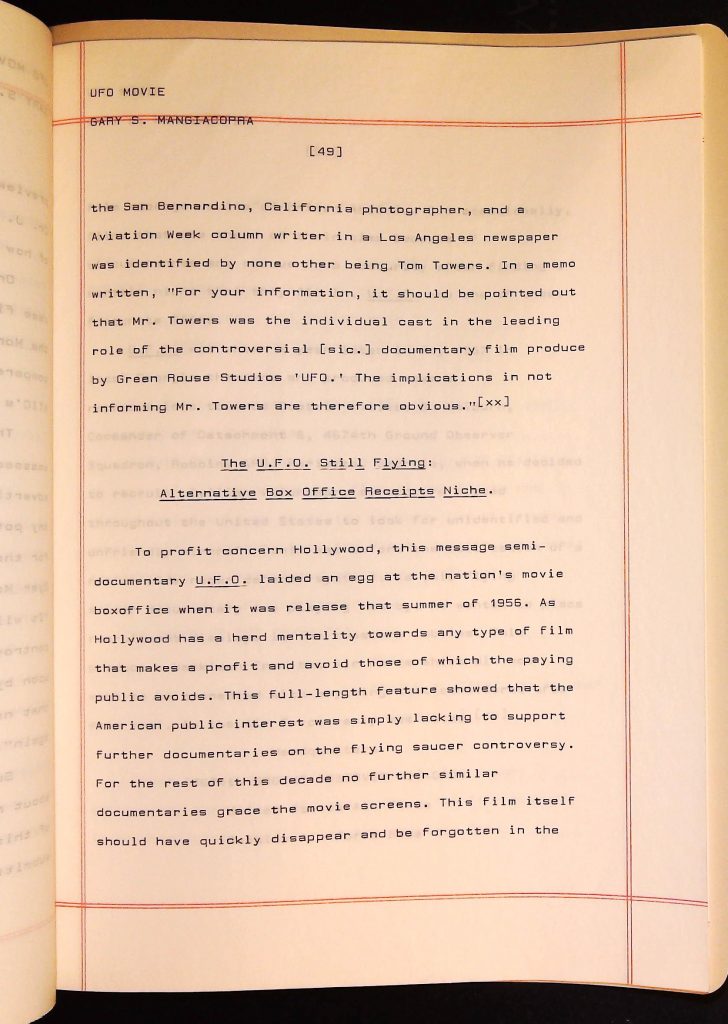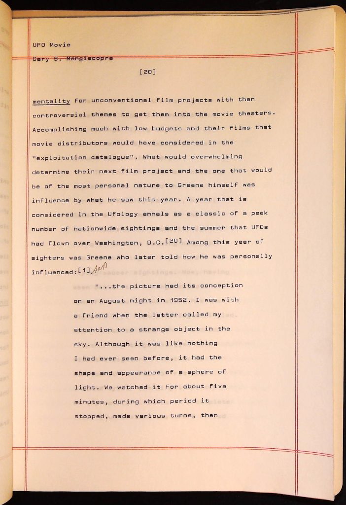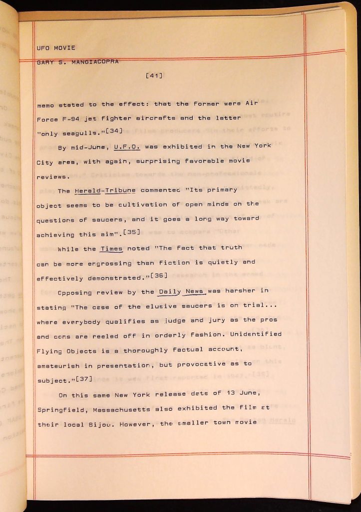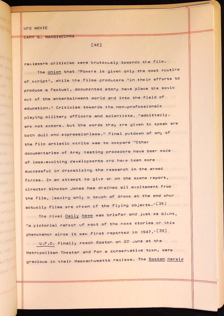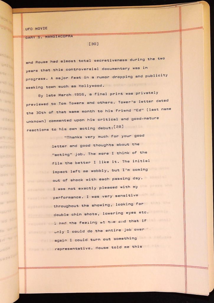 UFOs B4F1I3 Box 4 Folder 1. UFO Interview and Documentary Transcripts Item 3. UFO The True Story of Flying Saucers