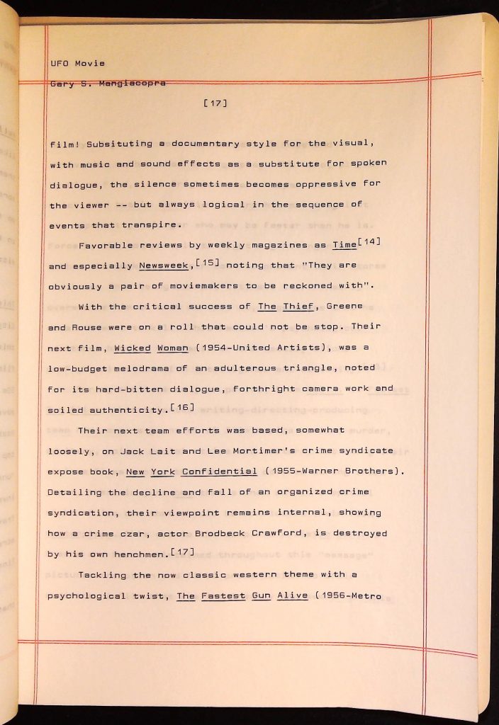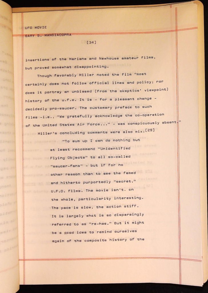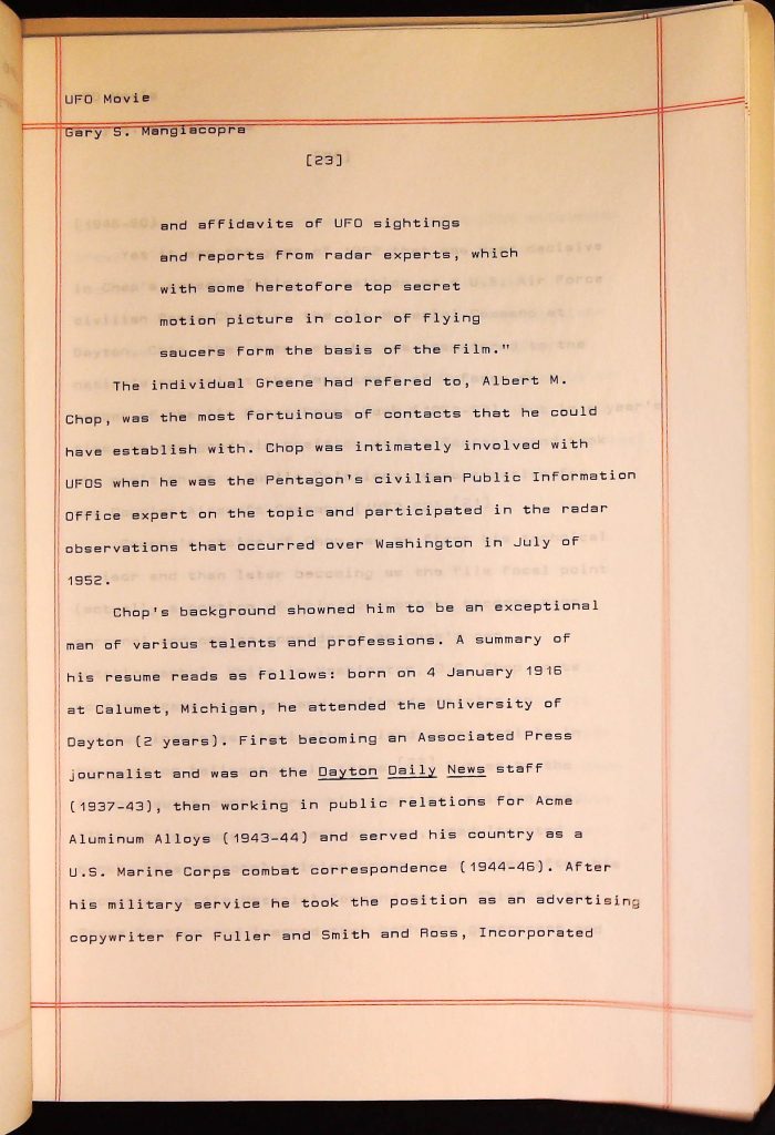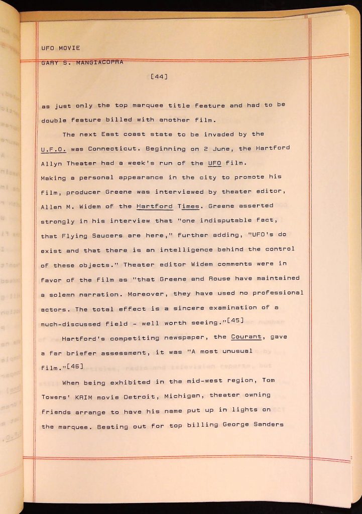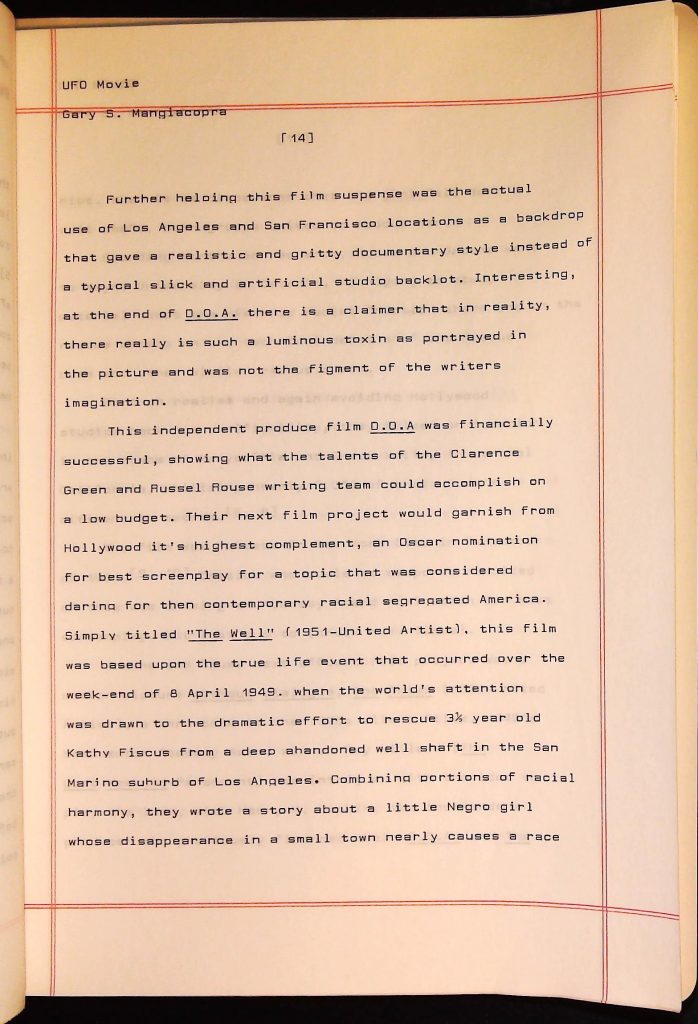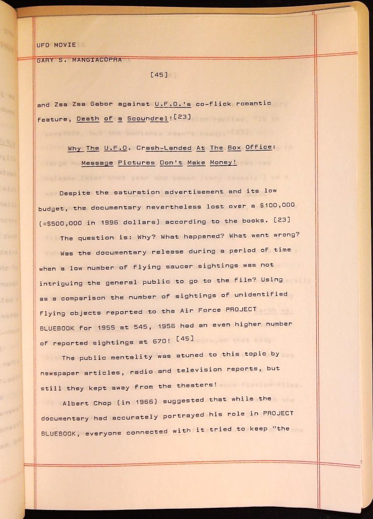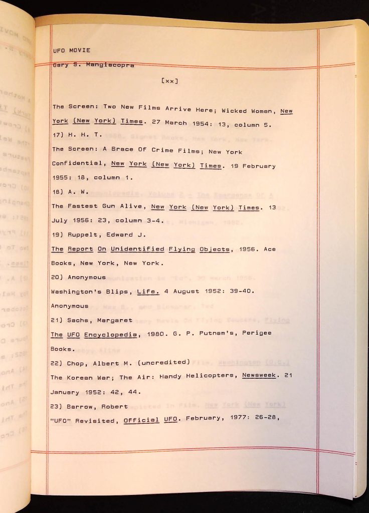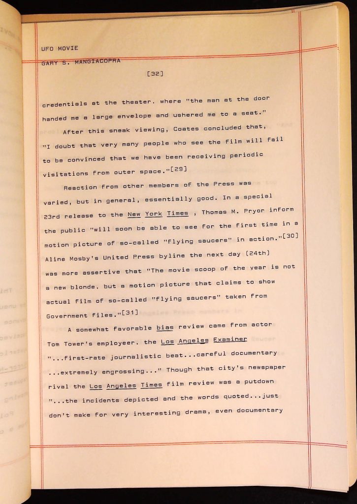 UFOs B4F1I3 Box 4 Folder 1. UFO Interview and Documentary Transcripts Item 3. UFO The True Story of Flying Saucers