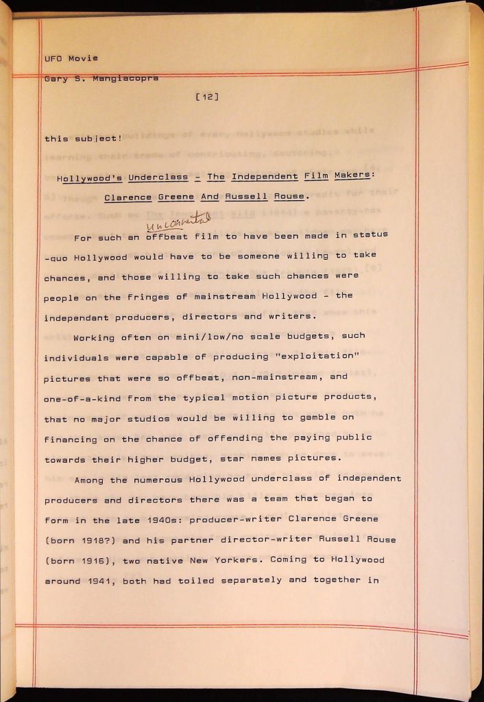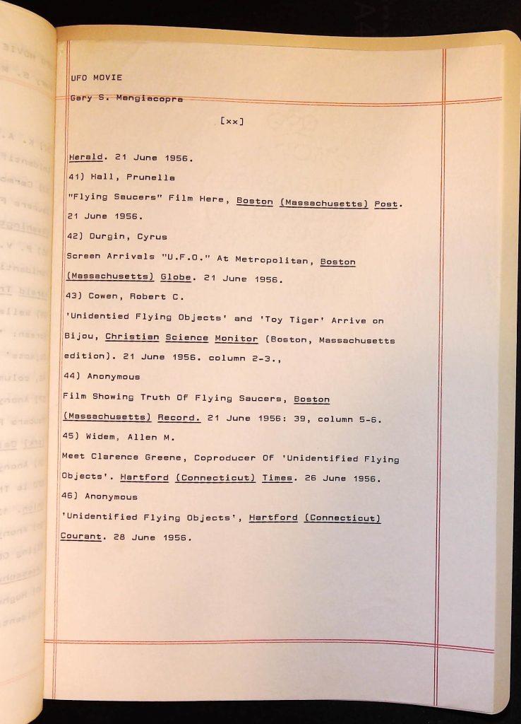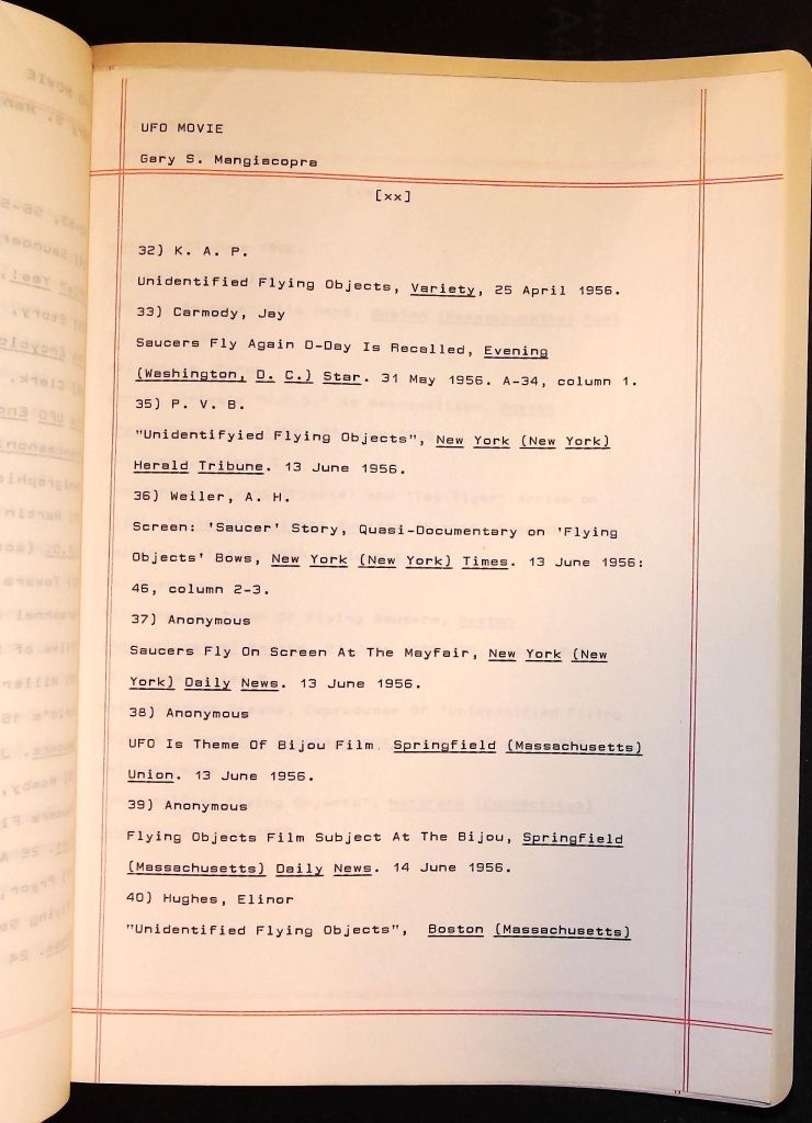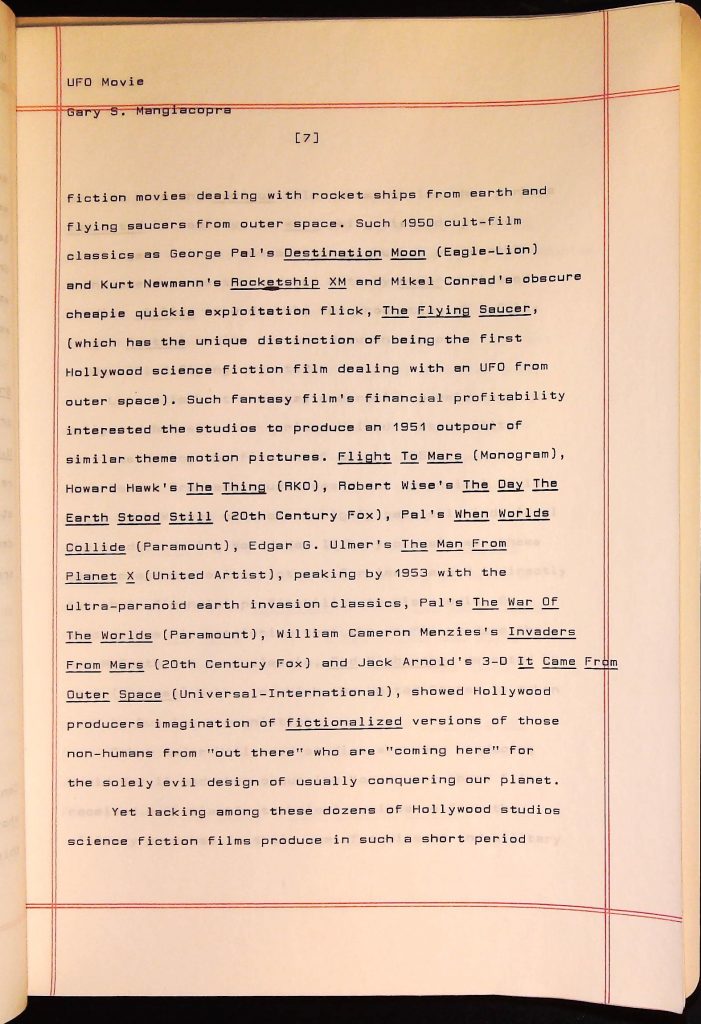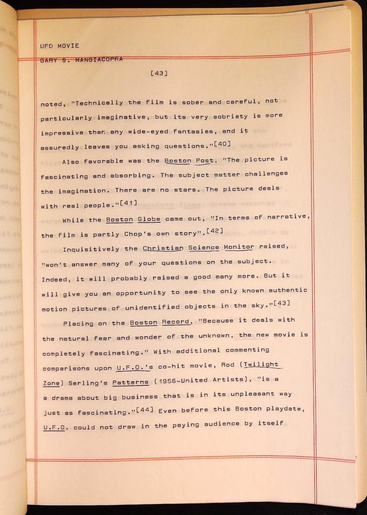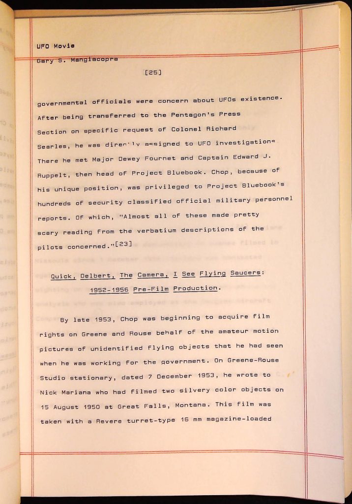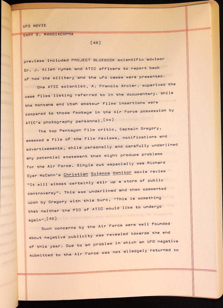 UFOs B4F1I3 Box 4 Folder 1. UFO Interview and Documentary Transcripts Item 3. UFO The True Story of Flying Saucers