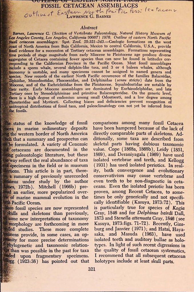 Cryptozoology B4F26I2 Box 4 Folder 26. Whales Zeuglodon Item 2. Outlie of Eastern North Pacific Fossil Cetacean Assemblages
