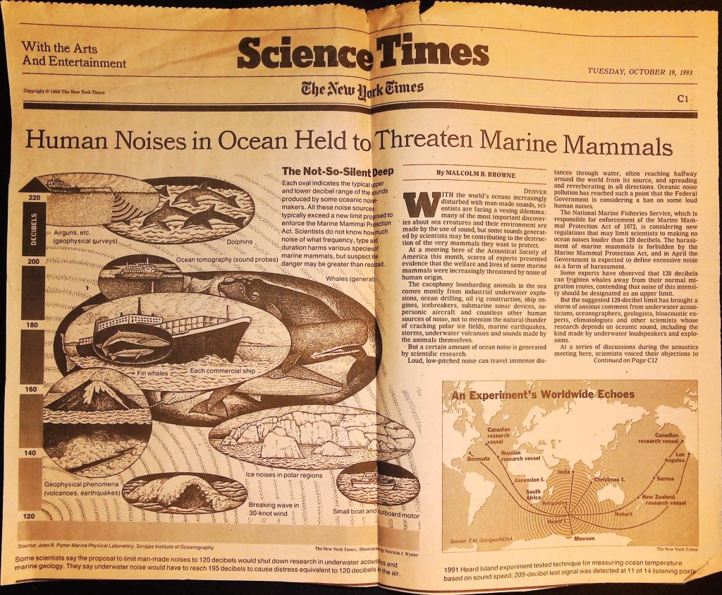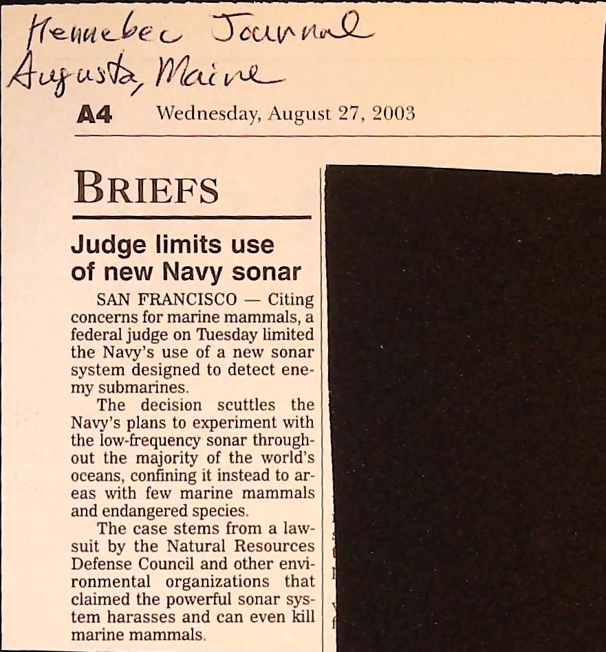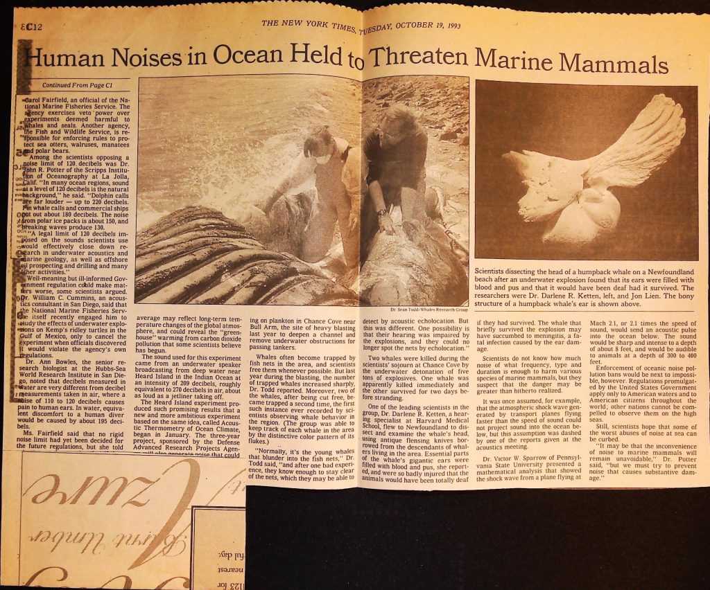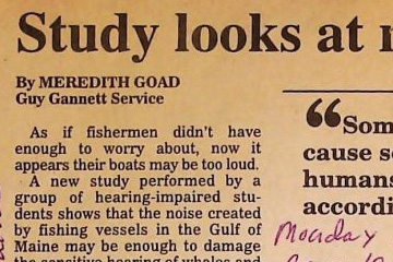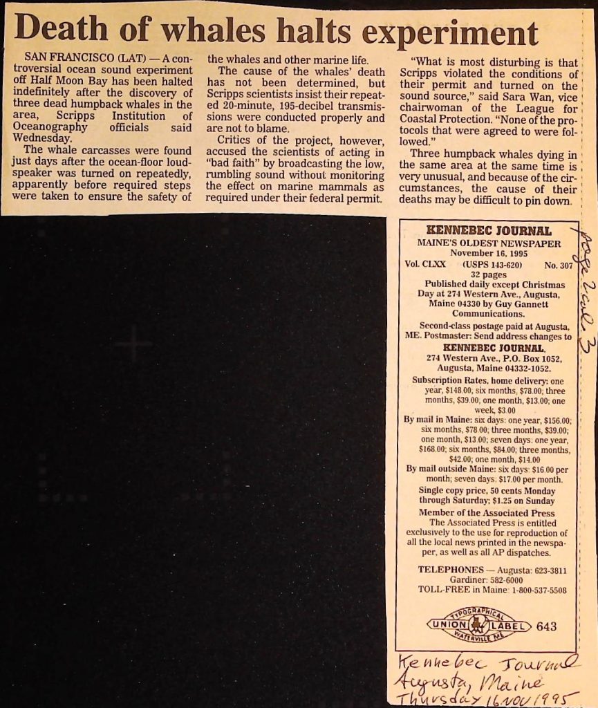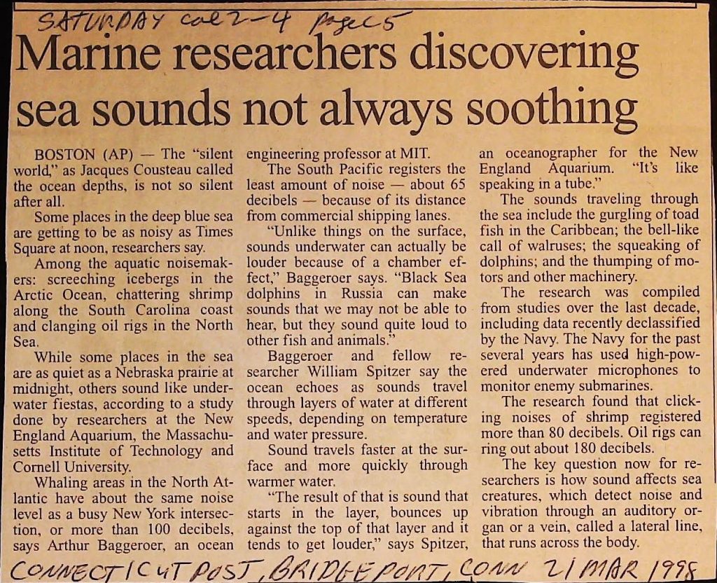 Uncategorized B4F45I1 Box 4 Folder 45. Marine Mammals Effects of Experimental Underwater Sound Item 1. Newspaper Clippings