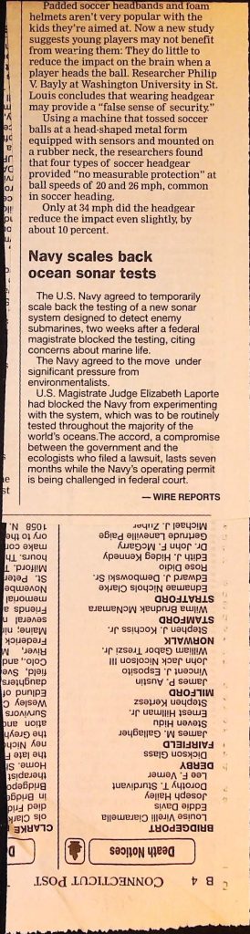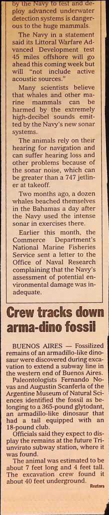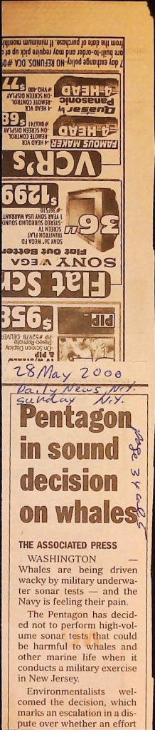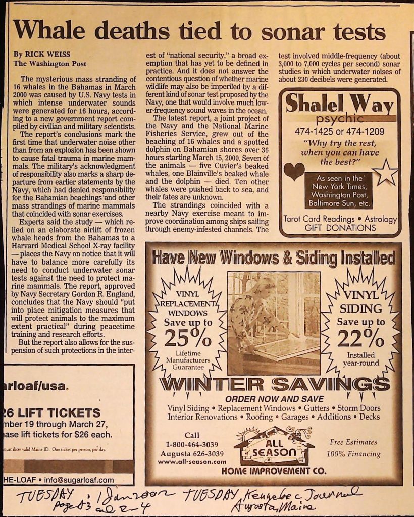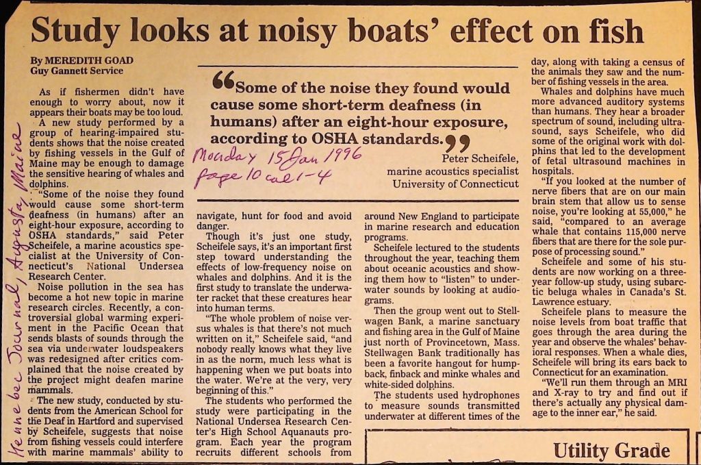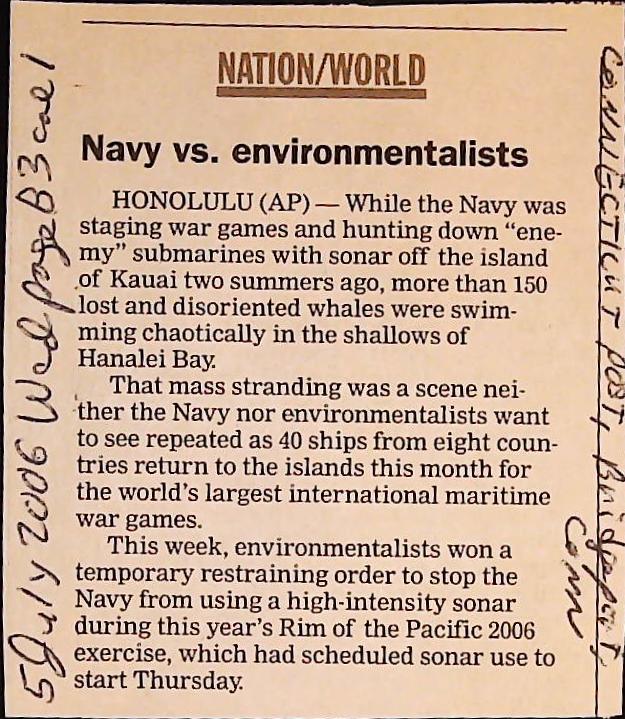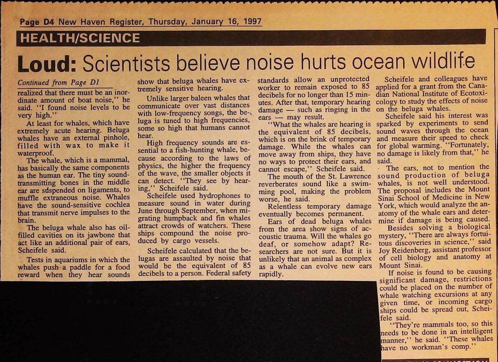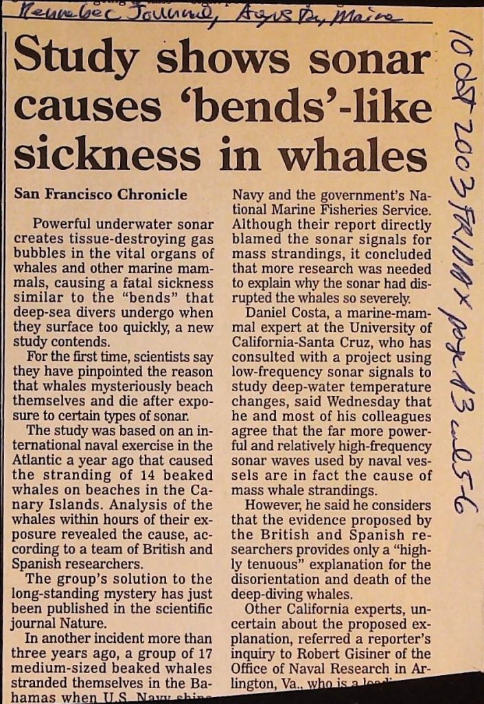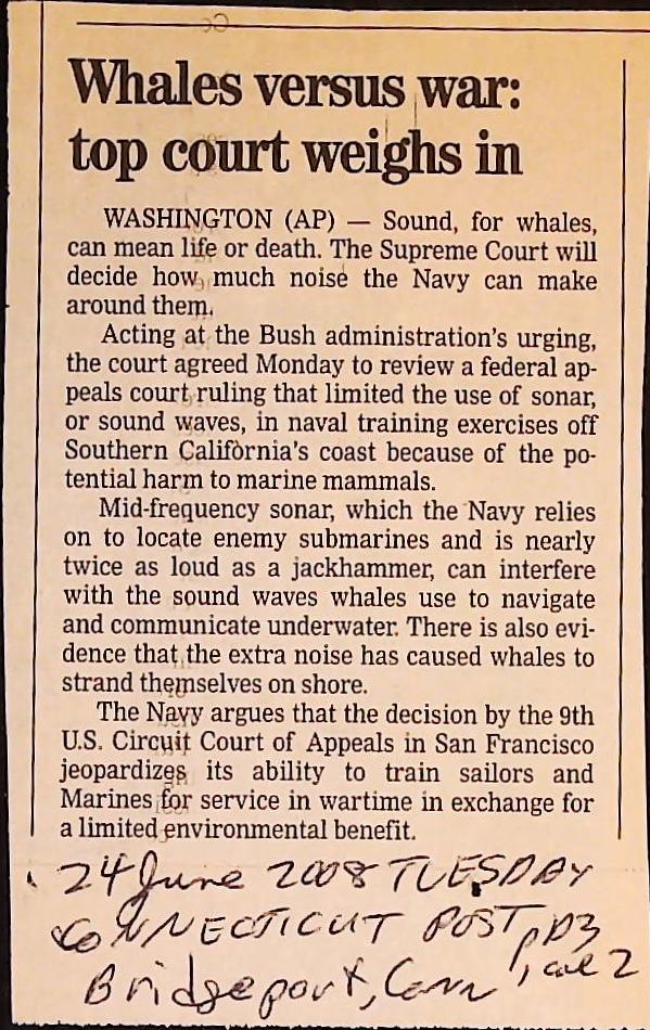 Uncategorized B4F45I1 Box 4 Folder 45. Marine Mammals Effects of Experimental Underwater Sound Item 1. Newspaper Clippings