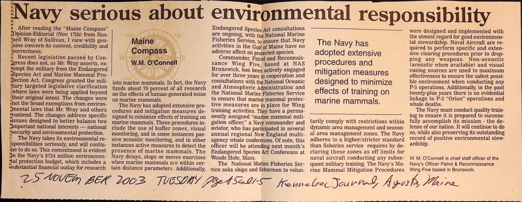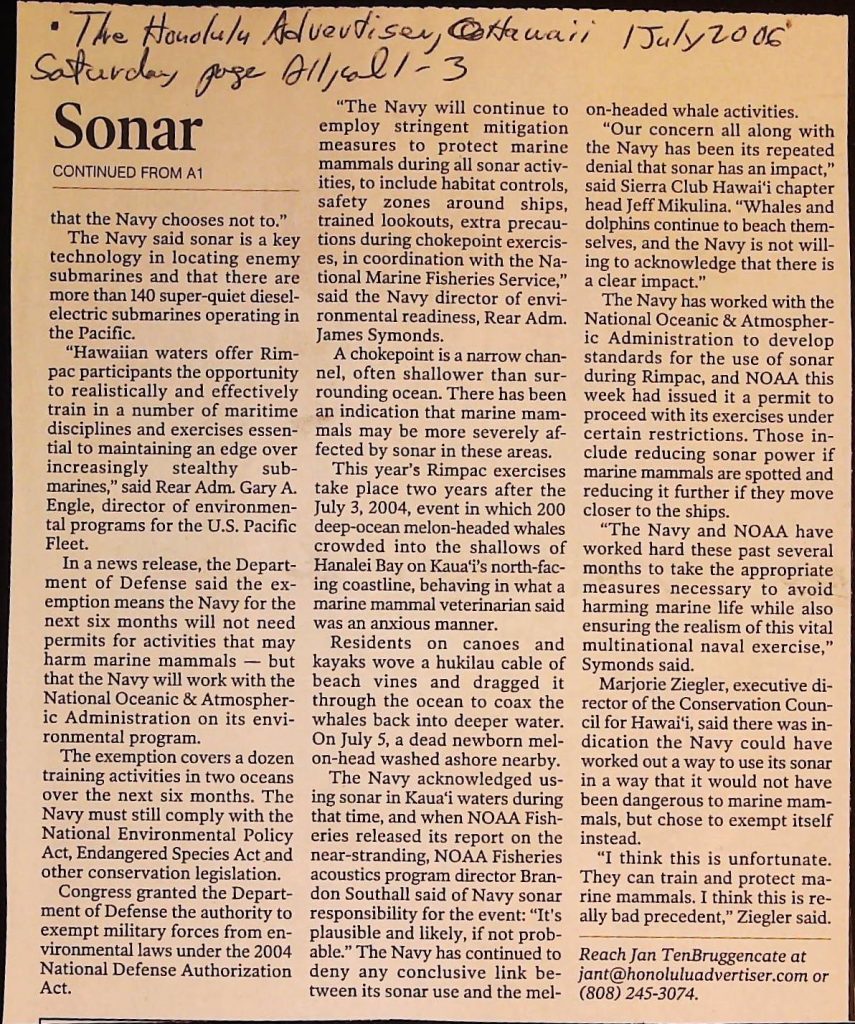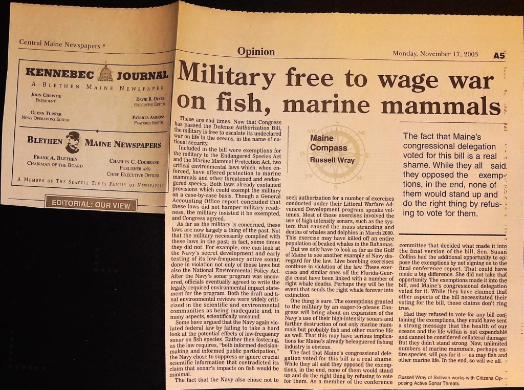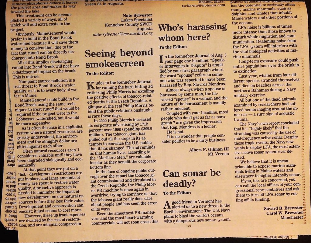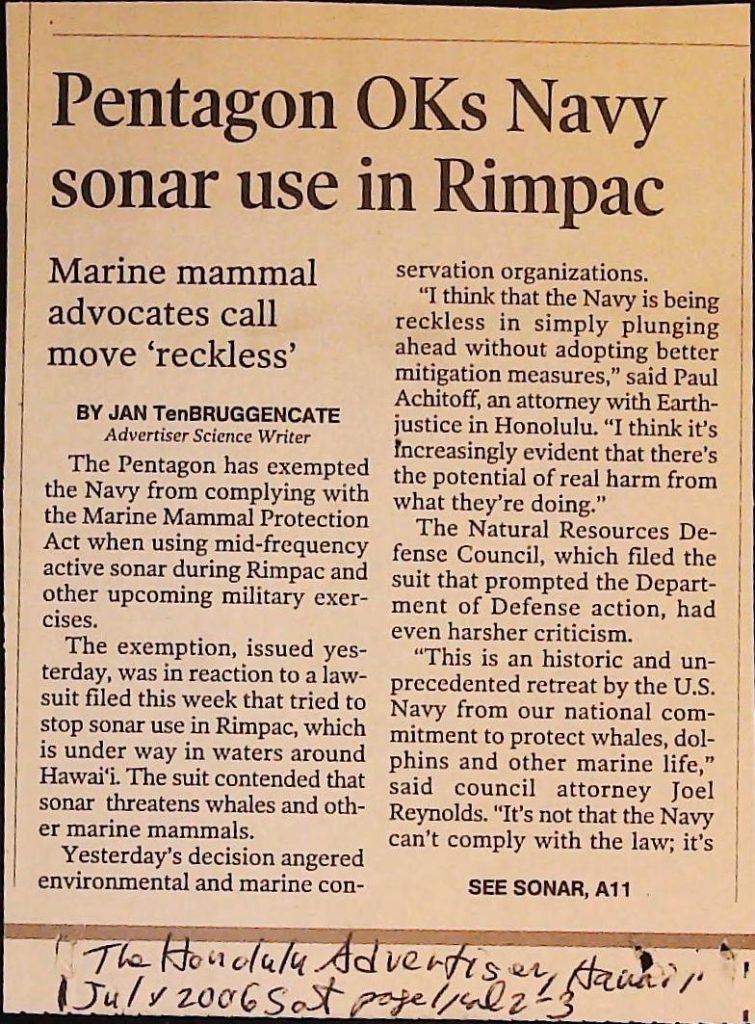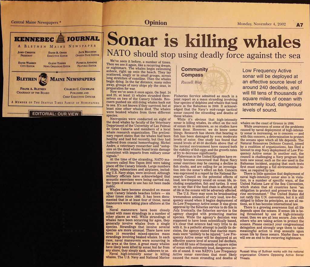 Uncategorized B4F45I1 Box 4 Folder 45. Marine Mammals Effects of Experimental Underwater Sound Item 1. Newspaper Clippings
