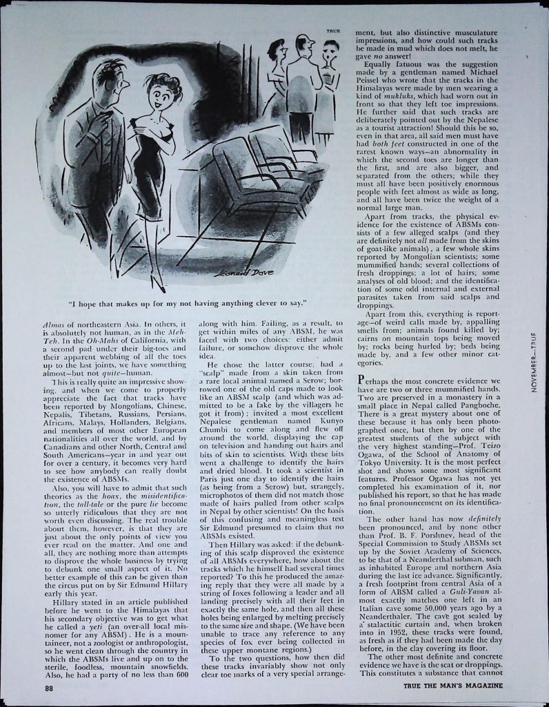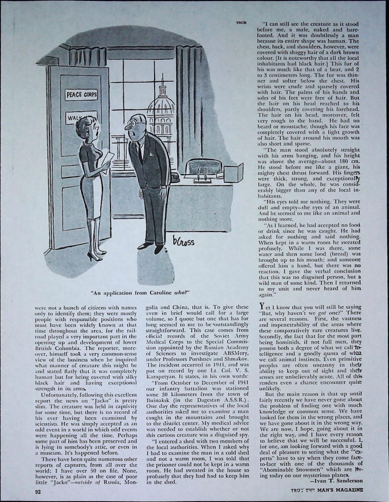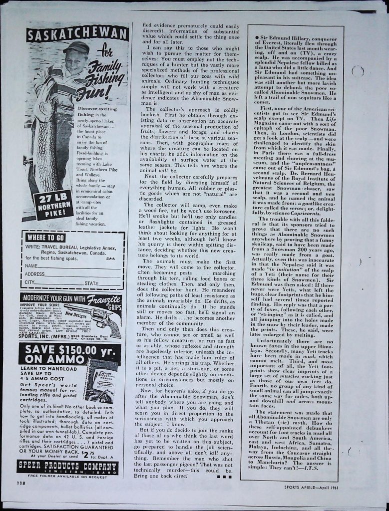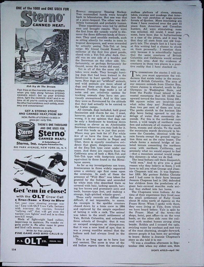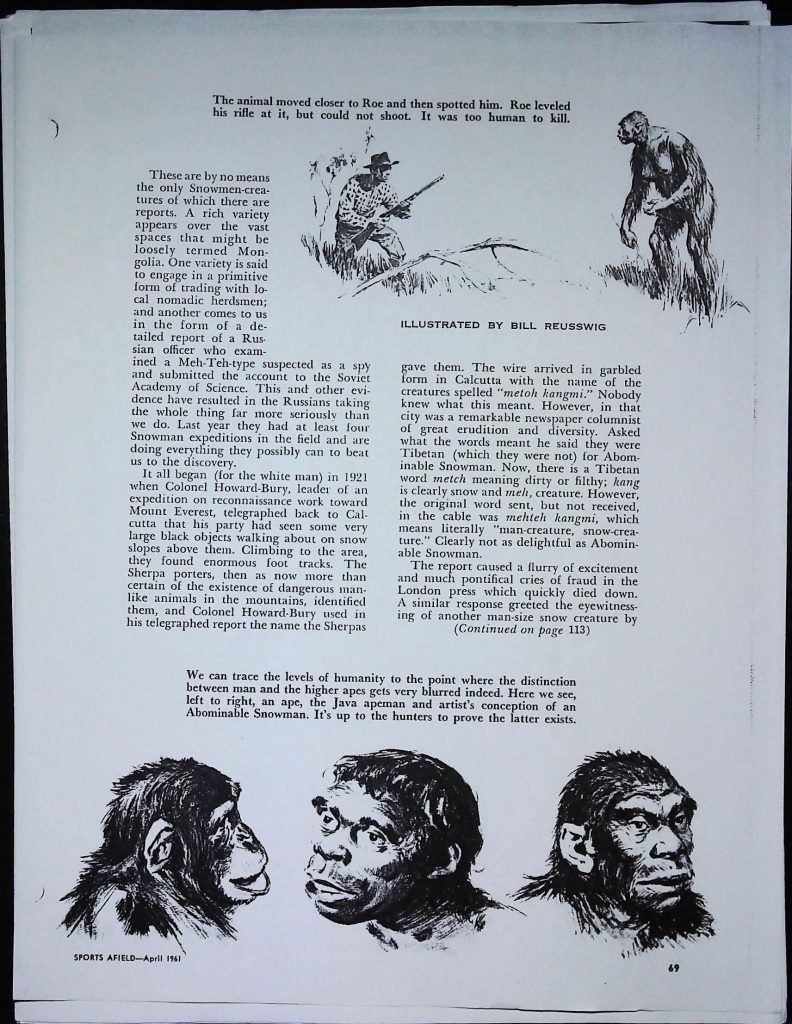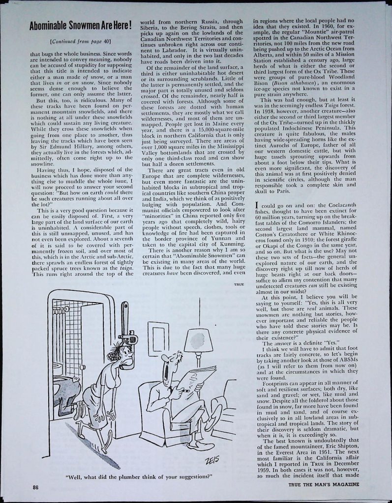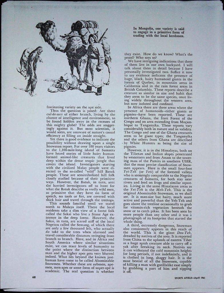 Cryptozoology - Lost Treasure - Wildmen B5F29I1 Box 5 Folder 29. Abominable Snowman Item 1. Magazine Articles
