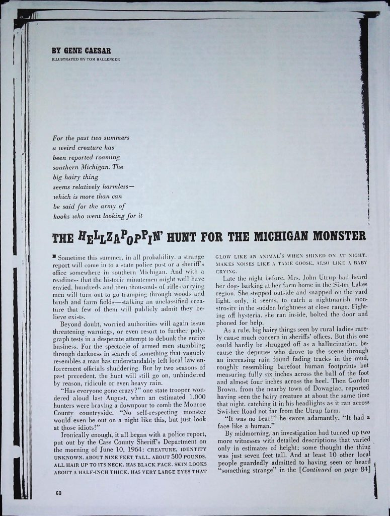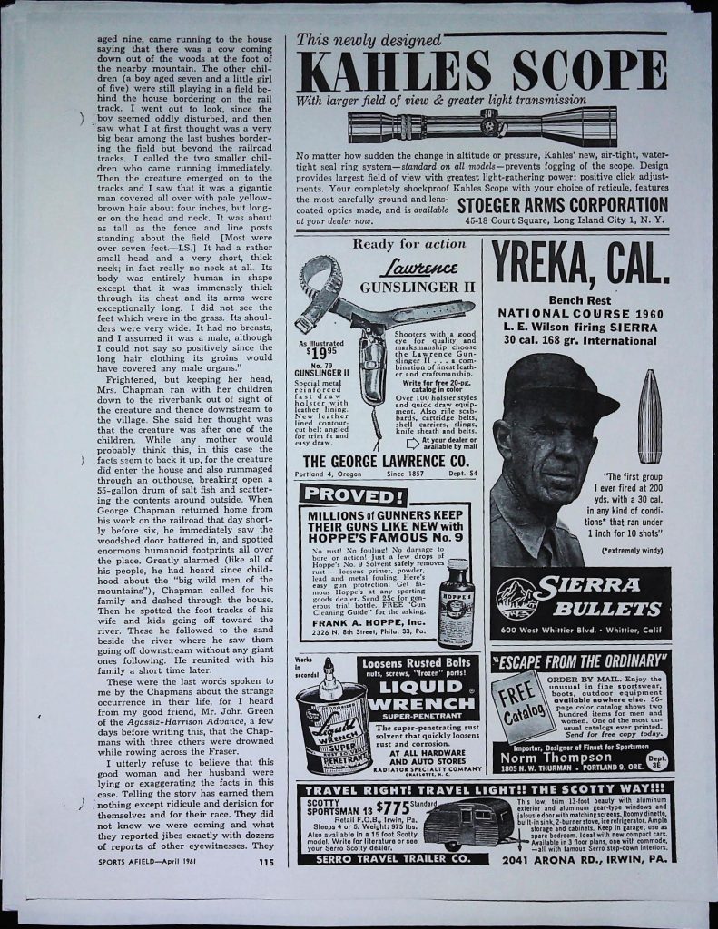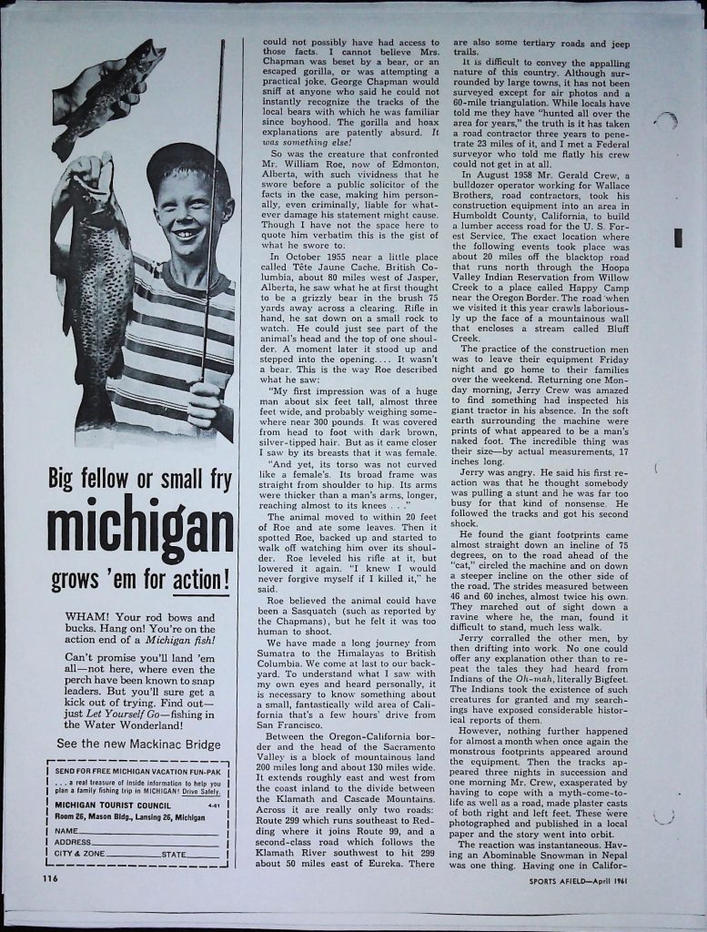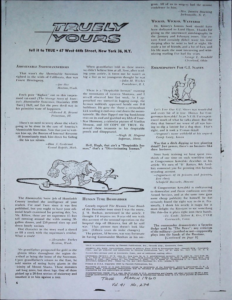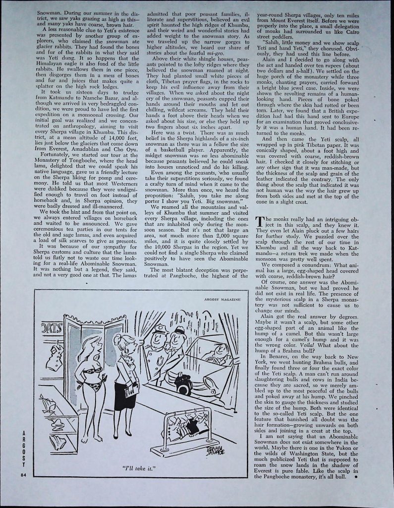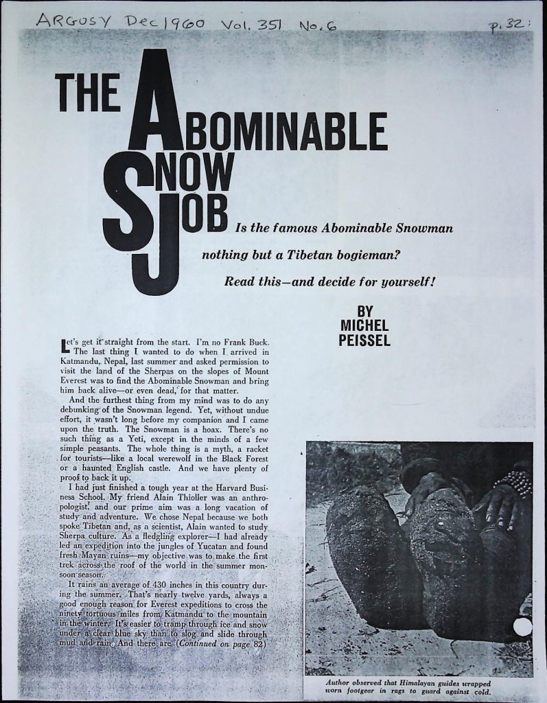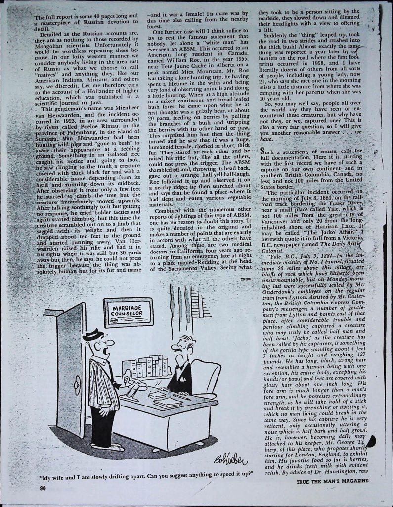 Cryptozoology - Lost Treasure - Wildmen B5F29I1 Box 5 Folder 29. Abominable Snowman Item 1. Magazine Articles