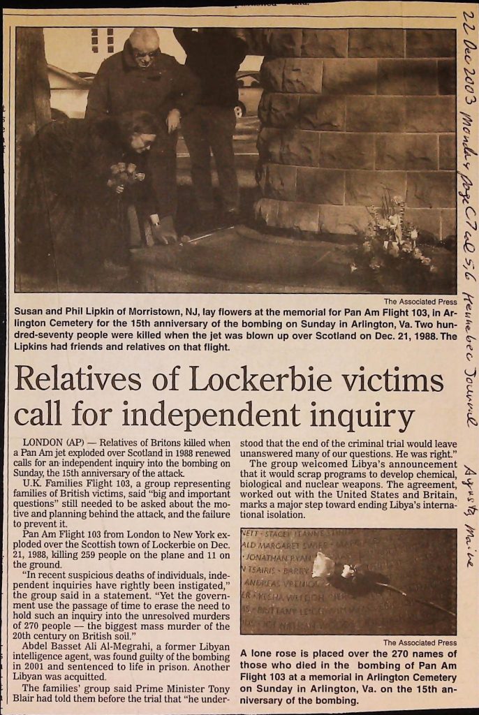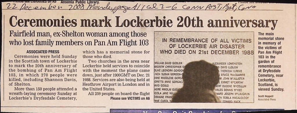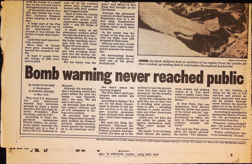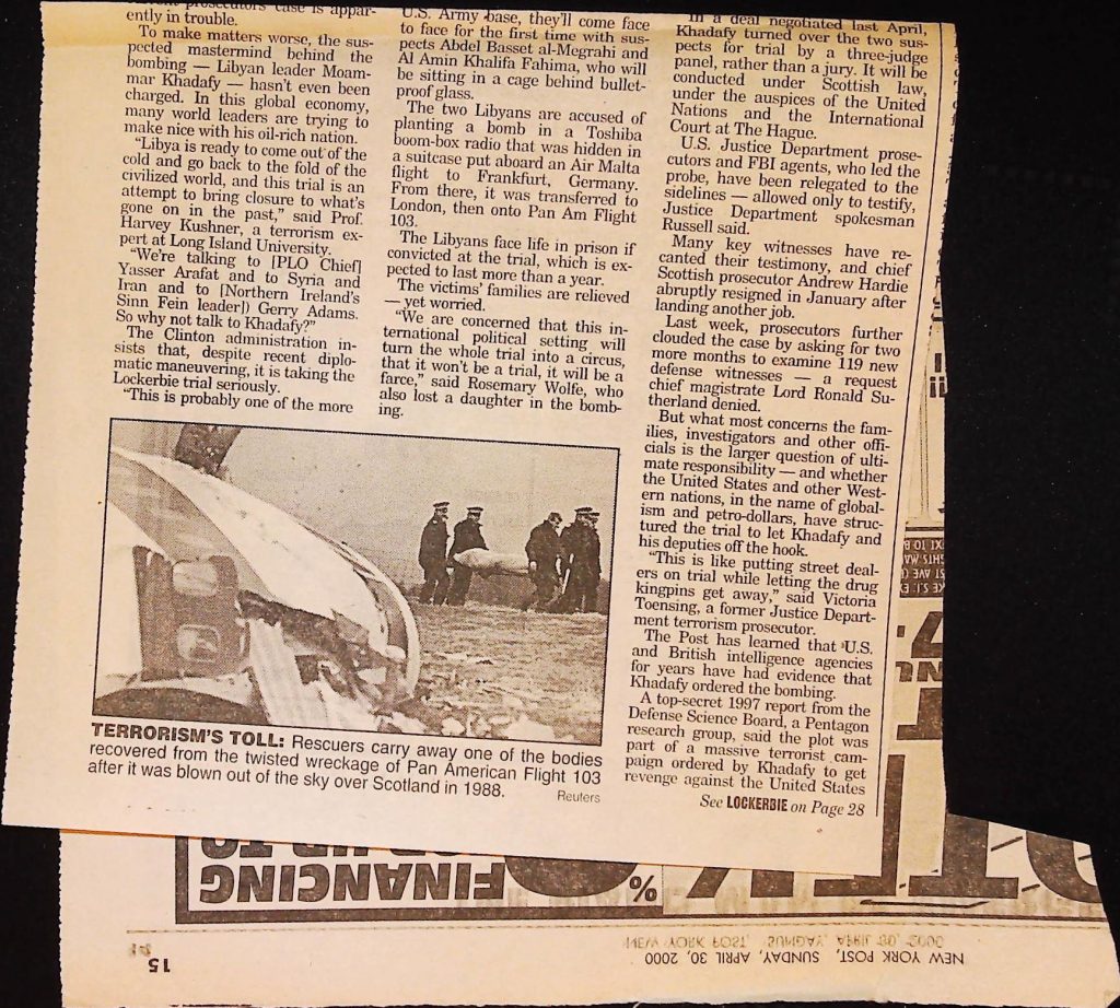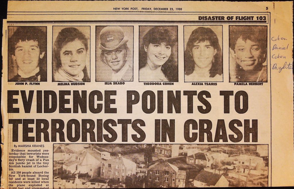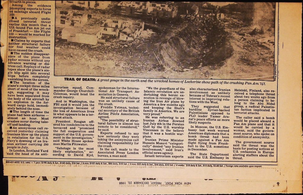 Crime - Murders B6F112I1 Box 6 Folder 112: Lockerbie Jet Disaster – 1986 (Dan Cohen – Fortean) Item 1. Newspaper Clippings