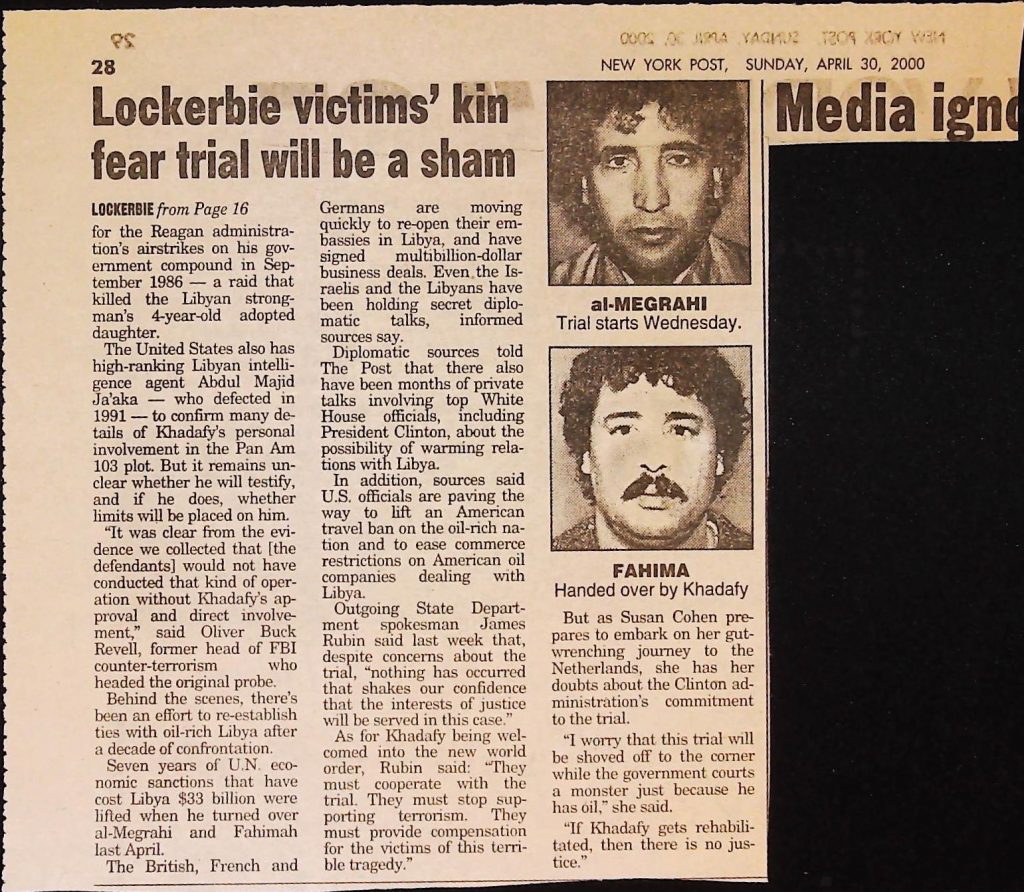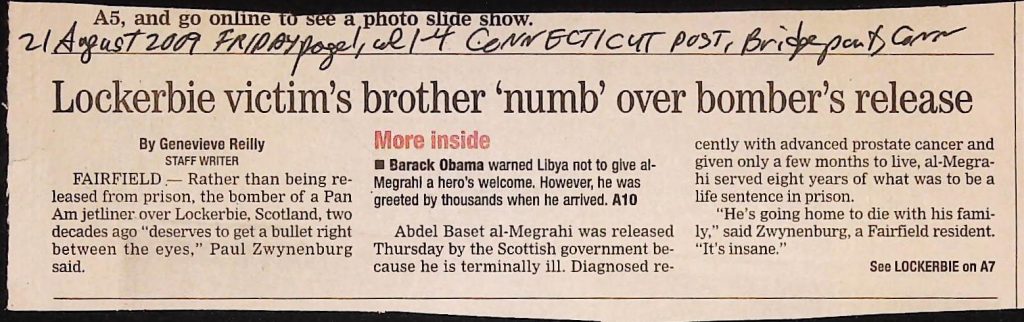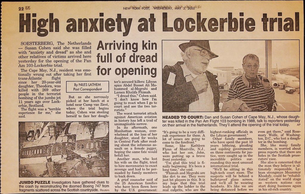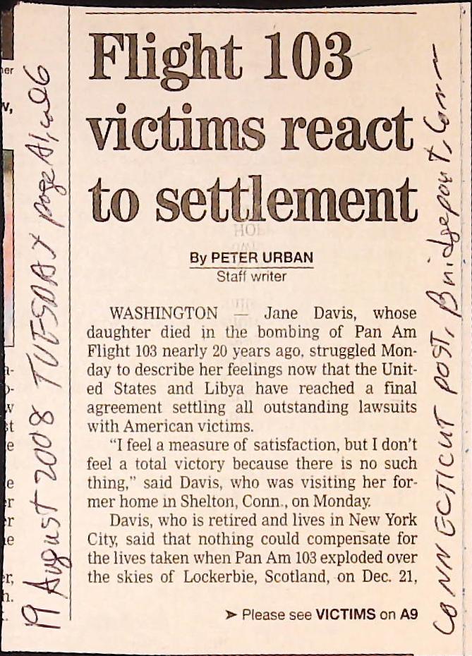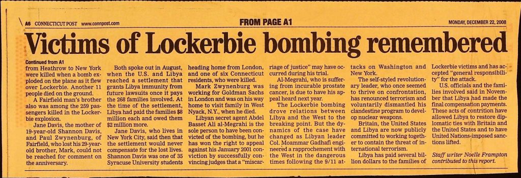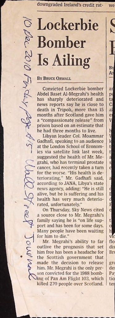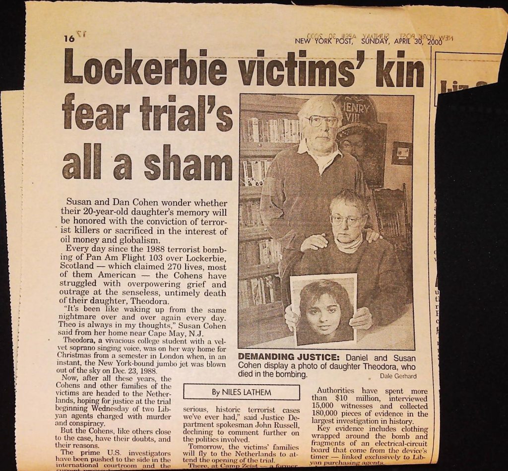 Crime - Murders B6F112I1 Box 6 Folder 112: Lockerbie Jet Disaster – 1986 (Dan Cohen – Fortean) Item 1. Newspaper Clippings