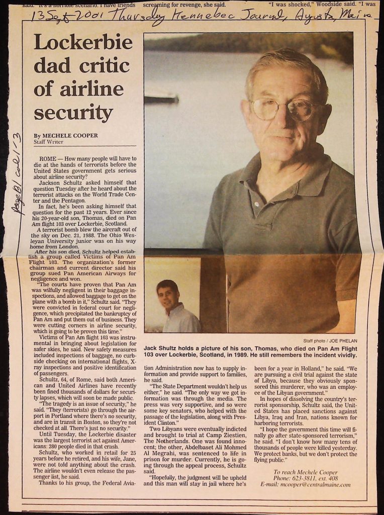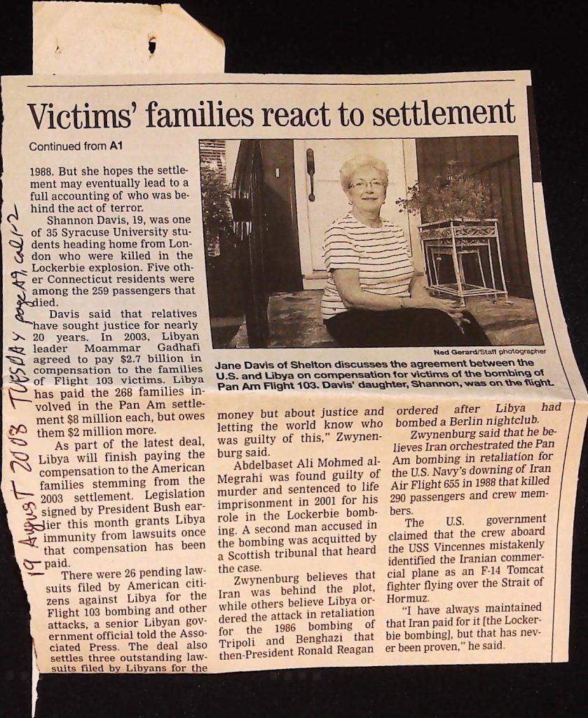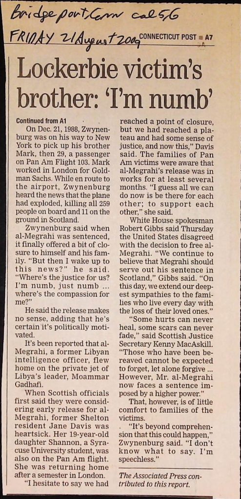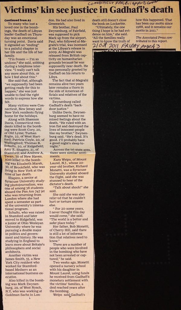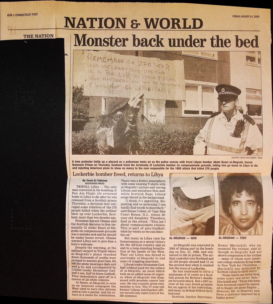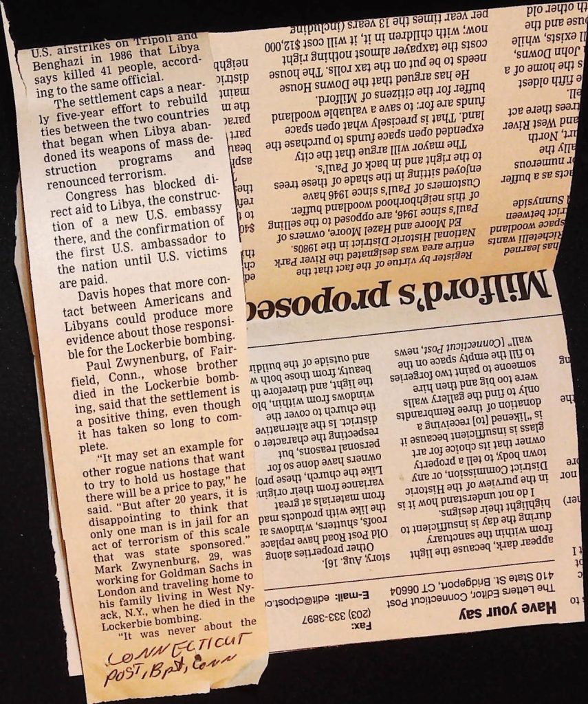 Crime - Murders B6F112I1 Box 6 Folder 112: Lockerbie Jet Disaster – 1986 (Dan Cohen – Fortean) Item 1. Newspaper Clippings