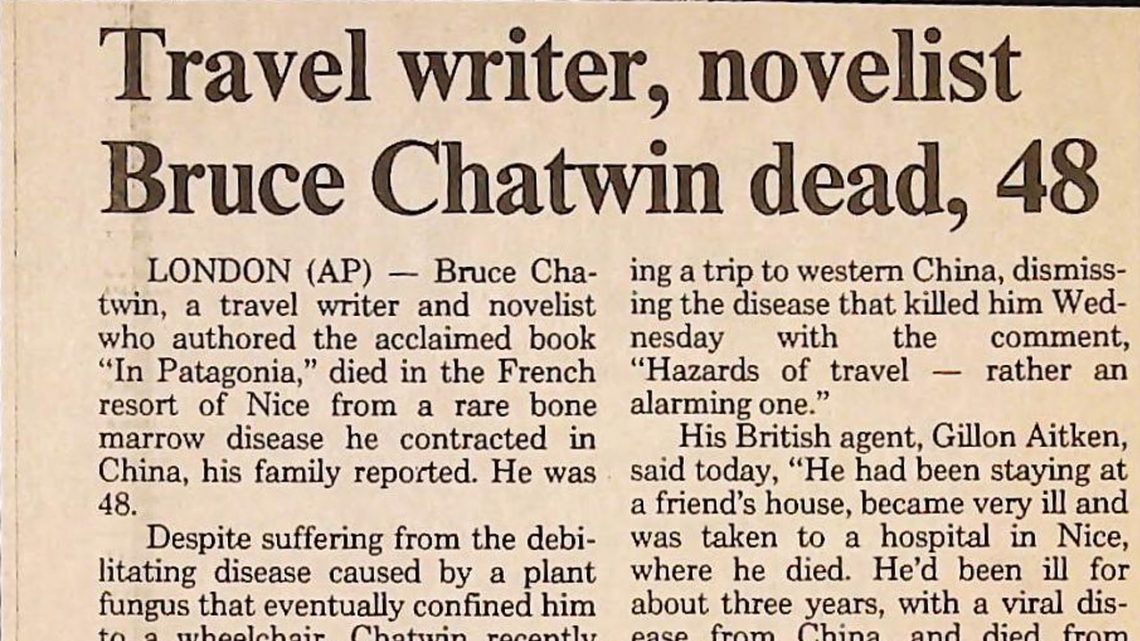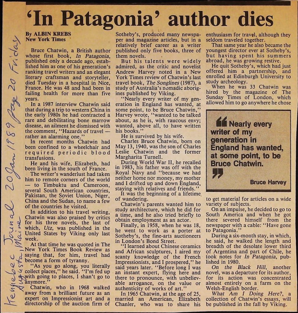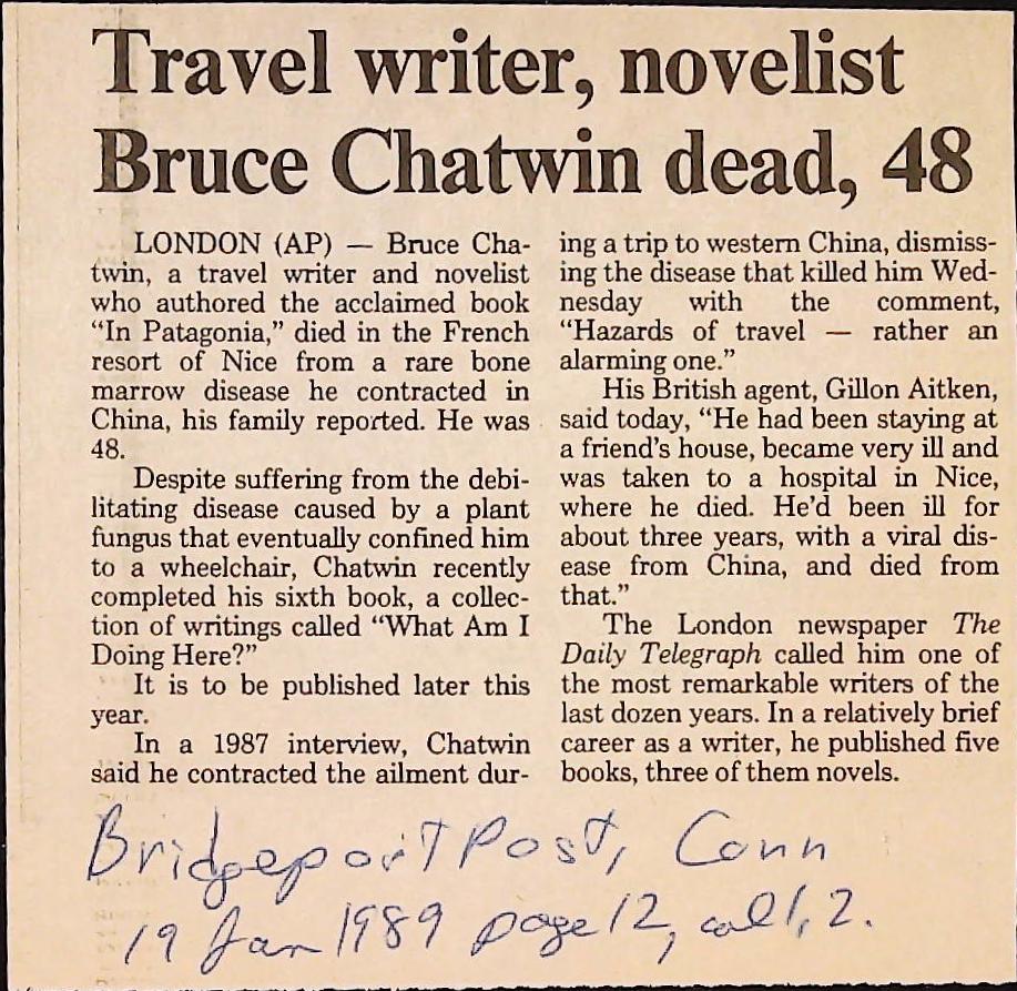 Cryptozoology B6F23I1 Box 6 Folder 23: Chatwin, Bruce – Patagonia Lake Cryptid Item 1. Newspaper Clippings