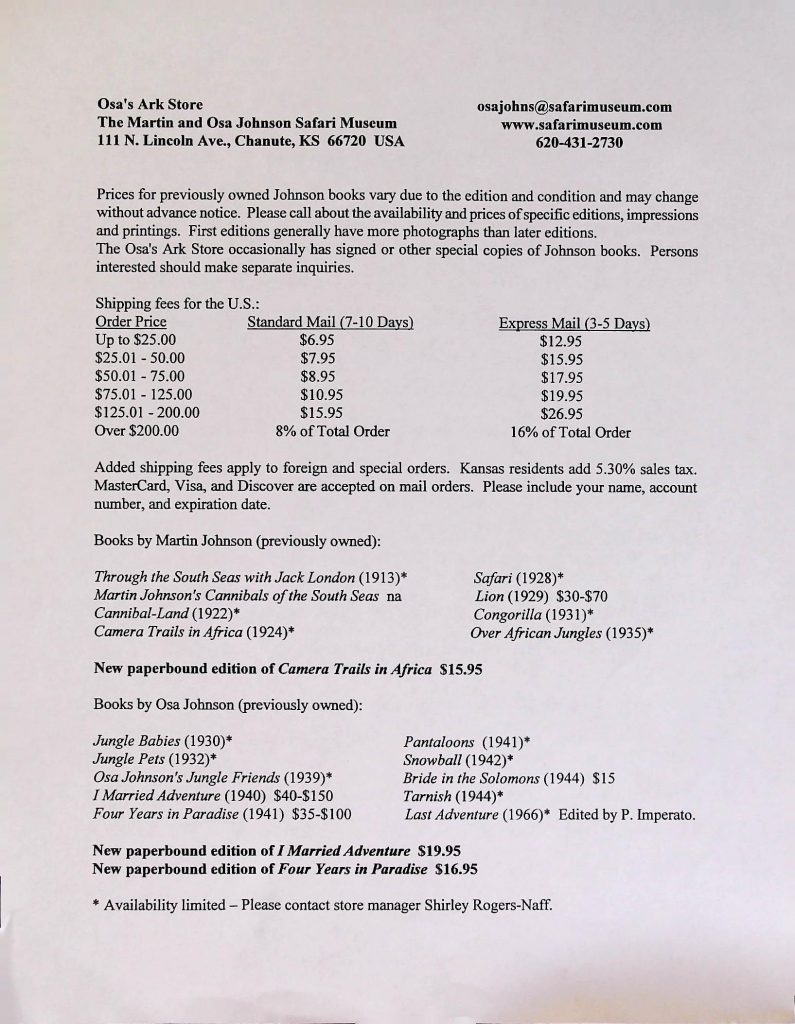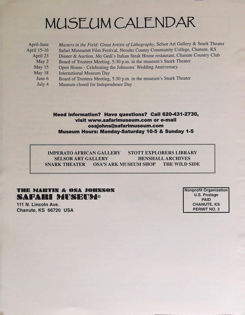 Uncategorized B7F17I4 Box 7 Folder 17. Johnson, Martina and Osa Safari Films Item 4. Pamphlets and Posters