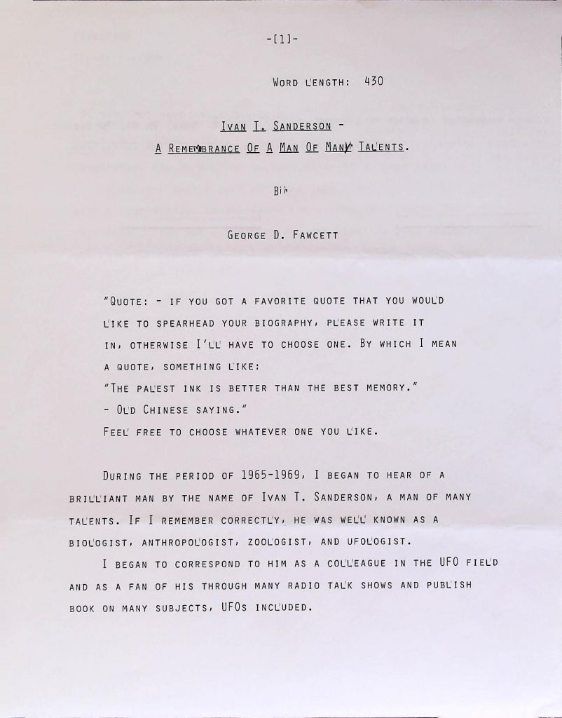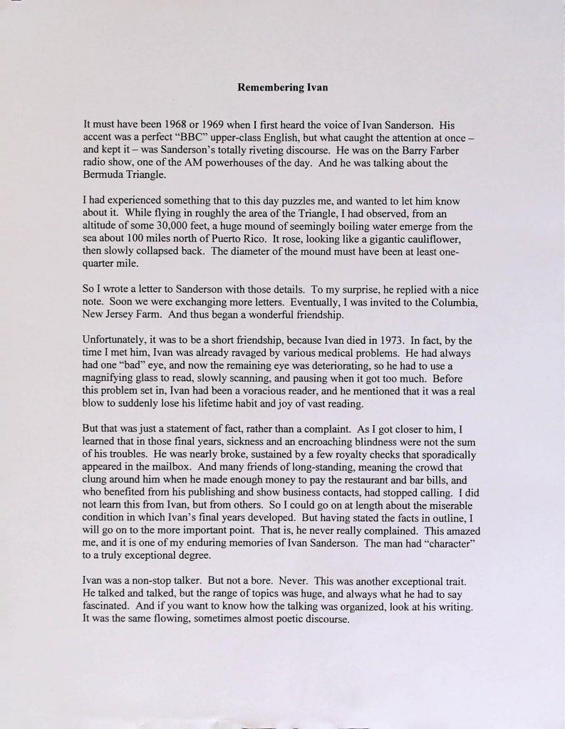 Uncategorized B7F29I32 Box 7 Folder 29. Sanderson, Ivan T Item 32. Recollections of Ivan T. Sanderson