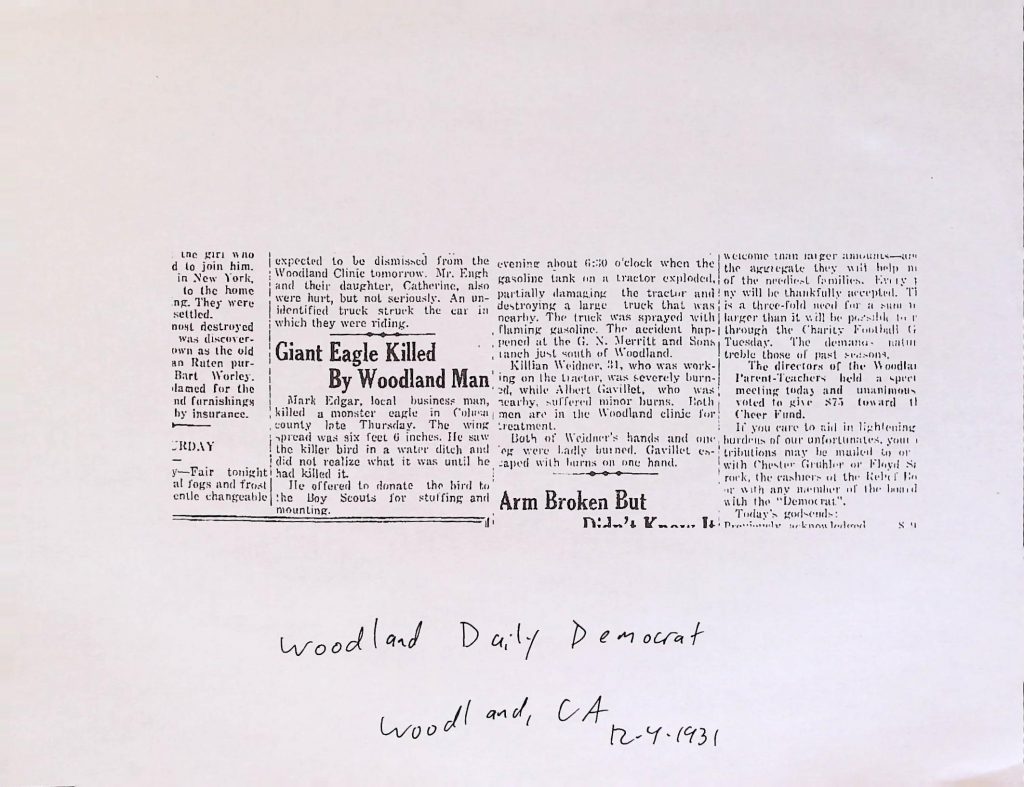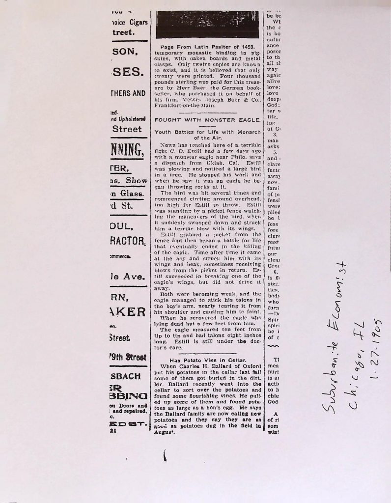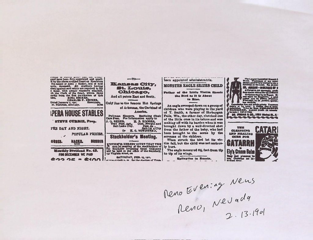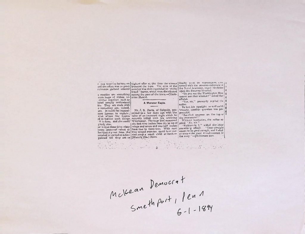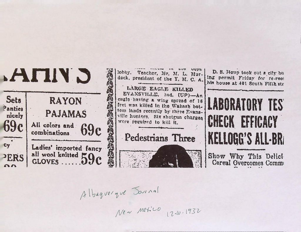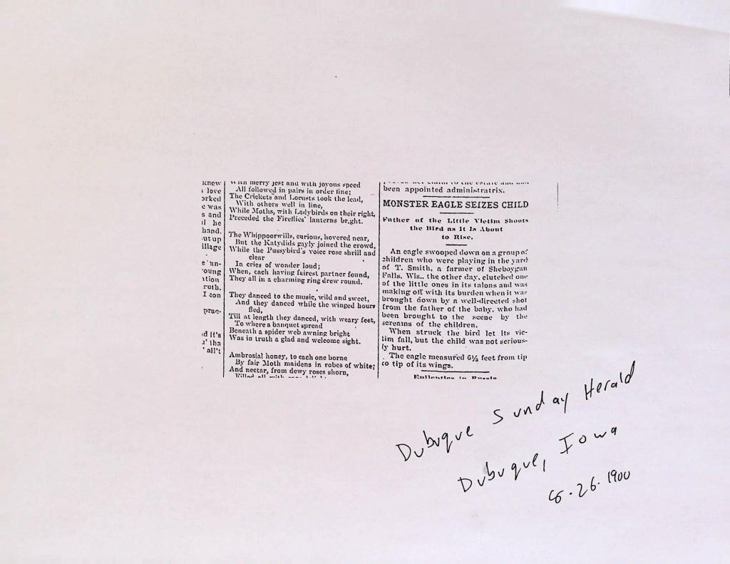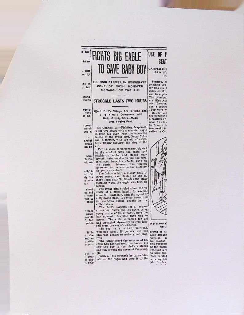 Clairvoyance - Cryptobotany - Cryptozoology - Ghost Stories - UFOs - Wildmen B7F35I1 Box 7 Folder 35. Monster Eagles Item 1. Newspaper Clippings