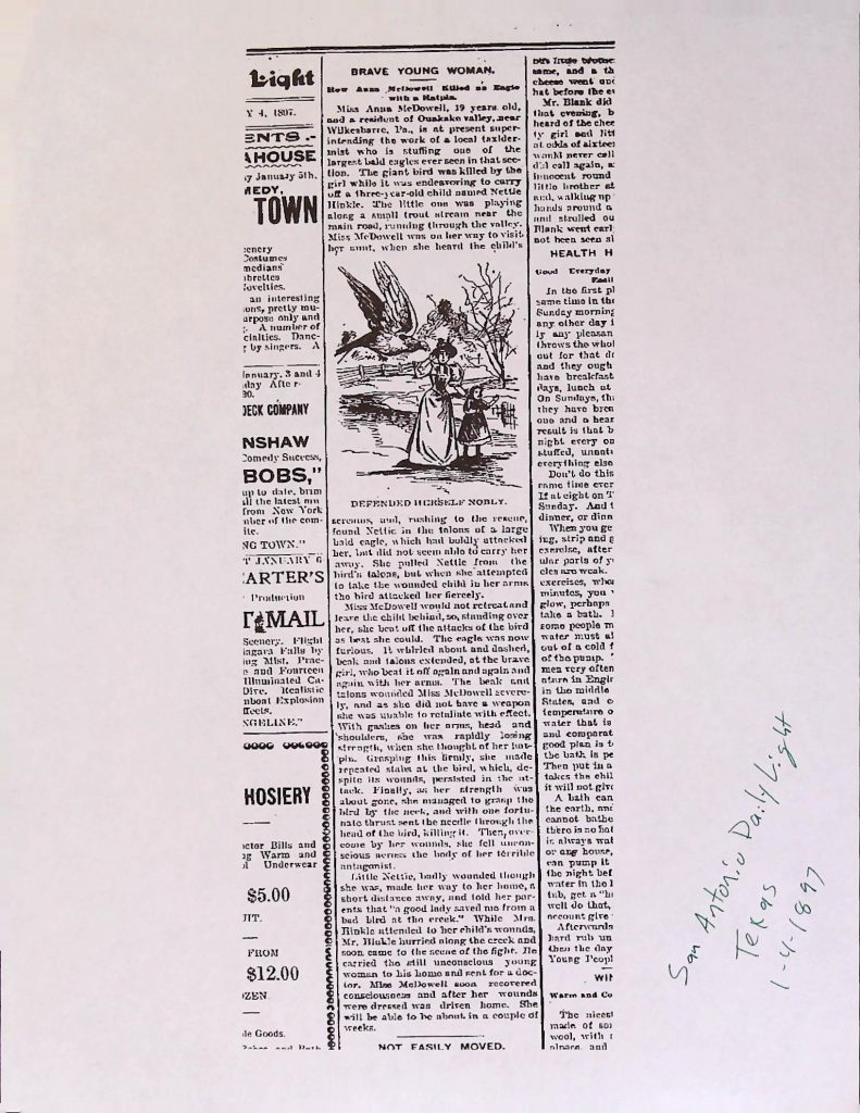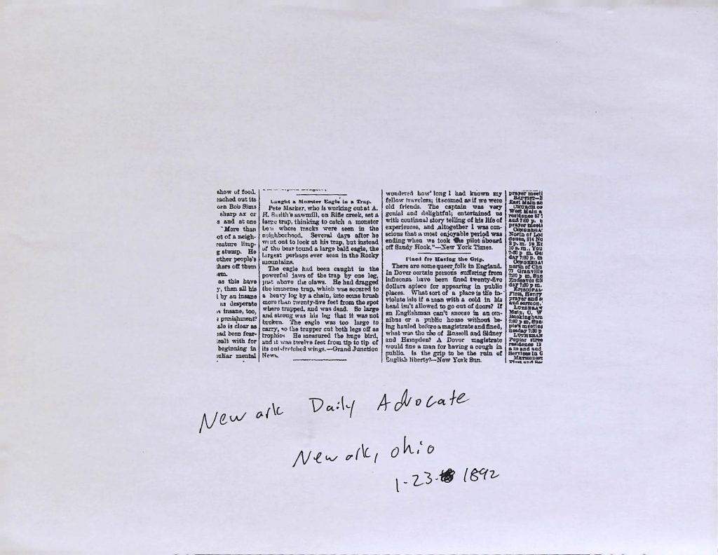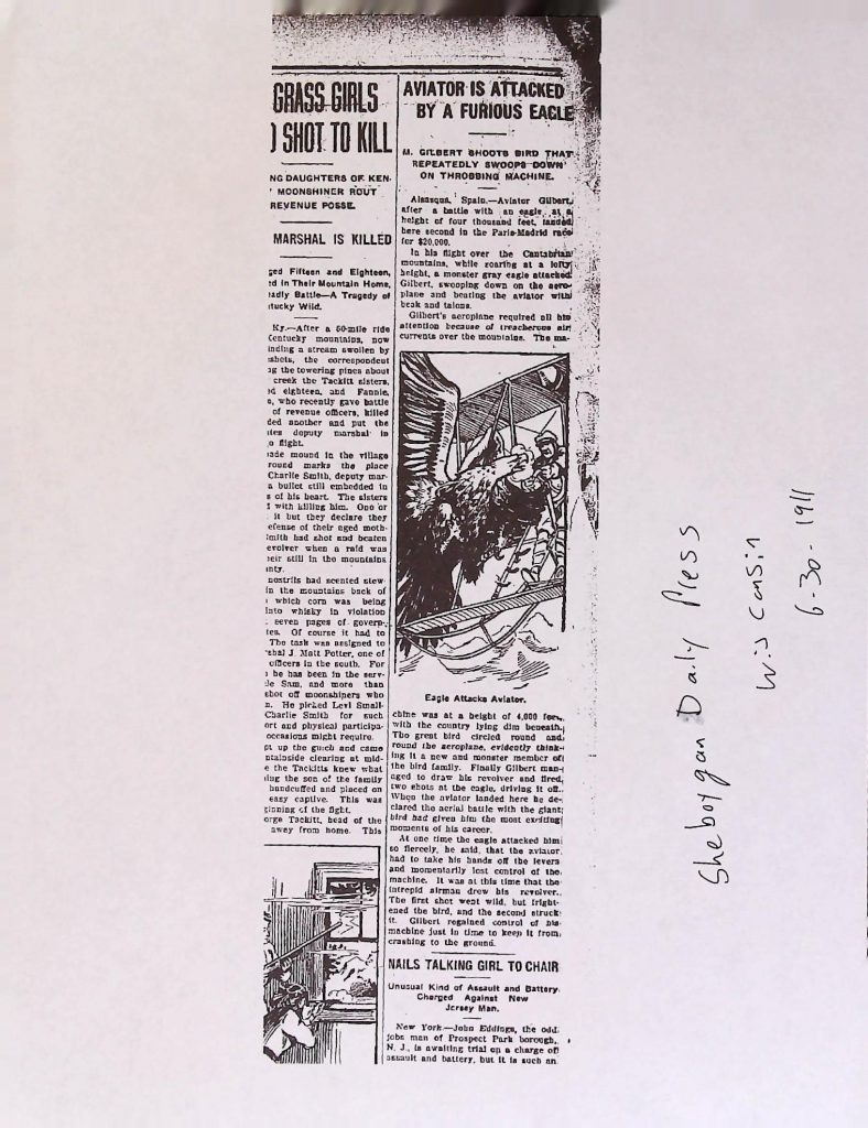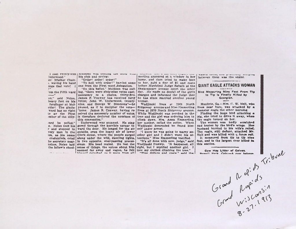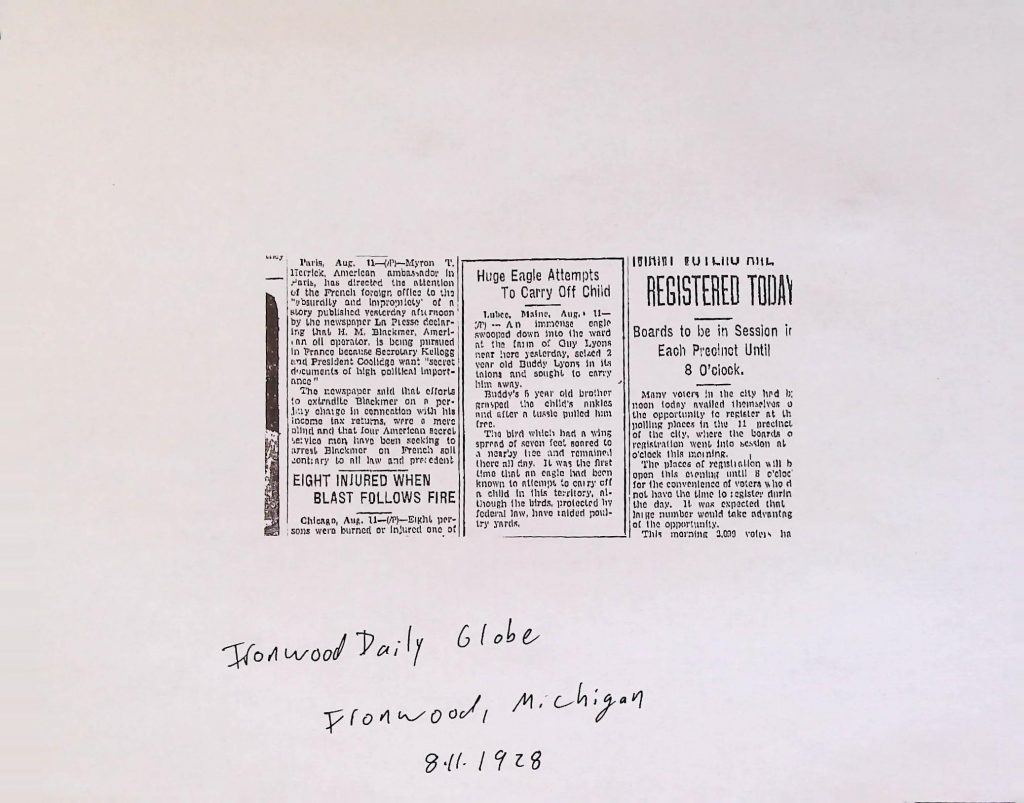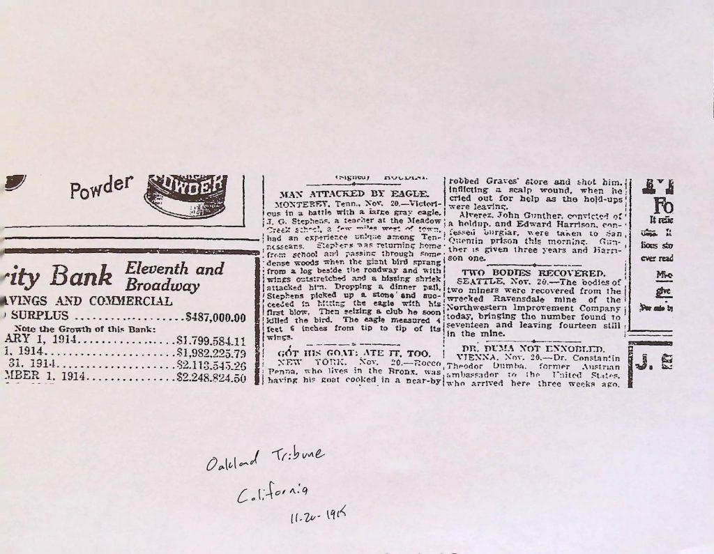 Clairvoyance - Cryptobotany - Cryptozoology - Ghost Stories - UFOs - Wildmen B7F35I1 Box 7 Folder 35. Monster Eagles Item 1. Newspaper Clippings