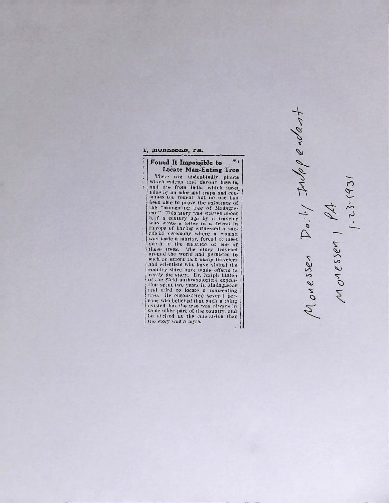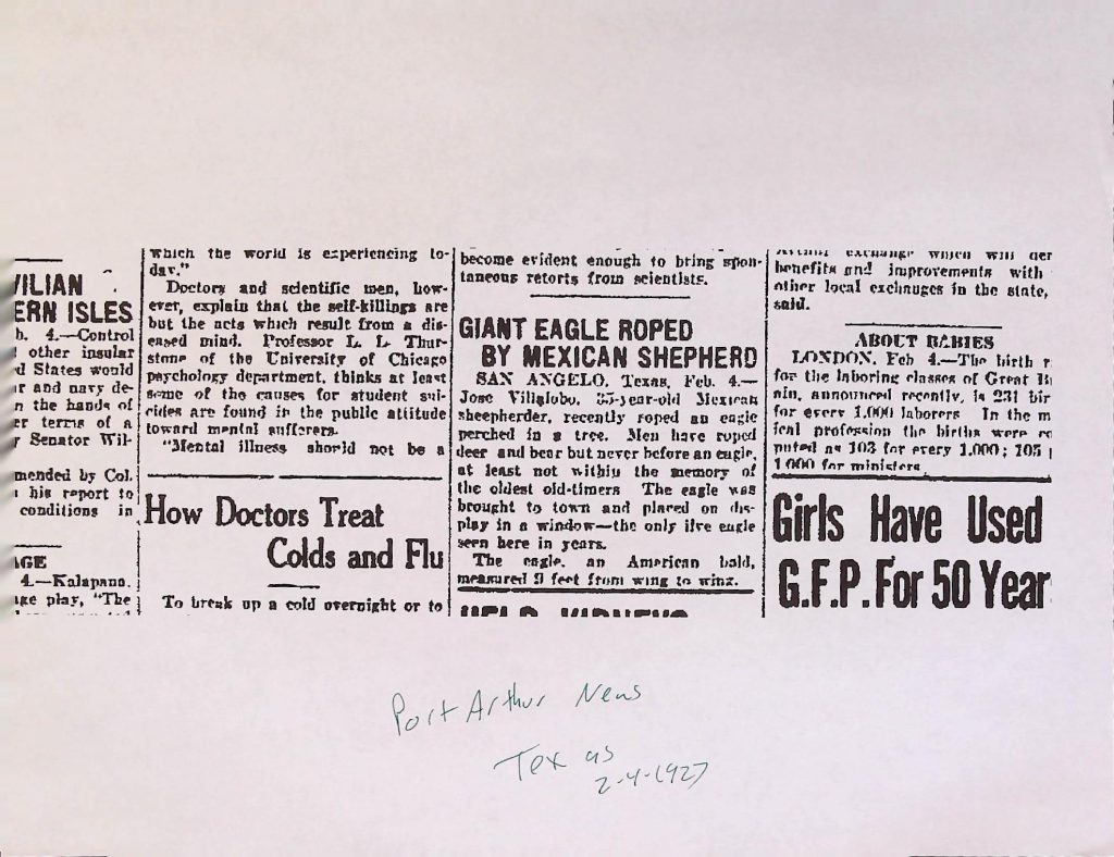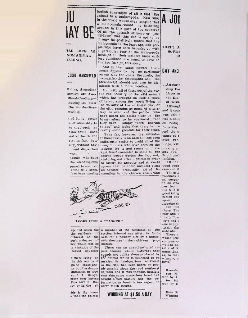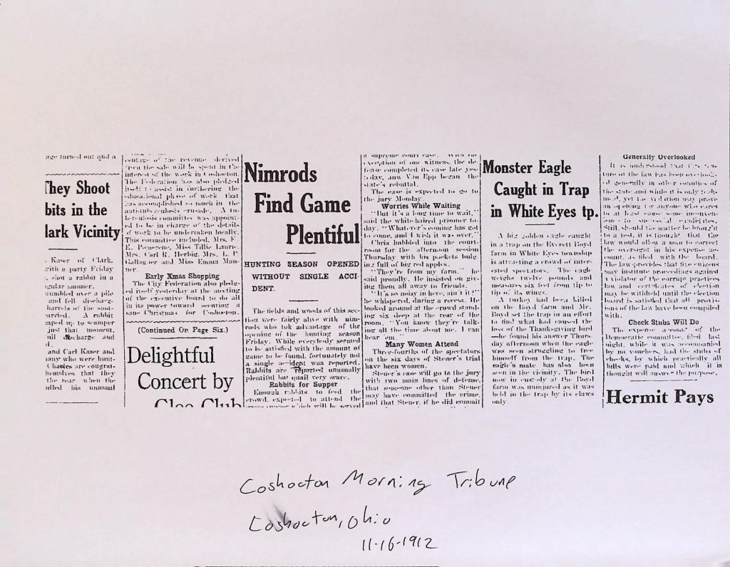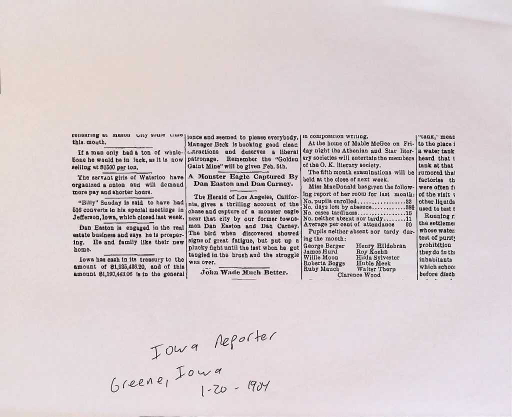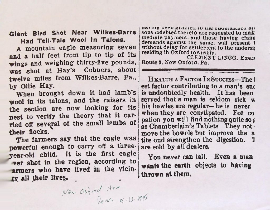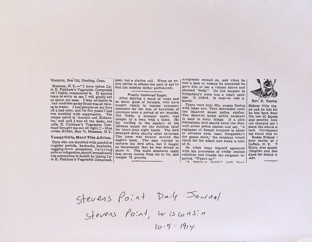 Clairvoyance - Cryptobotany - Cryptozoology - Ghost Stories - UFOs - Wildmen B7F35I1 Box 7 Folder 35. Monster Eagles Item 1. Newspaper Clippings
