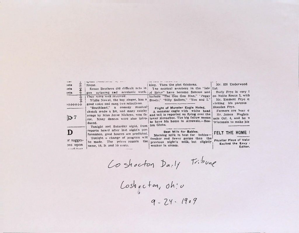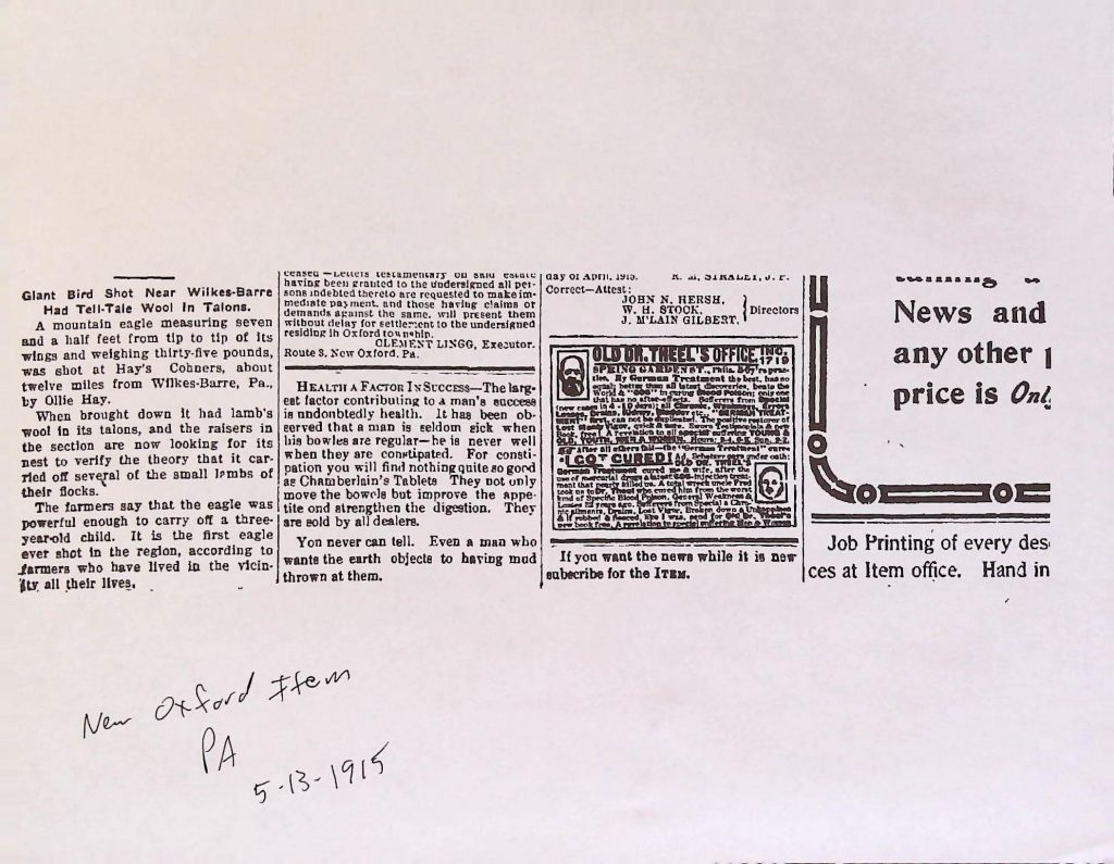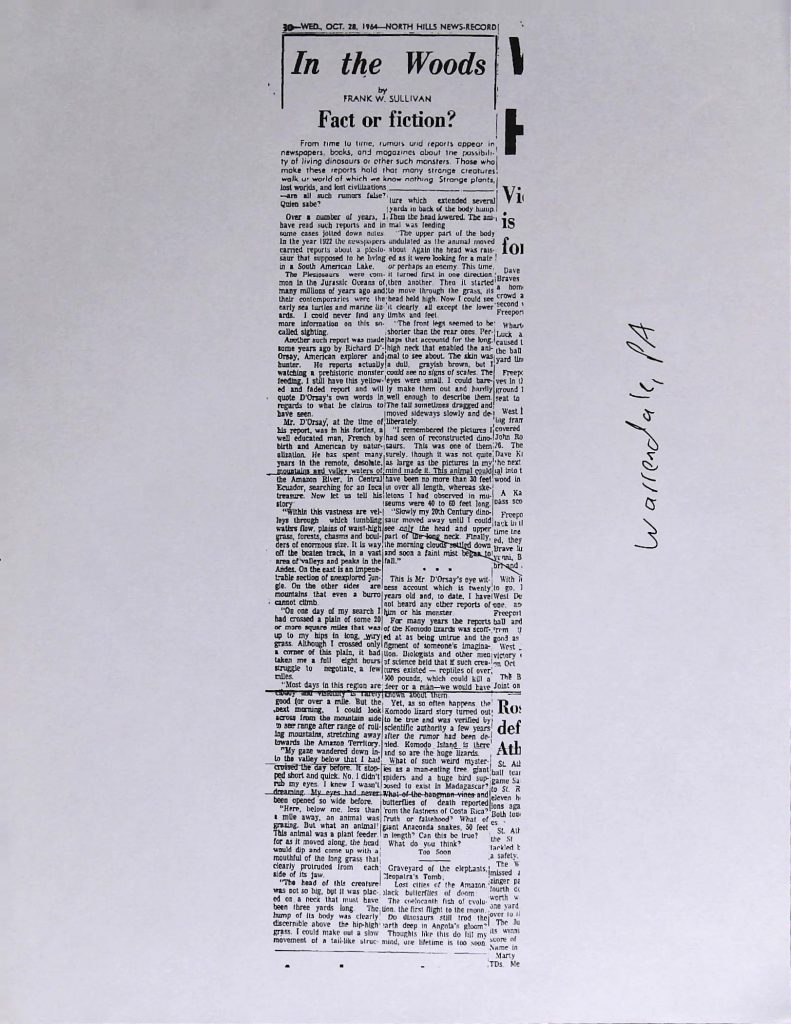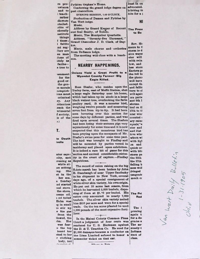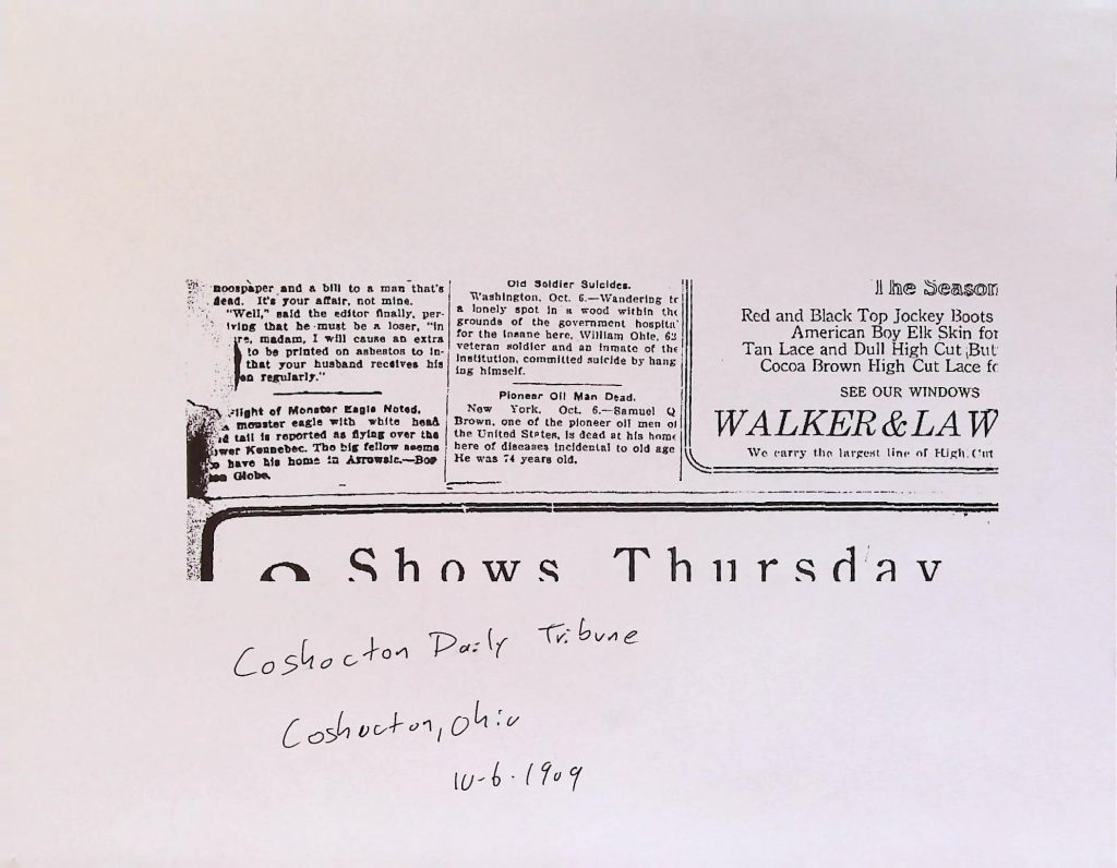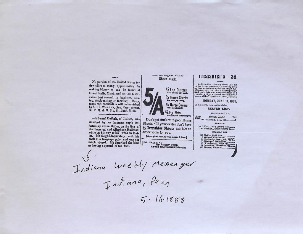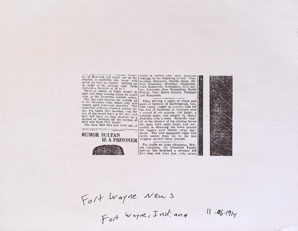 Clairvoyance - Cryptobotany - Cryptozoology - Ghost Stories - UFOs - Wildmen B7F35I1 Box 7 Folder 35. Monster Eagles Item 1. Newspaper Clippings