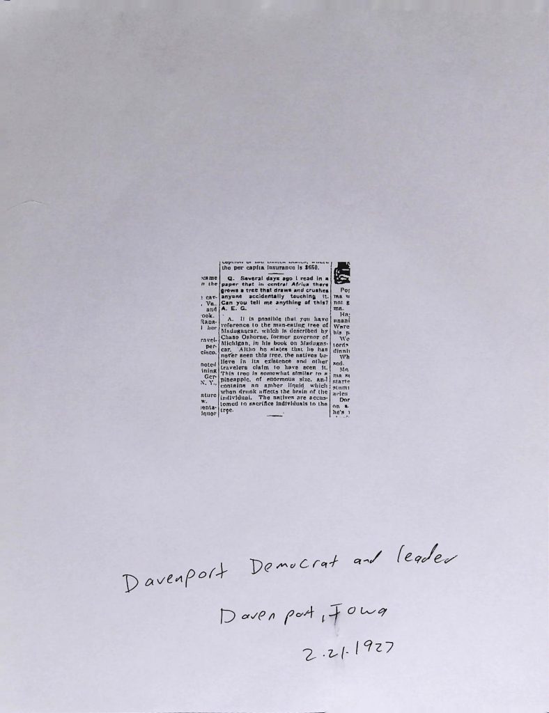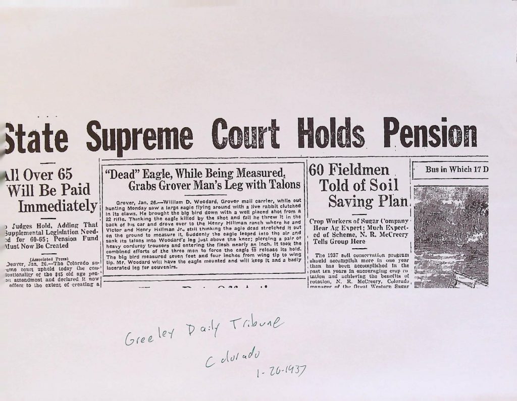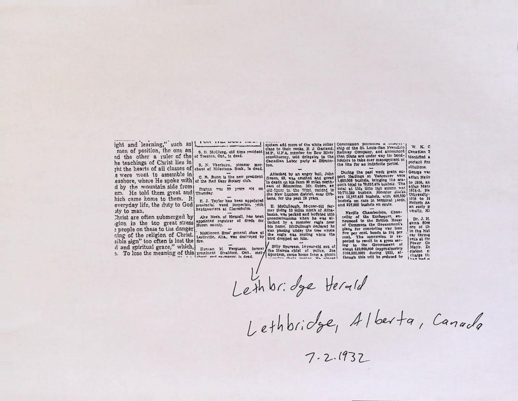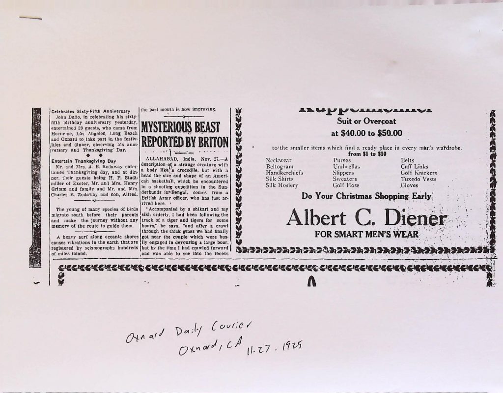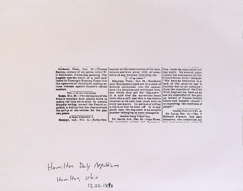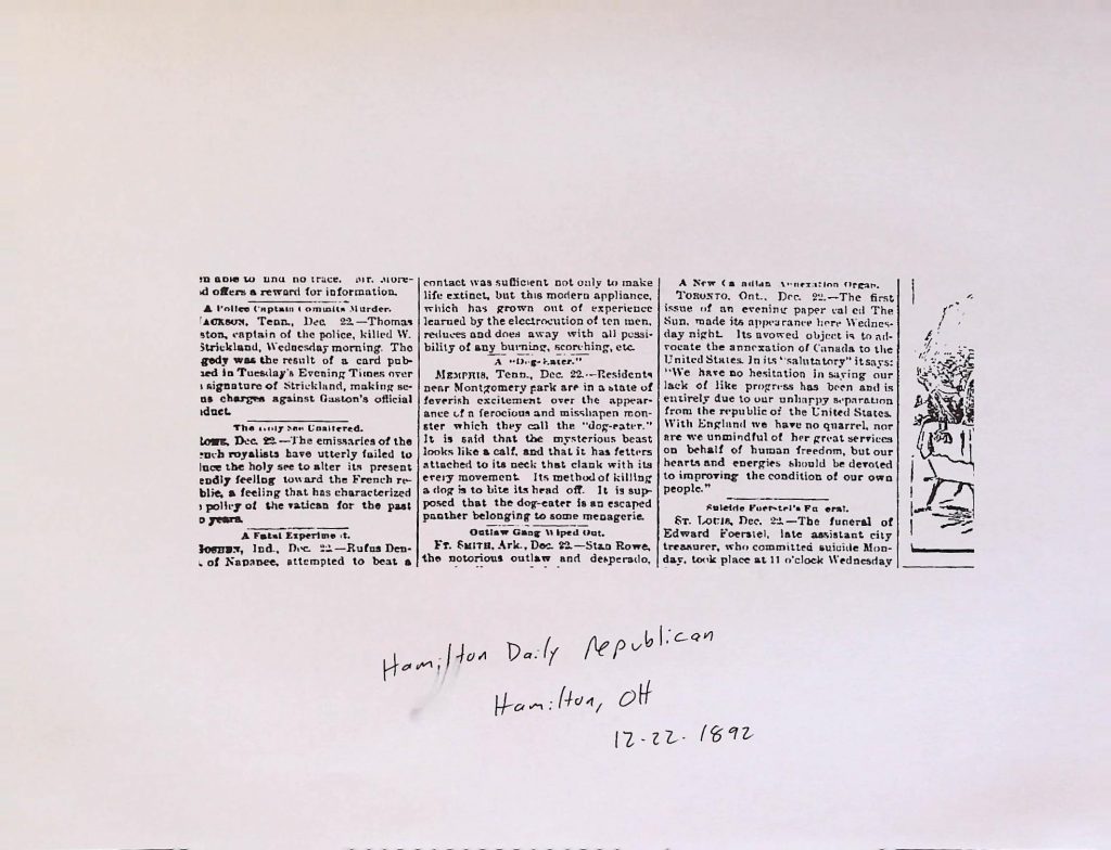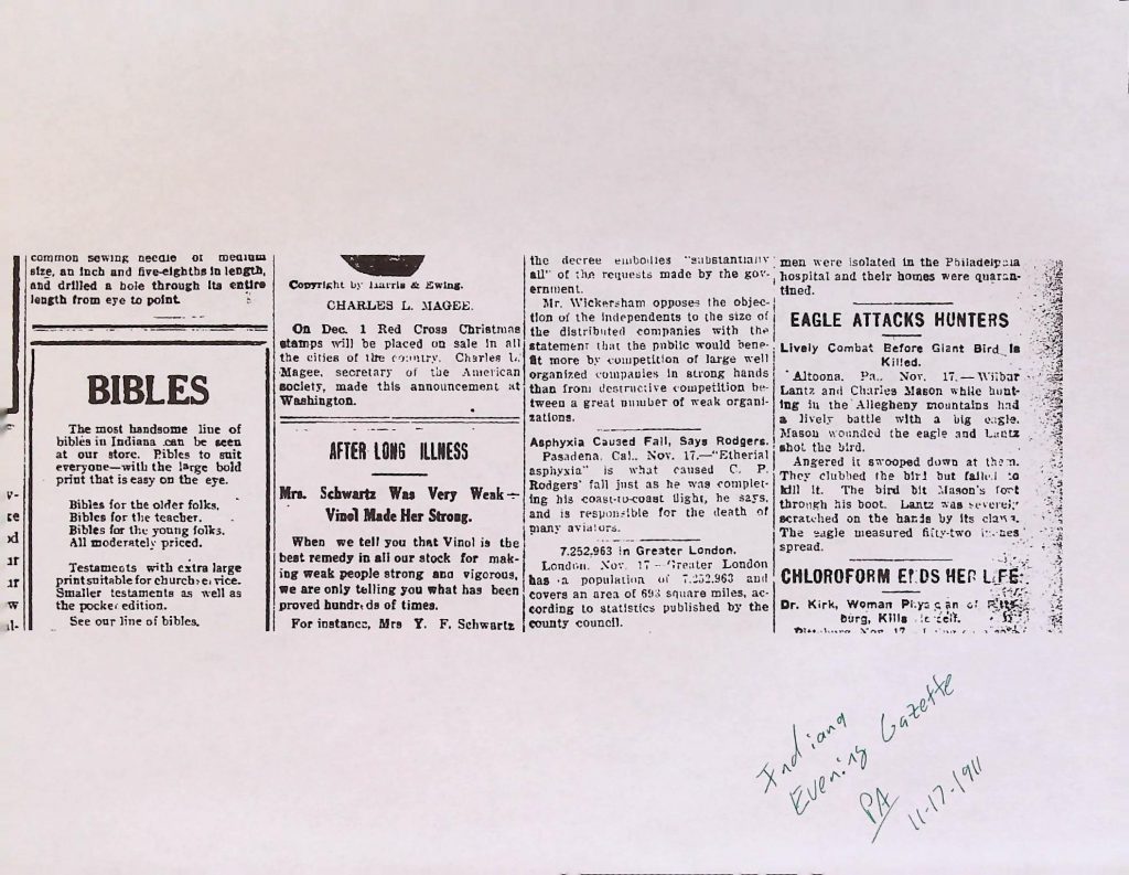 Clairvoyance - Cryptobotany - Cryptozoology - Ghost Stories - UFOs - Wildmen B7F35I1 Box 7 Folder 35. Monster Eagles Item 1. Newspaper Clippings