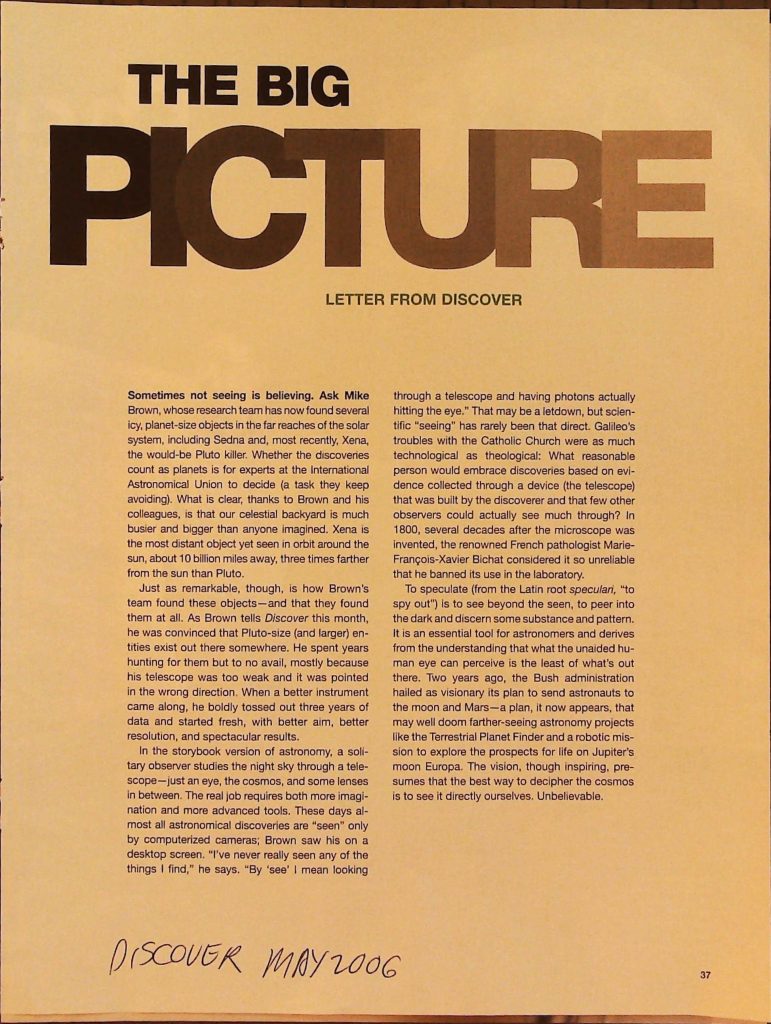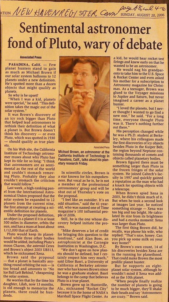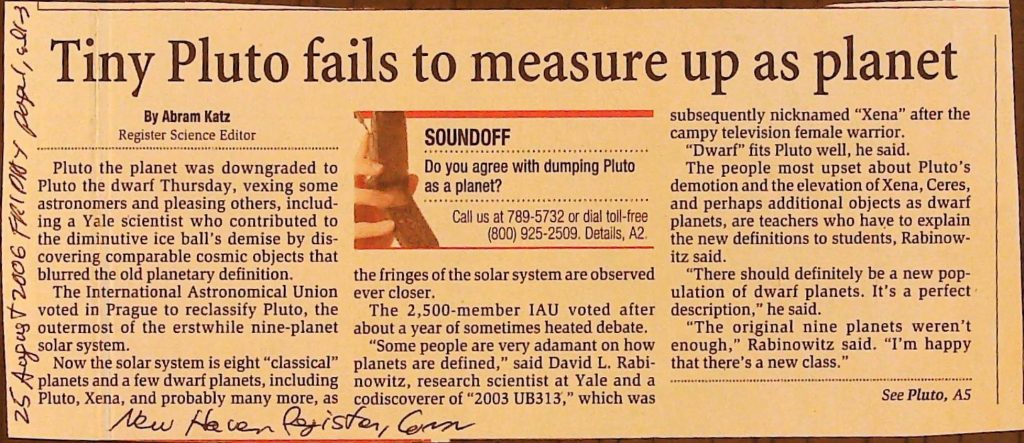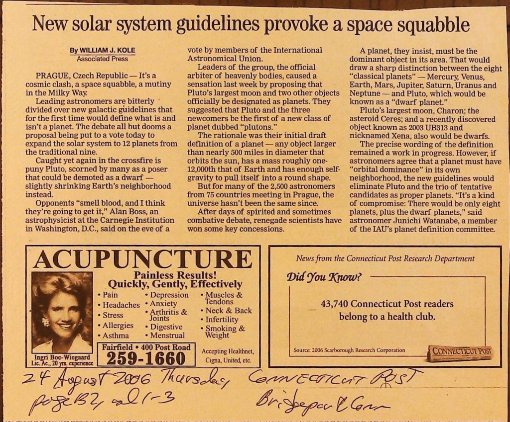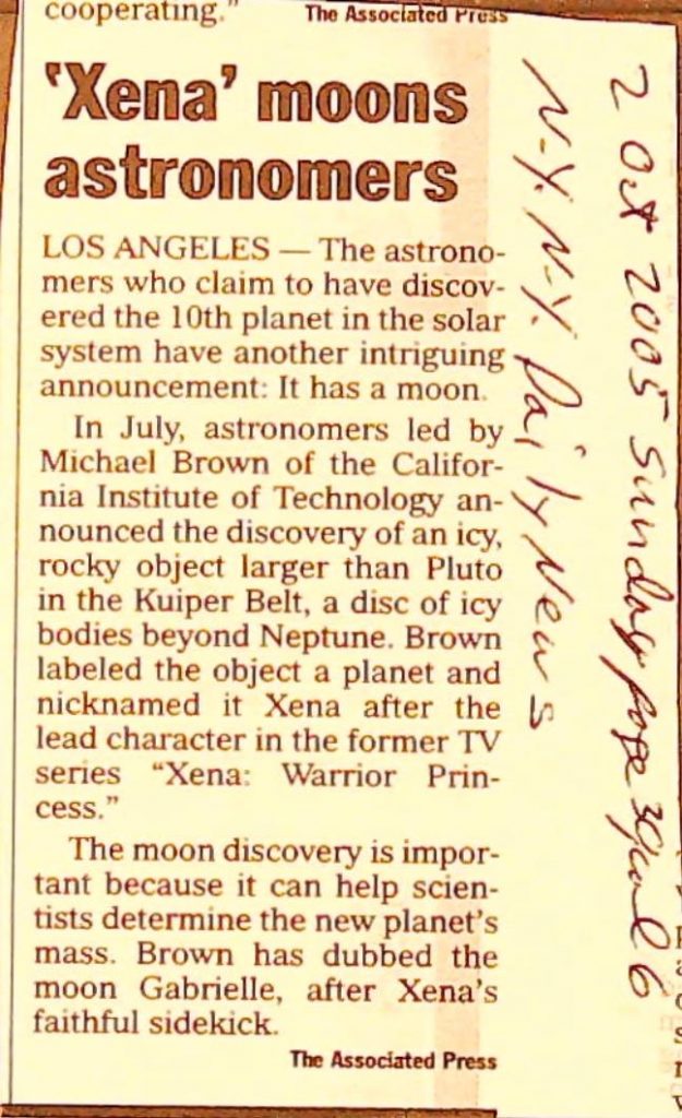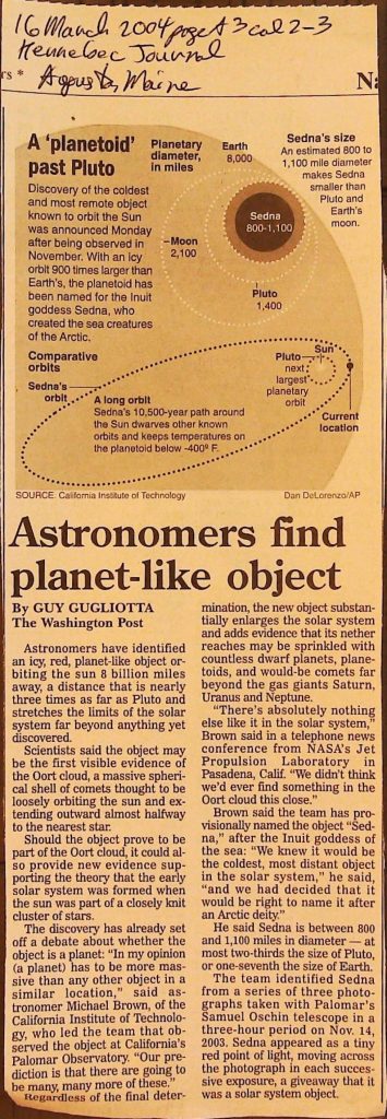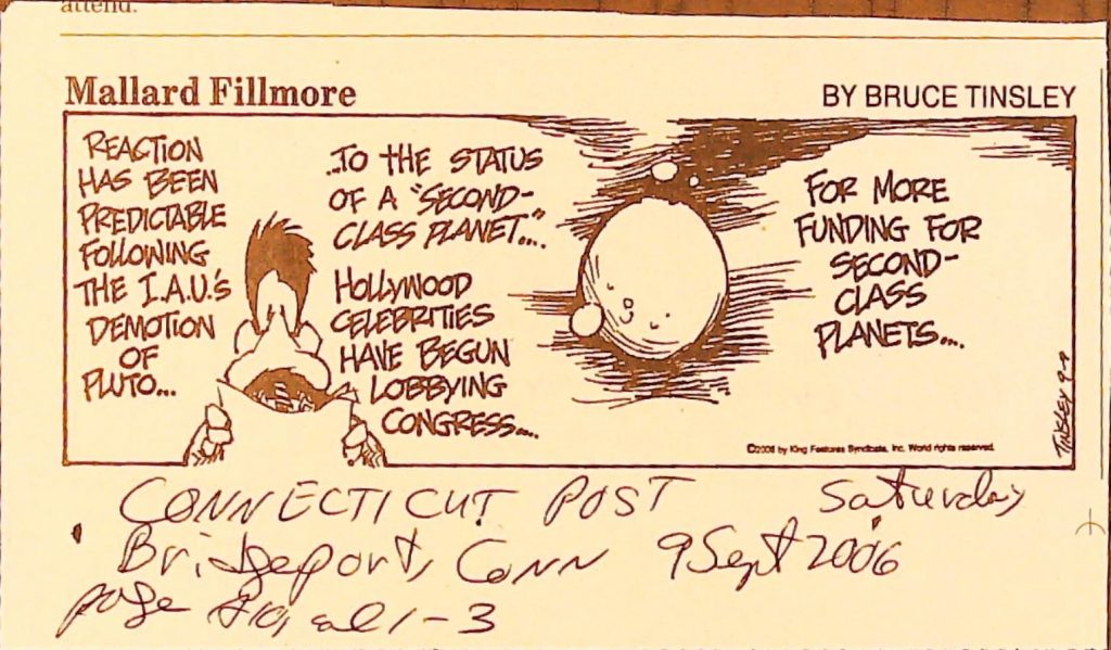 Natural Mysteries B9F25I1 Box 9 Folder 25. Planet X – 10th Planet Intermercury Planet Item 1. Newspaper Articles