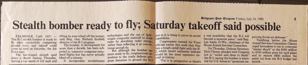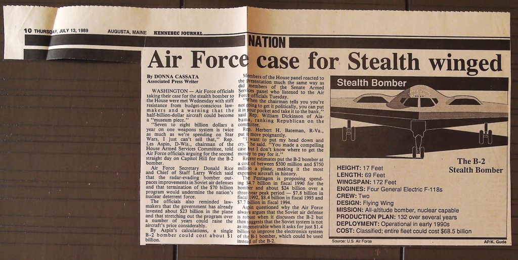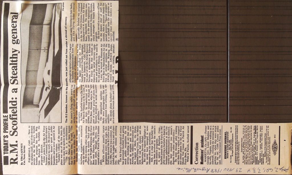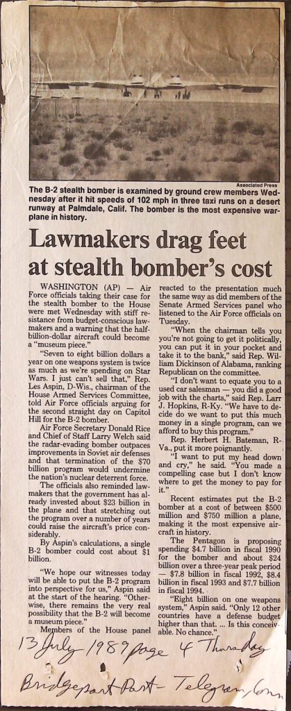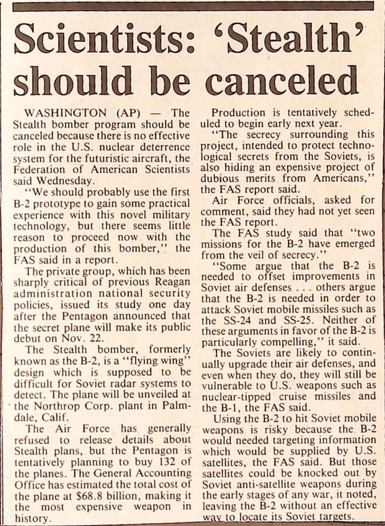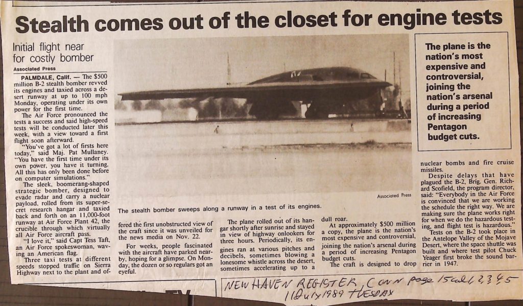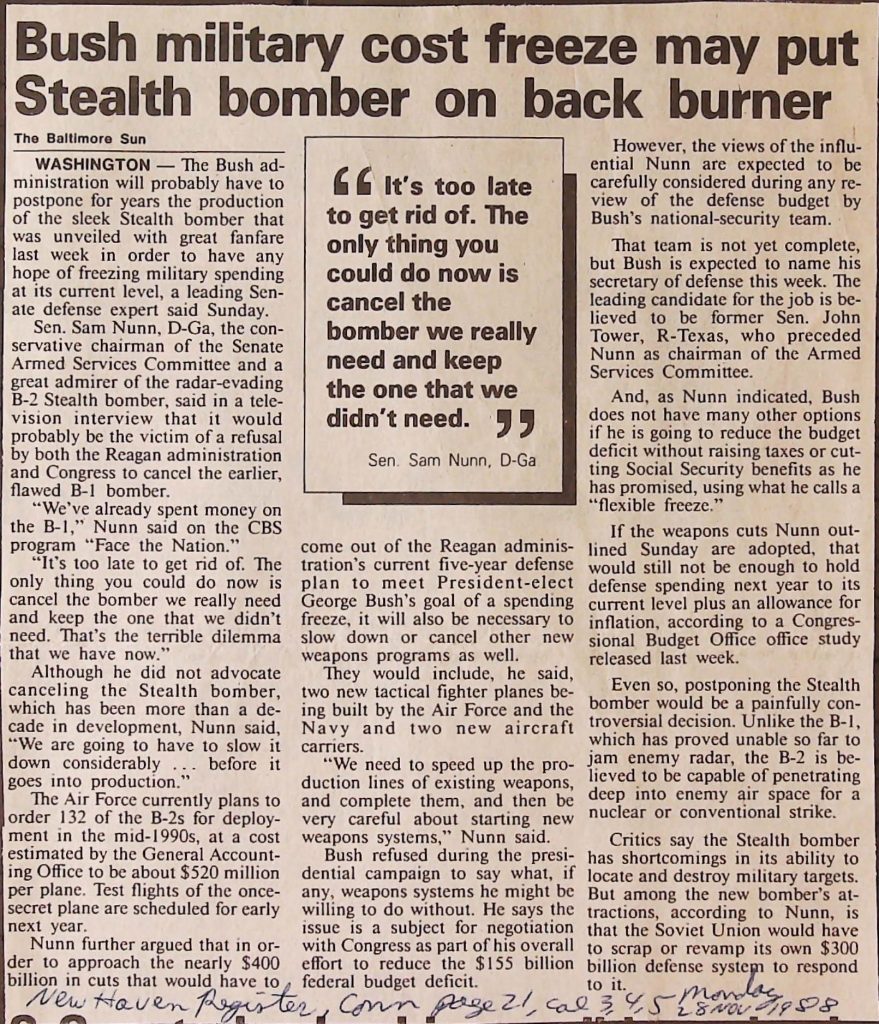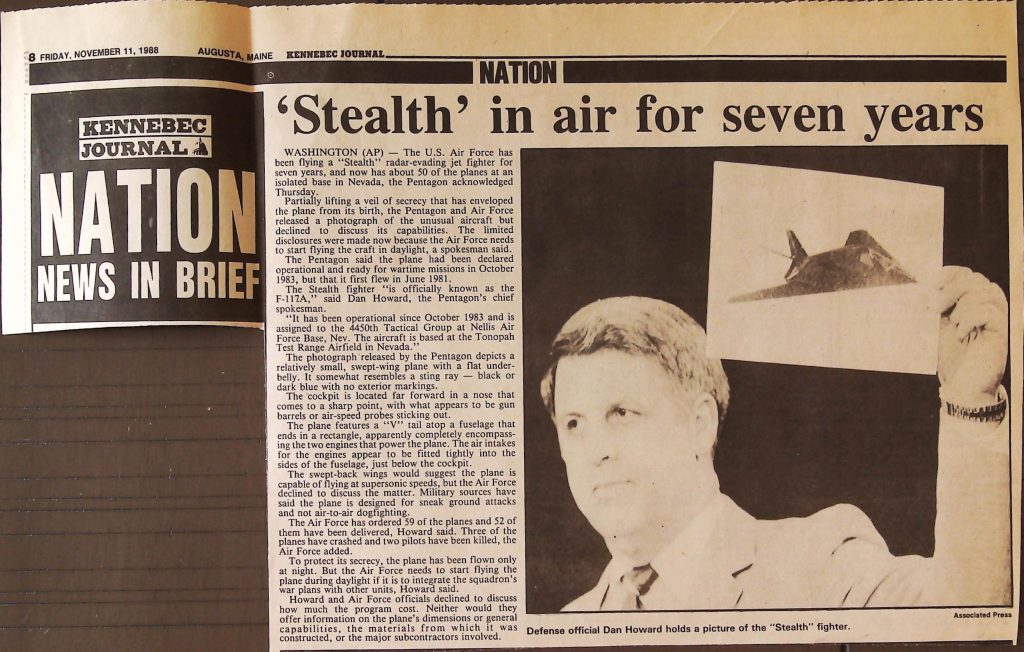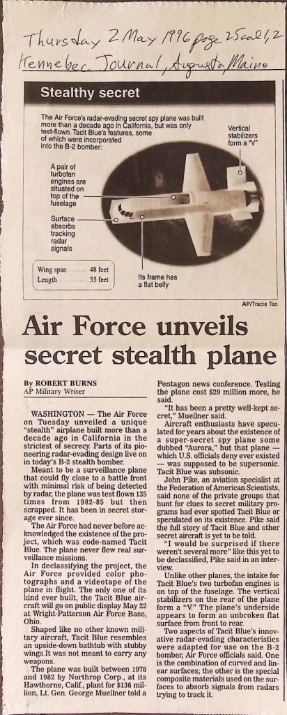 Uncategorized B9F34I1 Box 9 Folder 34. Stealth Bomber Secret Experimental Aircraft Item 1. Newspaper Articles