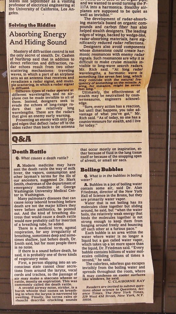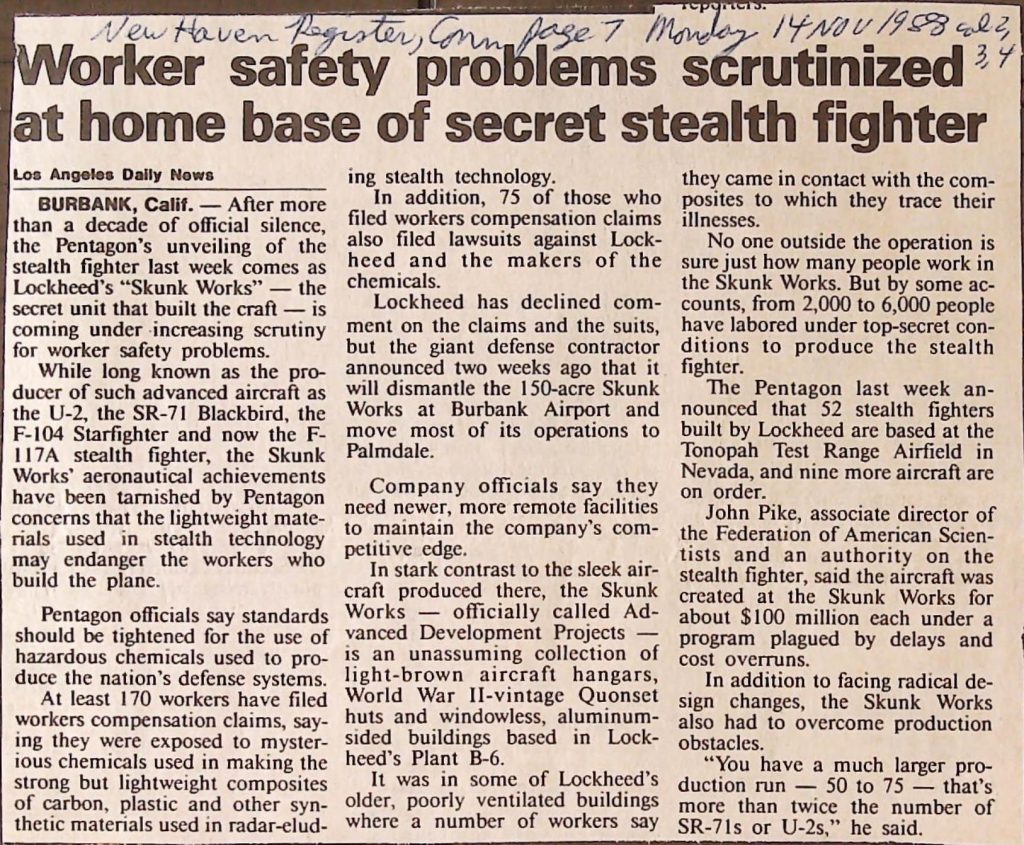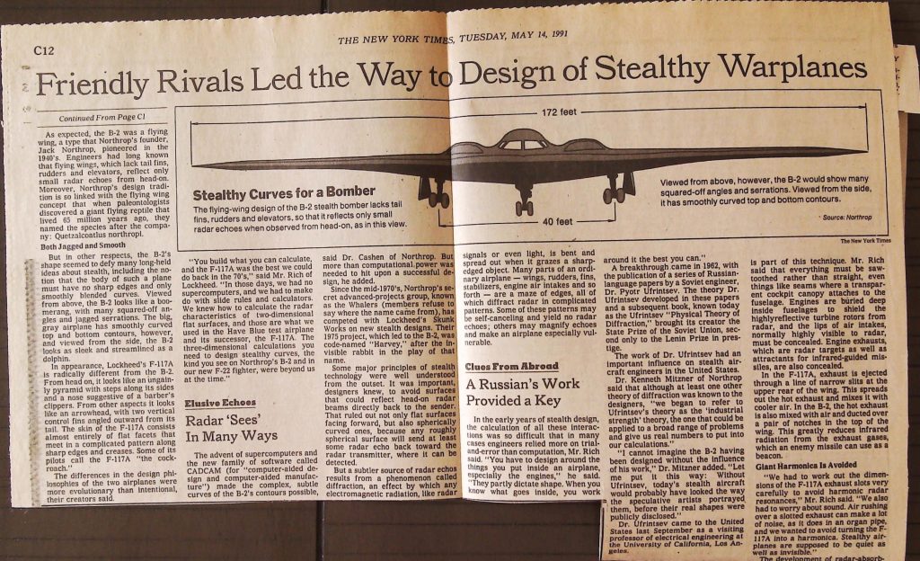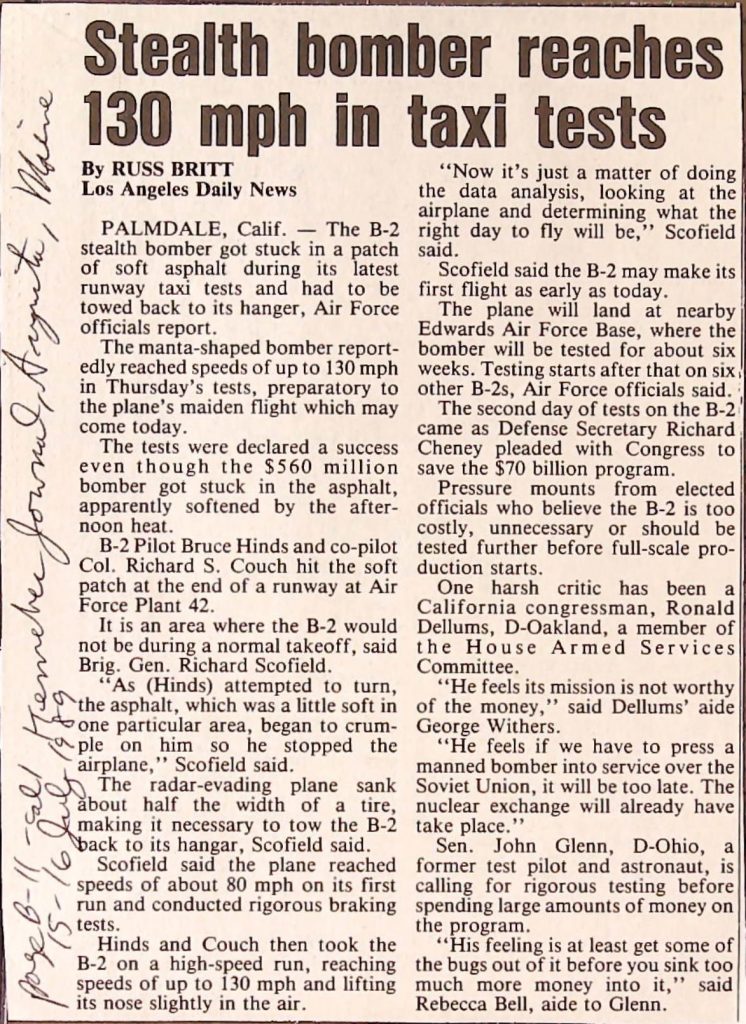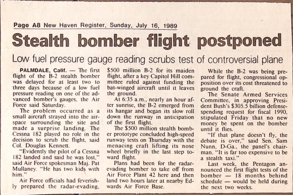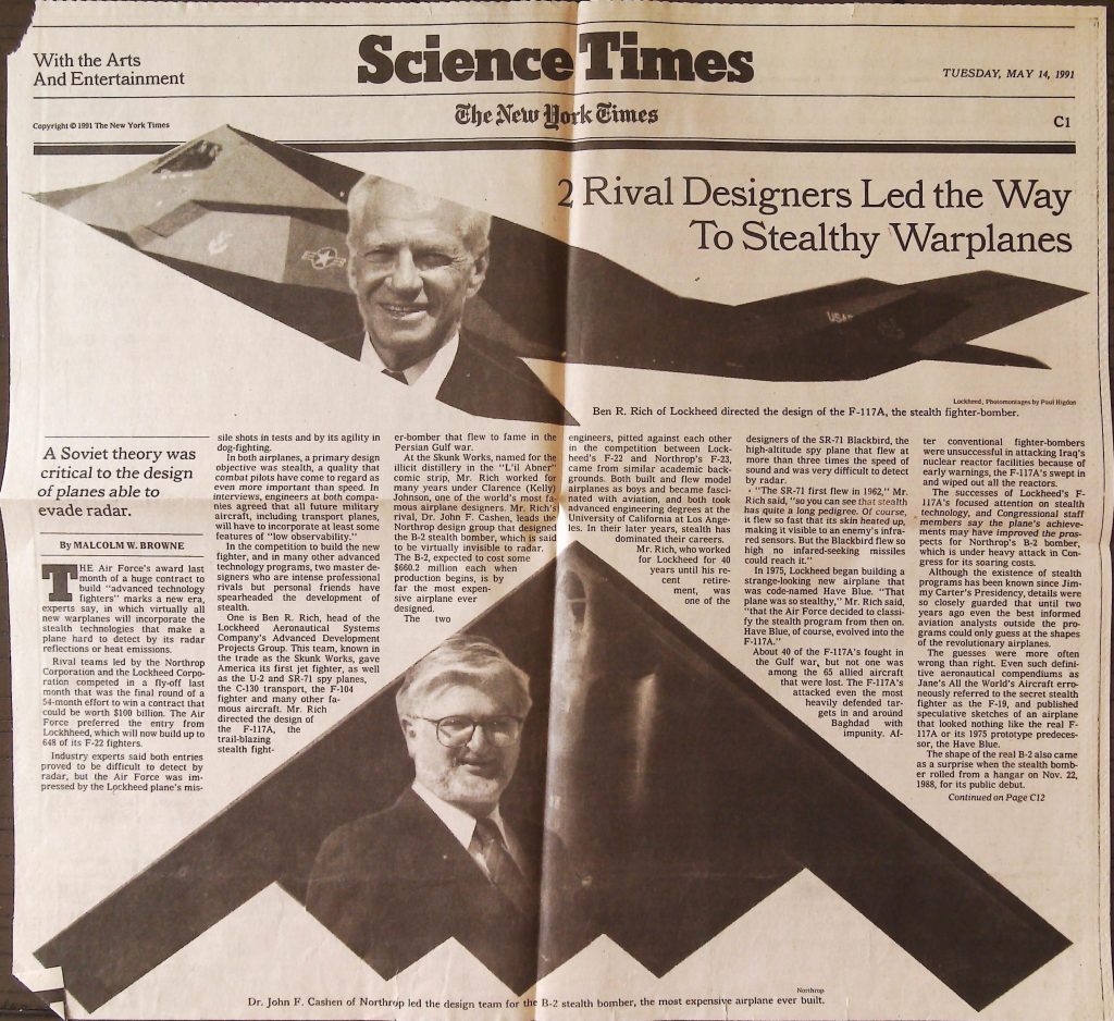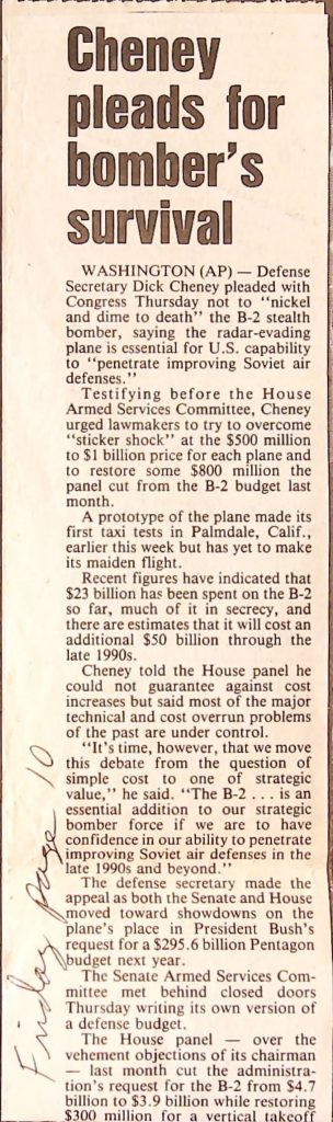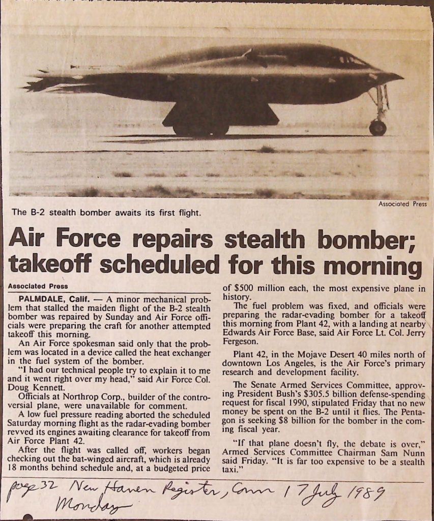 Uncategorized B9F34I1 Box 9 Folder 34. Stealth Bomber Secret Experimental Aircraft Item 1. Newspaper Articles